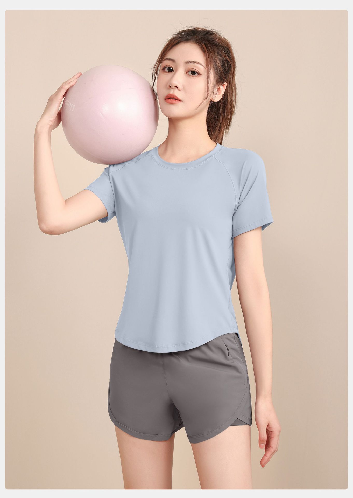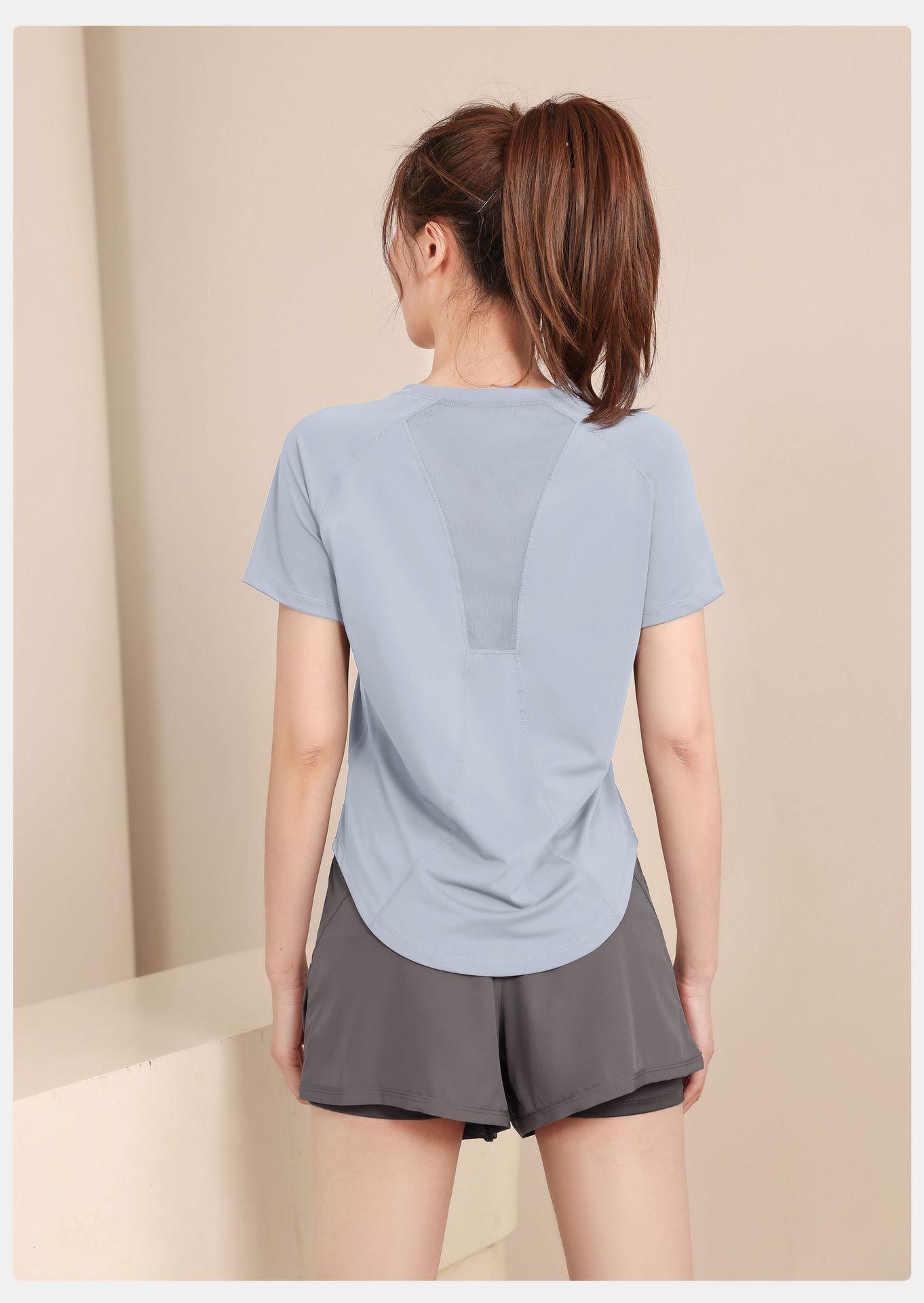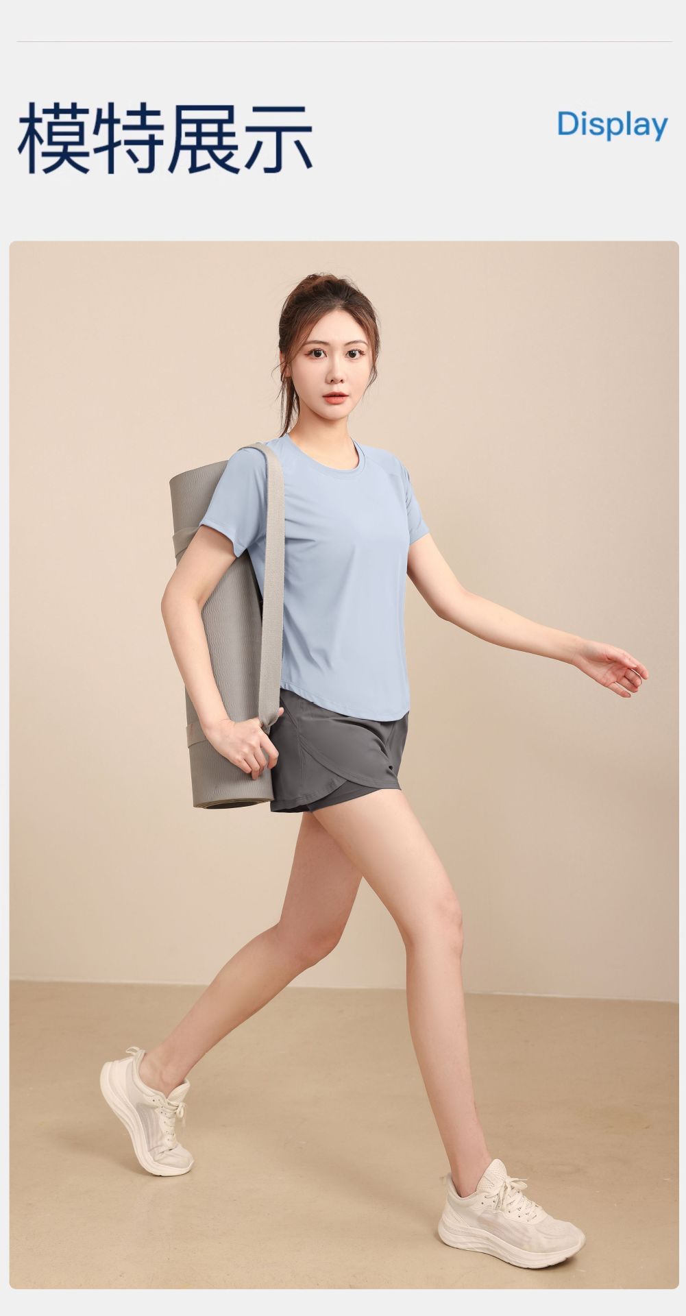 Traje Deportivo de Verano Delgado para Exteriores para Mujer Fitness Holgado Adelgazante Ropa de Yoga Manga Corta Elástico Secado Rápido Traje para Correr