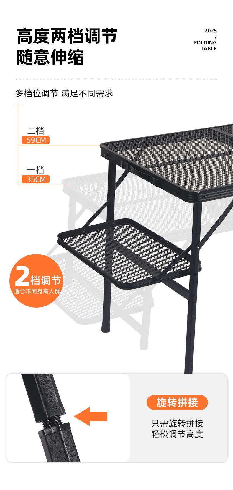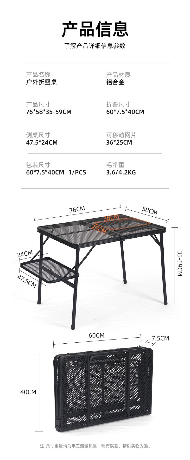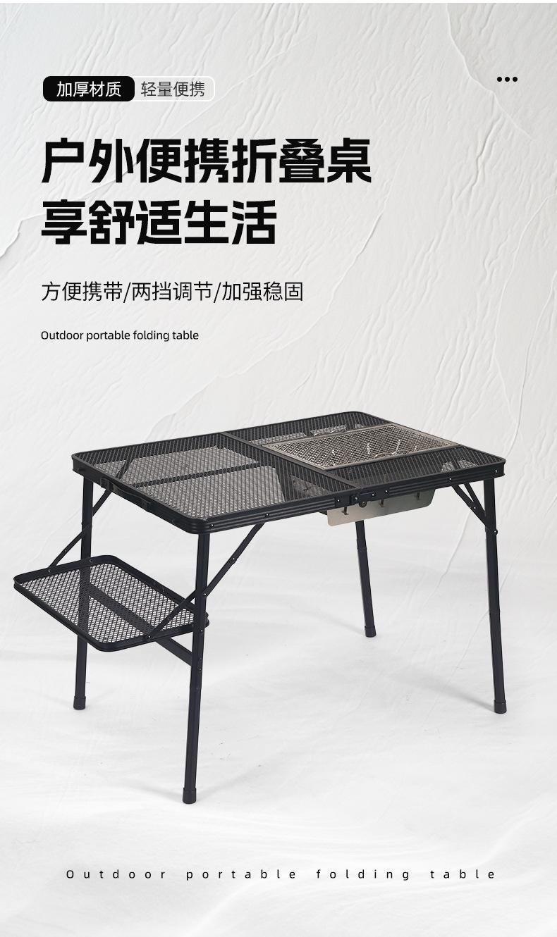 Mesa de Malla Portátil para Exterior Mesa Plegable de Malla de Hierro Hogar Puesto Camping Elevable Aleación de Aluminio Mesa Plegable Venta al por Mayor