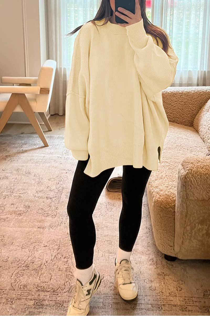 Suéter de cuello redondo de manga larga con ala de murciélago para mujer europeo y americano de AliExpress transfronterizo, Amazon Otoño, tejido de punto con abertura lateral