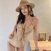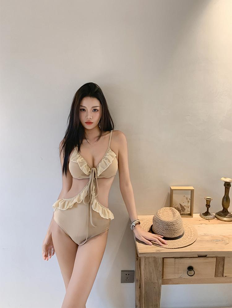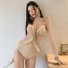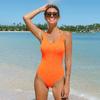 2025 Nuevo Traje de Baño Entero Europeo y Americano Femenino Sexy Tirantes Recorte Color Puro Bikini Traje de Baño Amazon Bikini