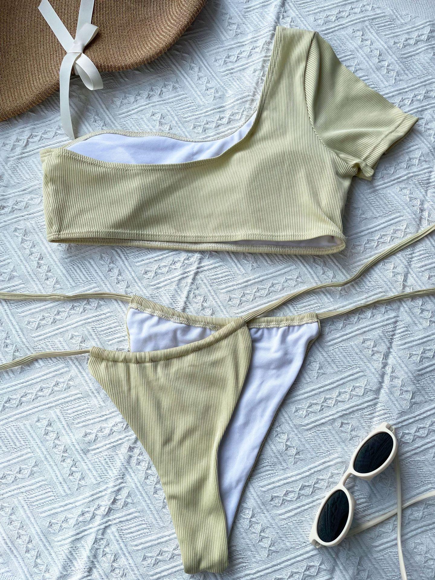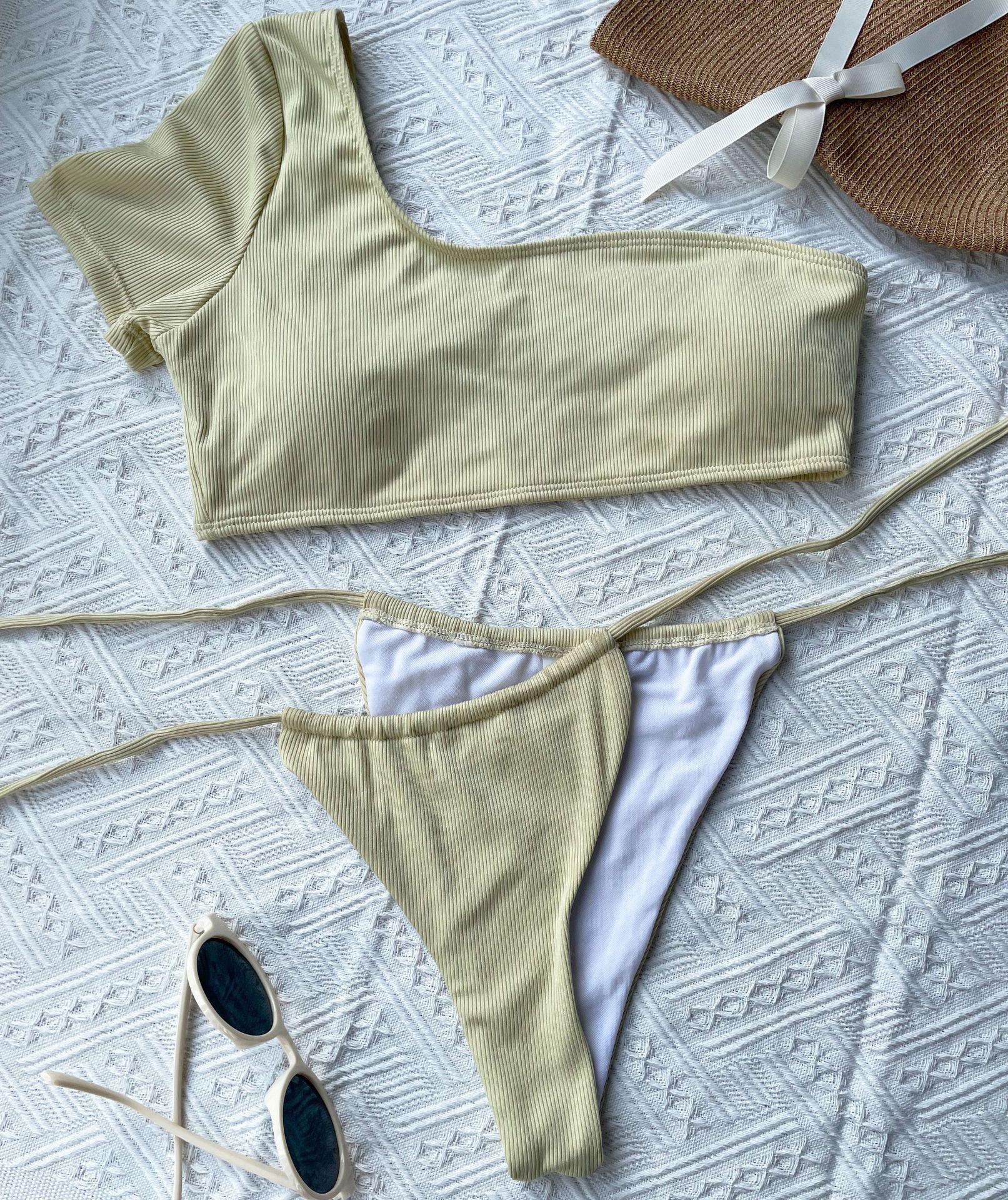Traje de baño dividido nuevo 2023 para mujer, europeo y americano, de hombro ajustado, duradero, estilo ins, traje de baño sexy, punto