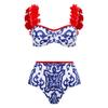 | Traje de baño de dos piezas con estampado retro europeo y americano, estilo francés, para mujer, estilo bikini de vacaciones transfronterizo, novedad de 2025 |