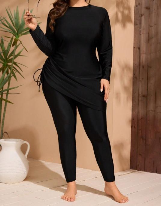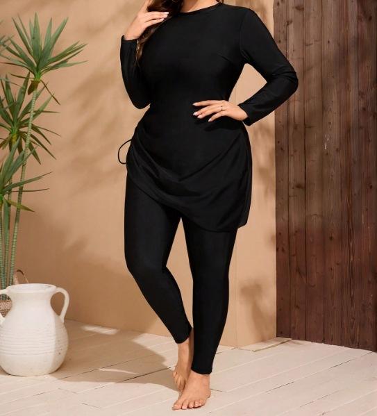 Traje de Baño 2025 Nuevo Talla Grande Europeo y Americano Color Sólido Conservador Manga Larga Pantalón Protección Solar Secado Rápido Traje de Natación Surf Buceo
