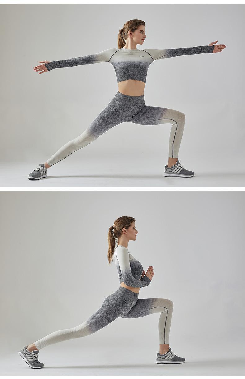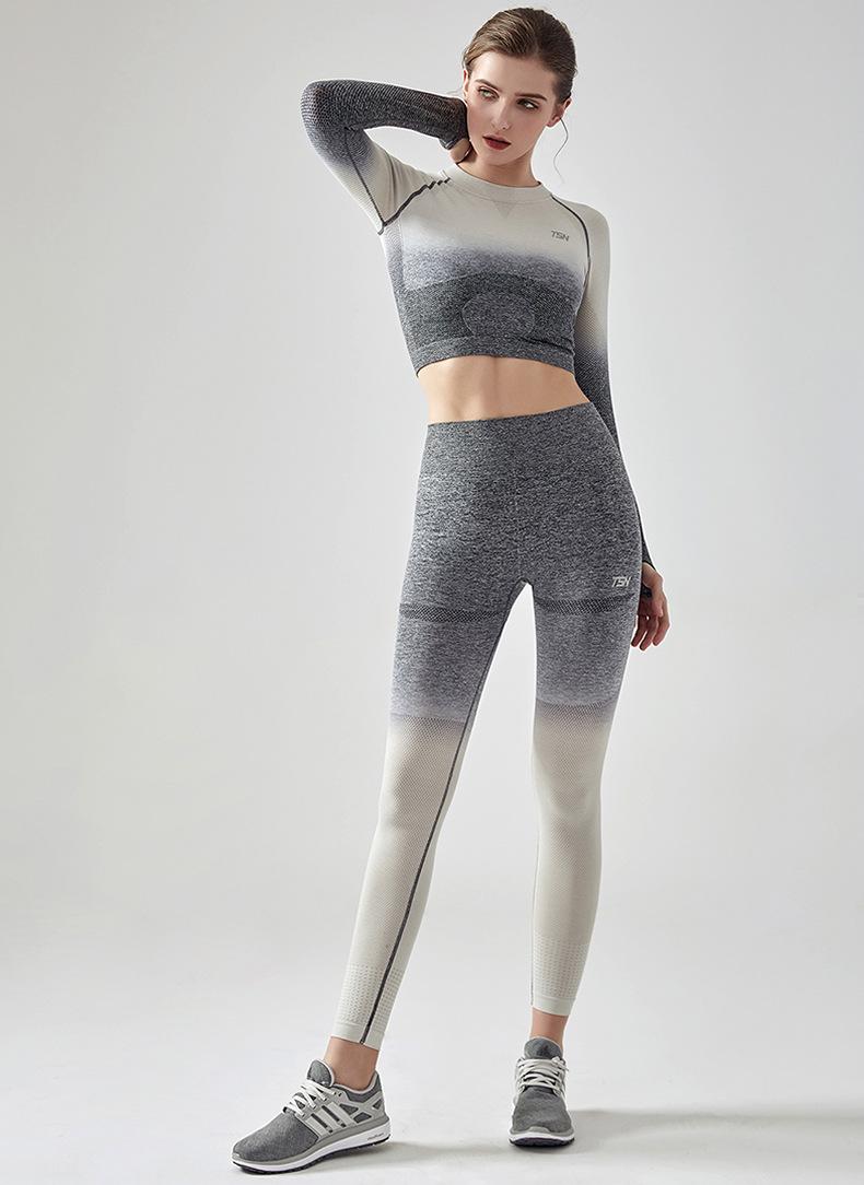 Traje Deportivo Degradado de Otoño Ropa Exterior para Correr para Mujer de Secado Rápido Ropa de Fitness para Mujer Ajustada Elástica Ropa de Yoga a Cuadros