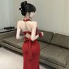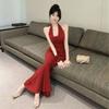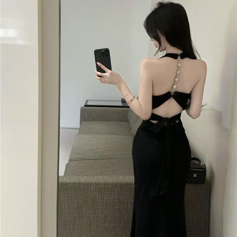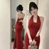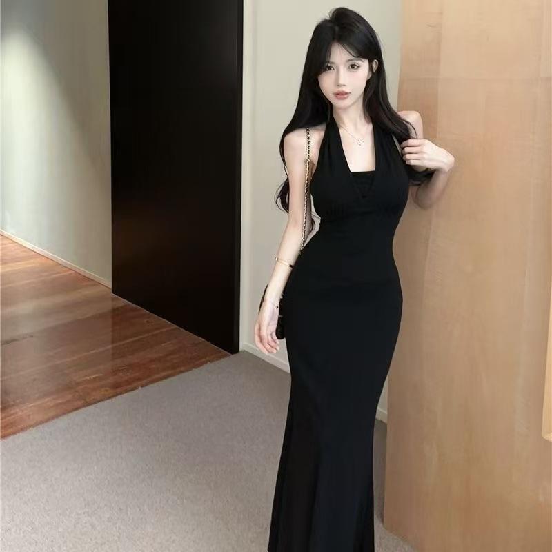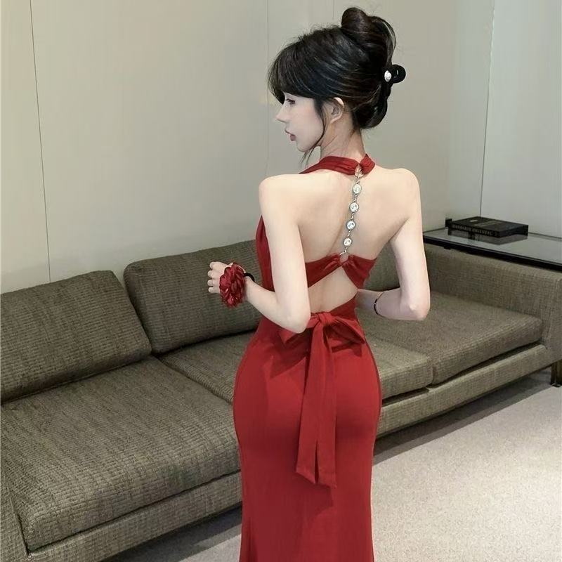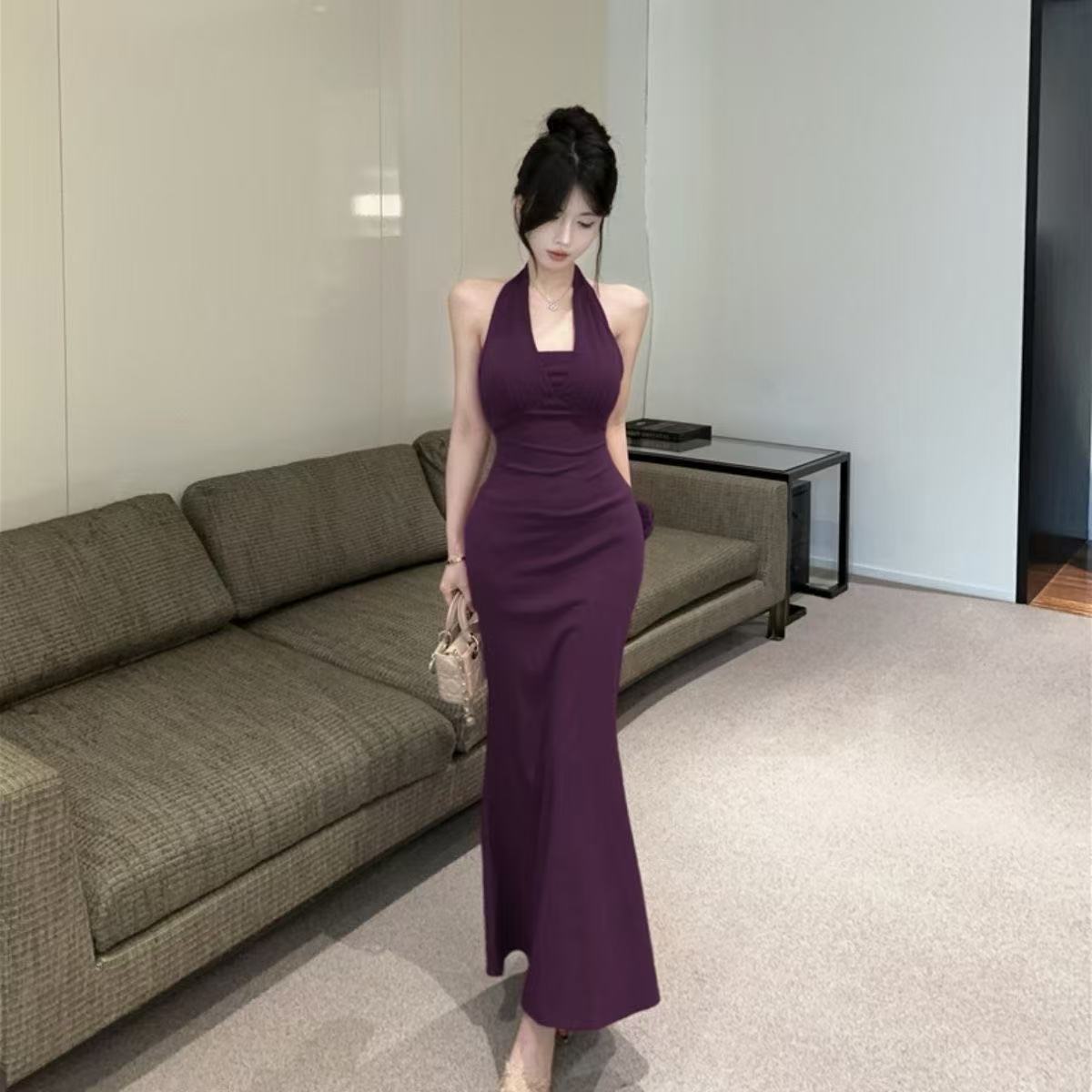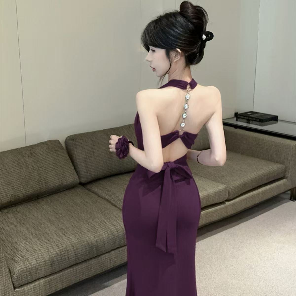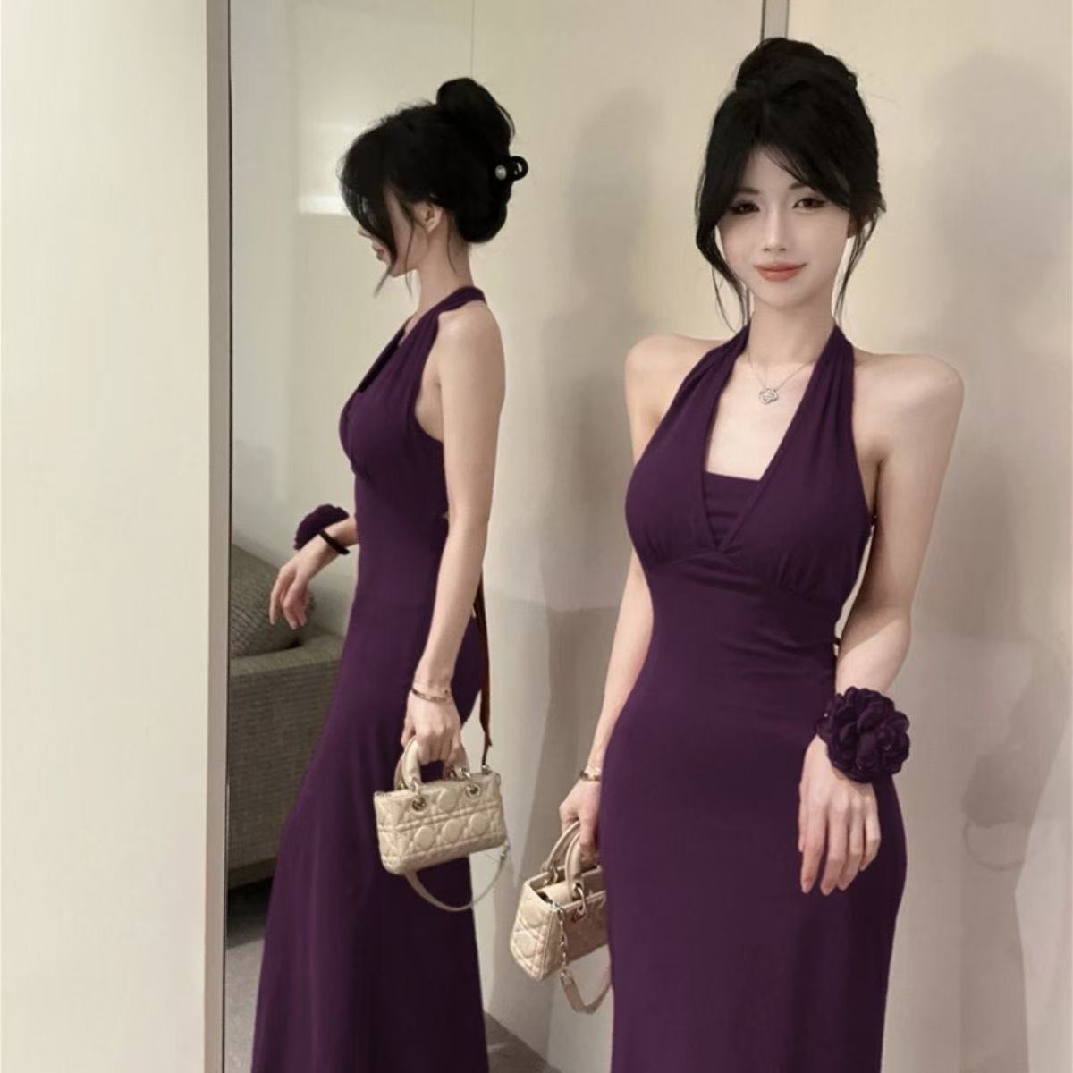 Deseo Puro Sexy Vestido Morado con Tirantes Halter para Mujer Vestido sin Espalda Ajustado a la Cadera Vestido Largo Ropa Formal