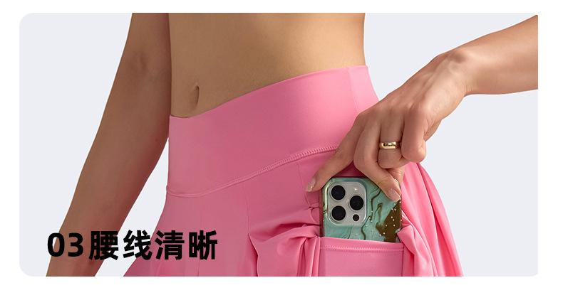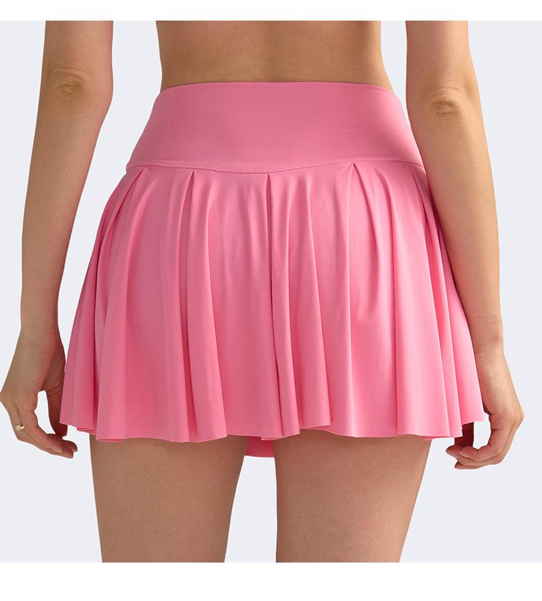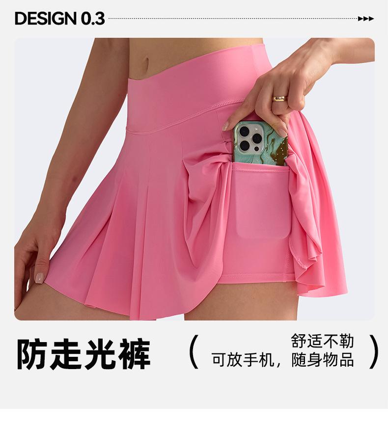 Falda de Tenis Yoga Elástica de Cintura Alta Transfronteriza Baoshun con Bolsillos, Falda Deportiva Corta de Fitness de Dos Piezas Falsas, Falda Plisada