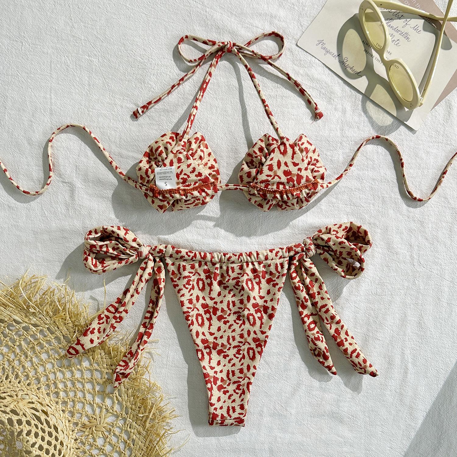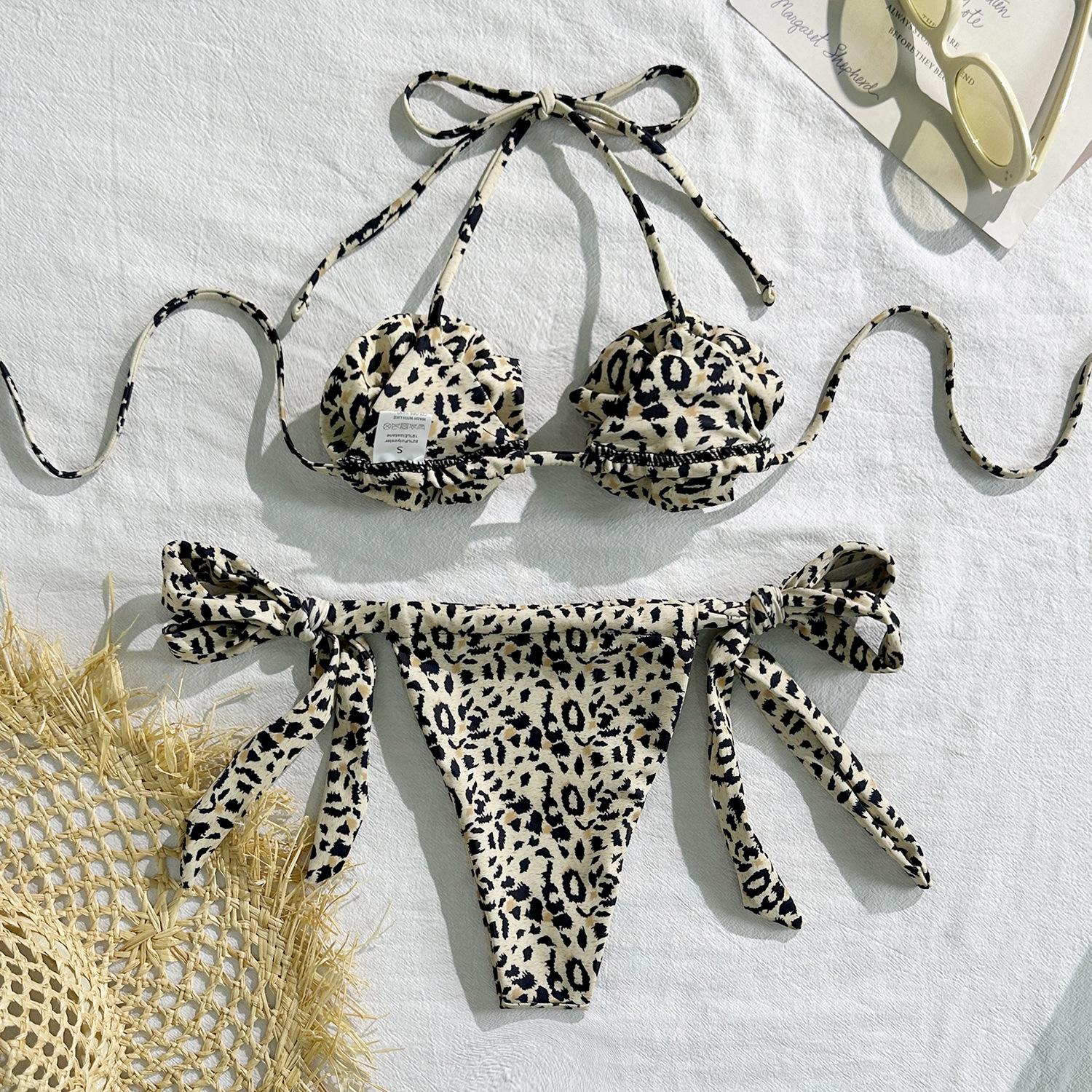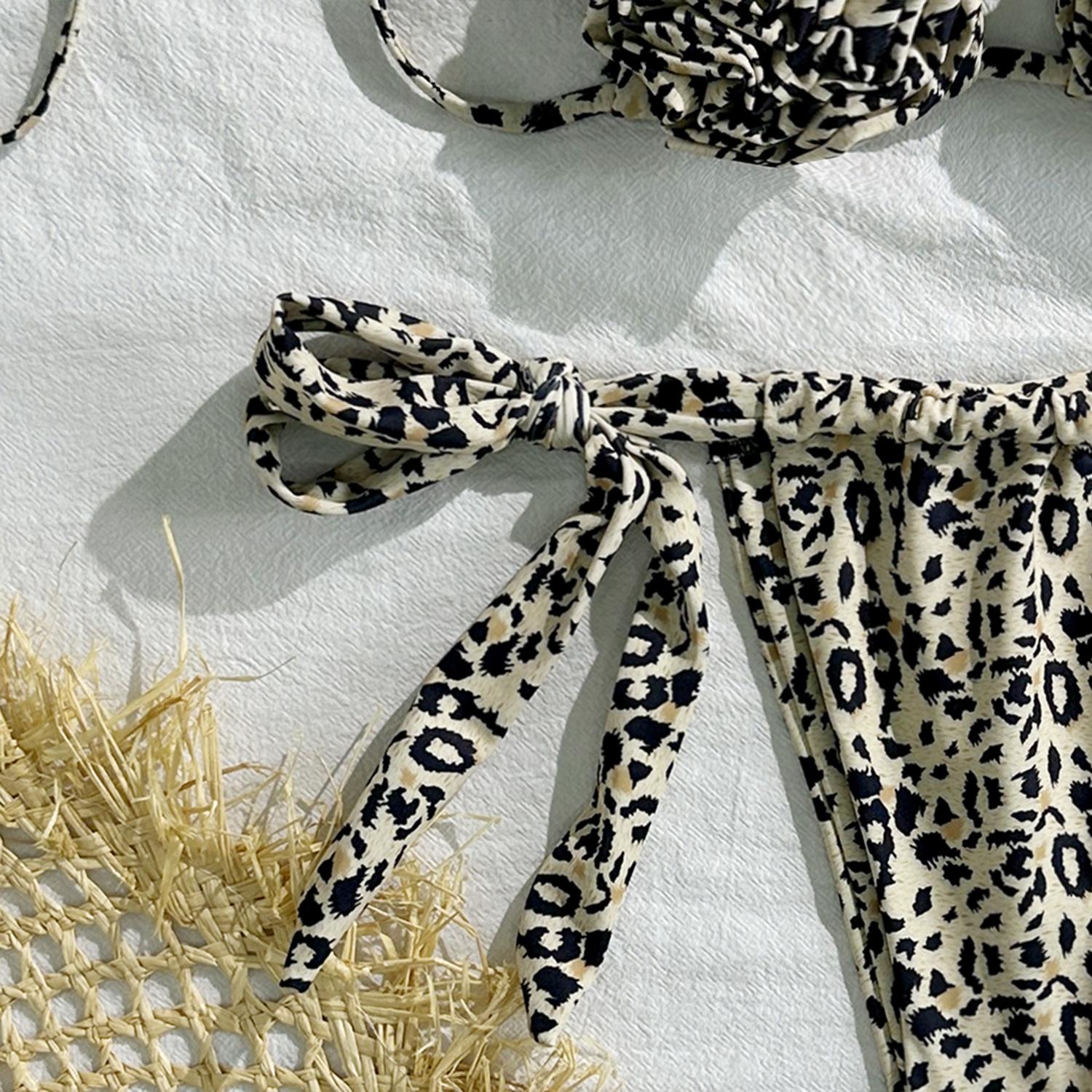 Traje de Baño Bikini Cruzado Sexy con Estampado de Leopardo y Flores Nuevo Europeo y Americano 2025