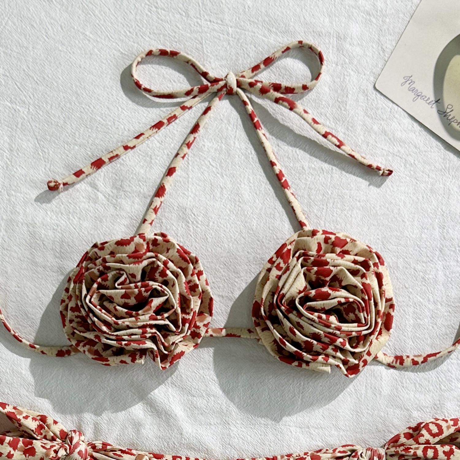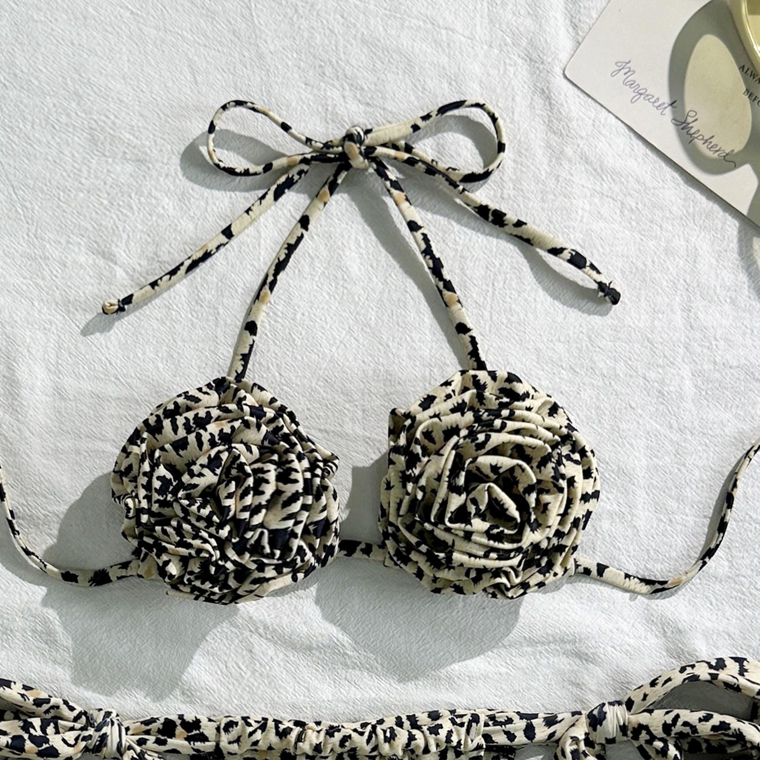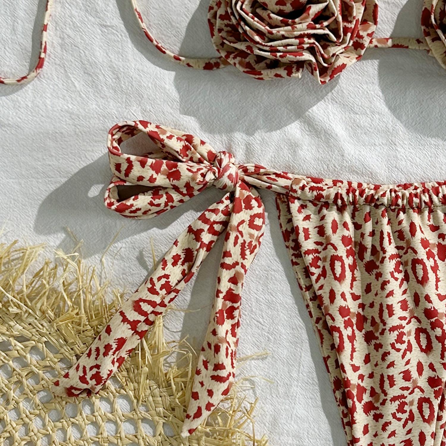 Traje de Baño Bikini Cruzado Sexy con Estampado de Leopardo y Flores Nuevo Europeo y Americano 2025