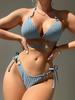 Traje de Baño Europeo y Americano Nuevo para Mujer Color Sólido Hoyo Sexy Bikini con Cordones de Alta Elasticidad Duradero Bikini Punto
