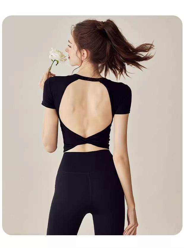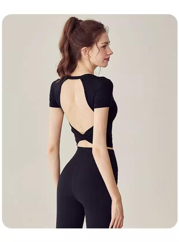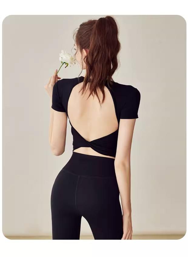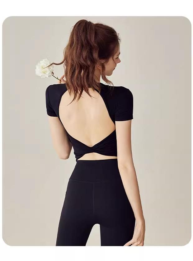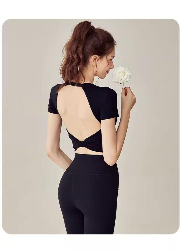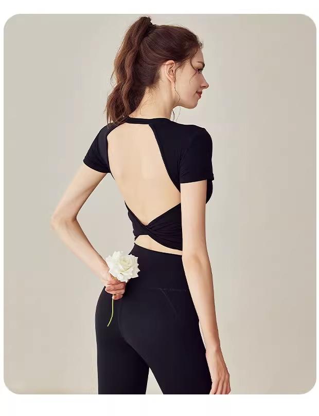 Traje de Yoga Pilates sin Espalda Transfronterizo Traje de Fitness de Manga Corta Camiseta Ropa Exterior Nuevo Deportivo de una Pieza para Mujer sin Espalda