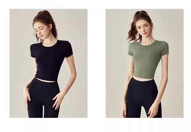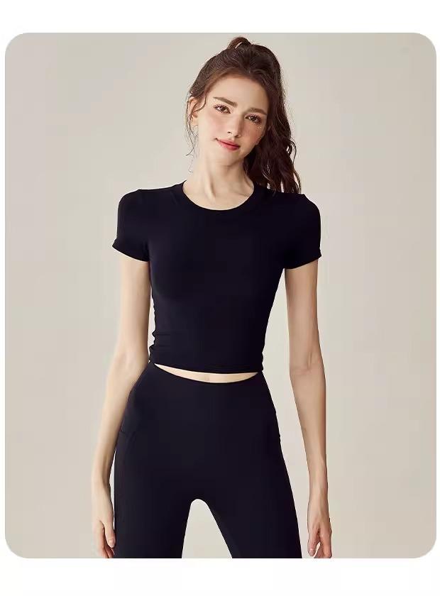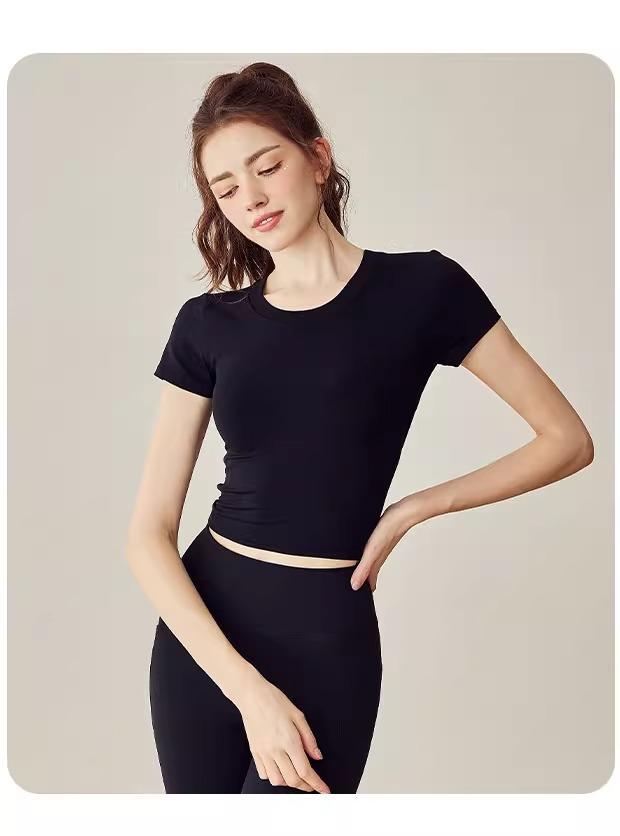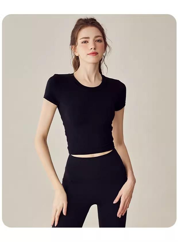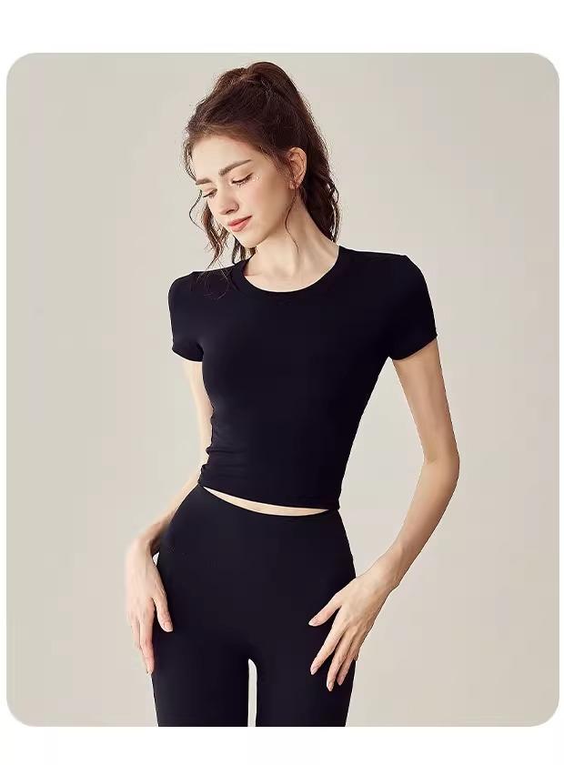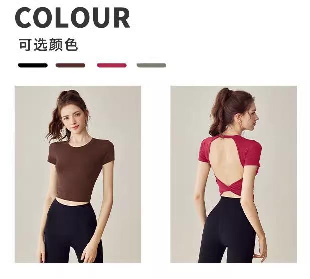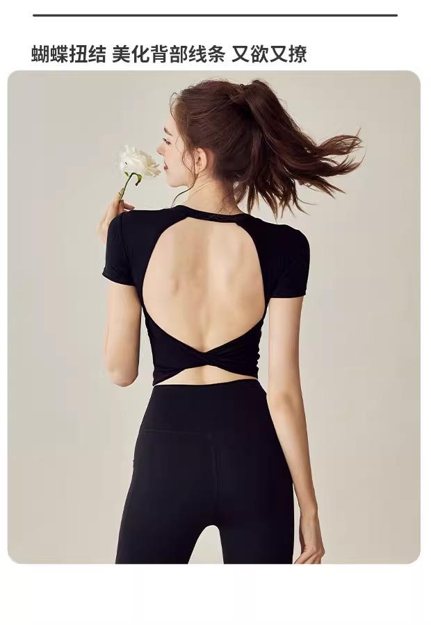 Traje de Yoga Pilates sin Espalda Transfronterizo Traje de Fitness de Manga Corta Camiseta Ropa Exterior Nuevo Deportivo de una Pieza para Mujer sin Espalda