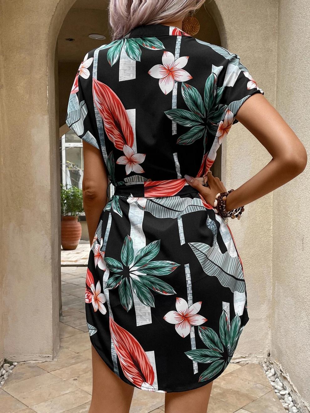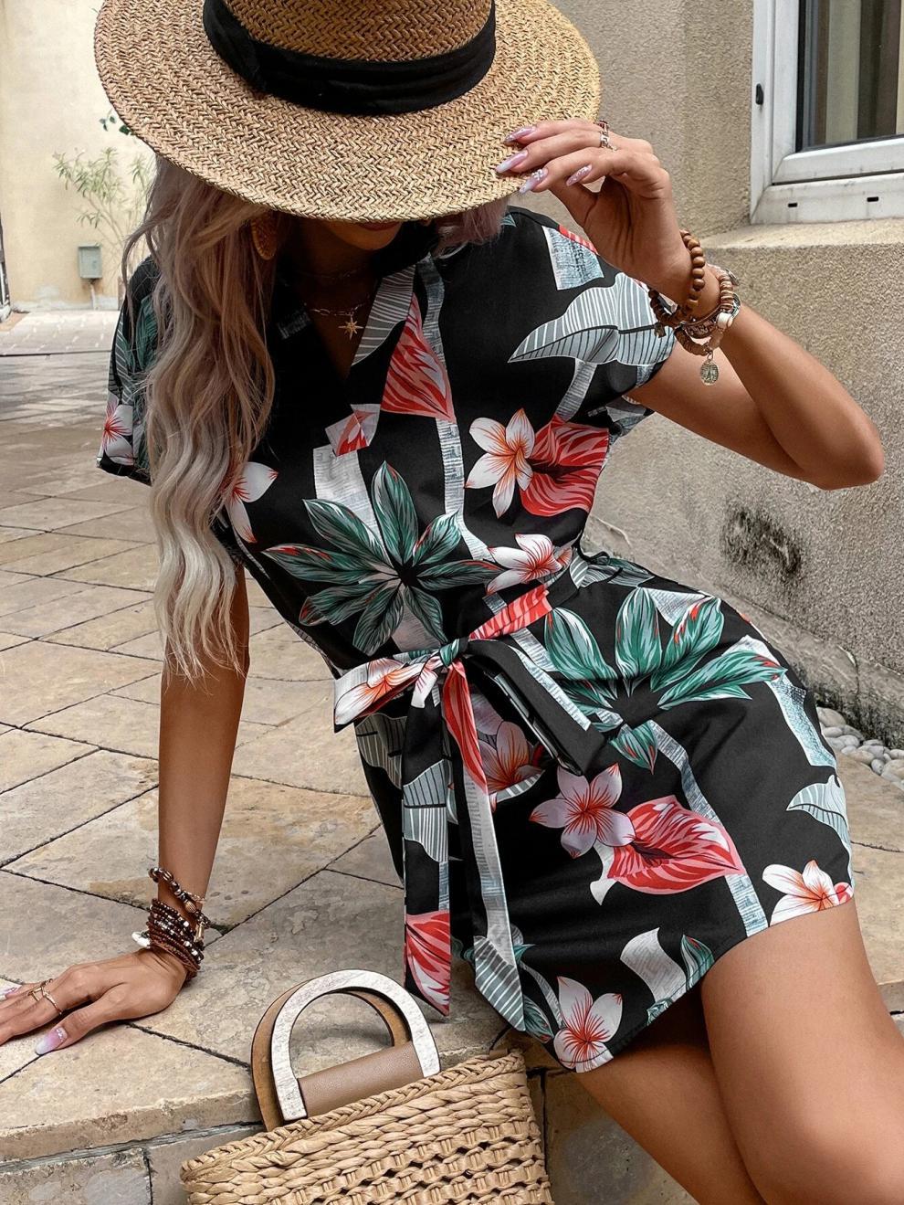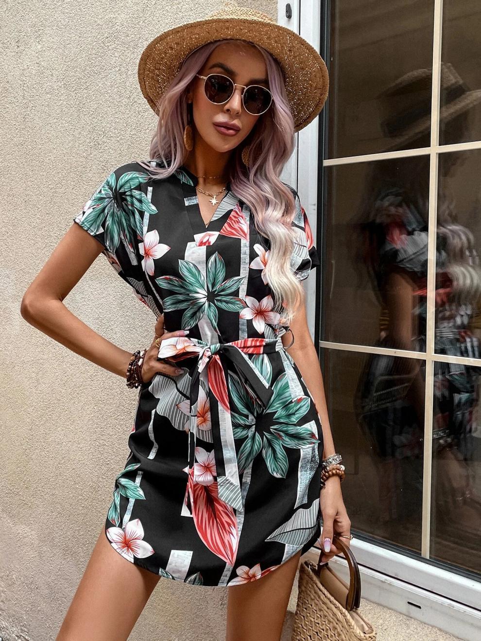 2023 estación independiente Amazon vestido estampado de manga corta con cuello en V
