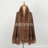 Compra Abrigo Jacquard de Color Sólido con Estampado de Leopardo a Rayas y Cuello de Piel, Dobladillo con Flecos Transfronterizo, Chal Calentito de Punto al por mayor en Joom.pro