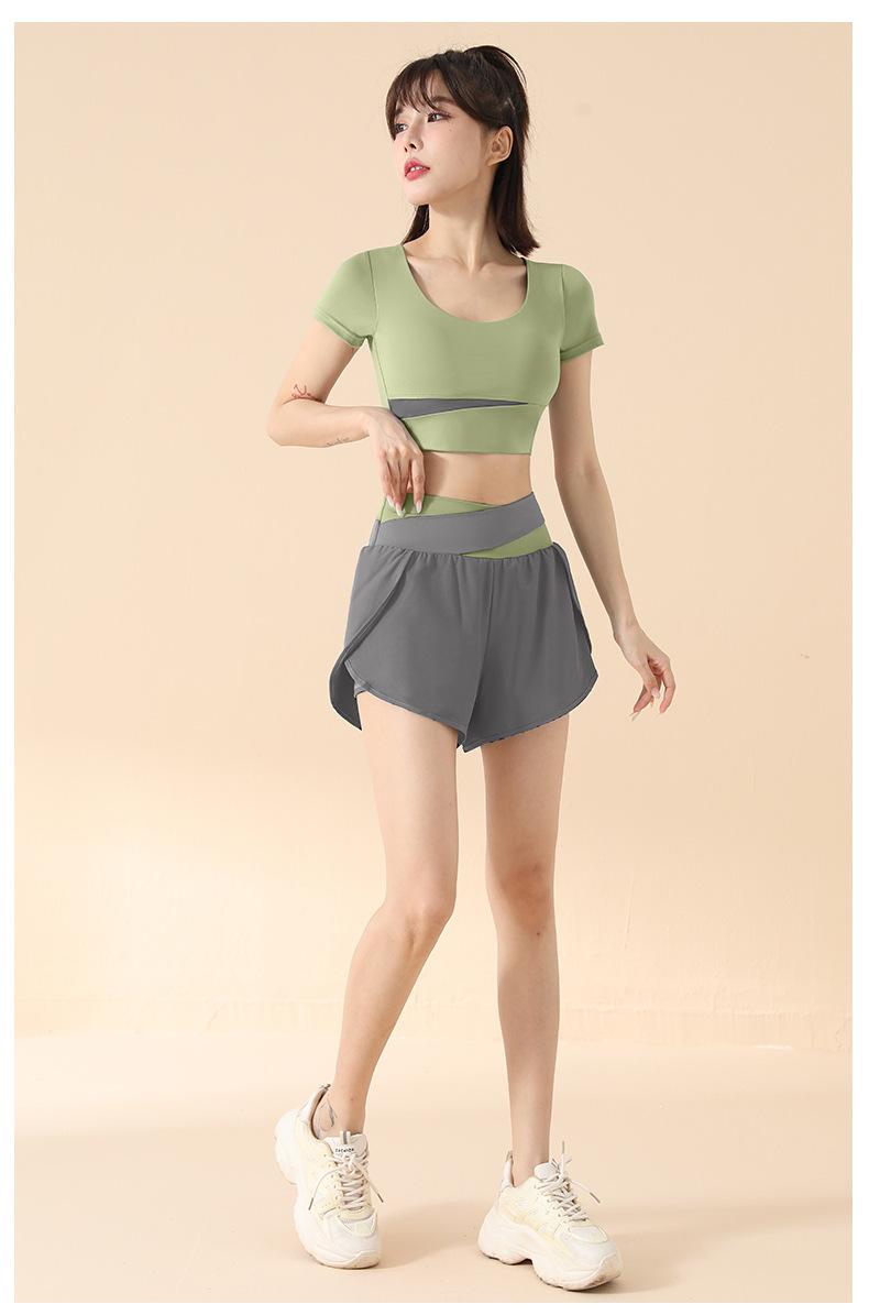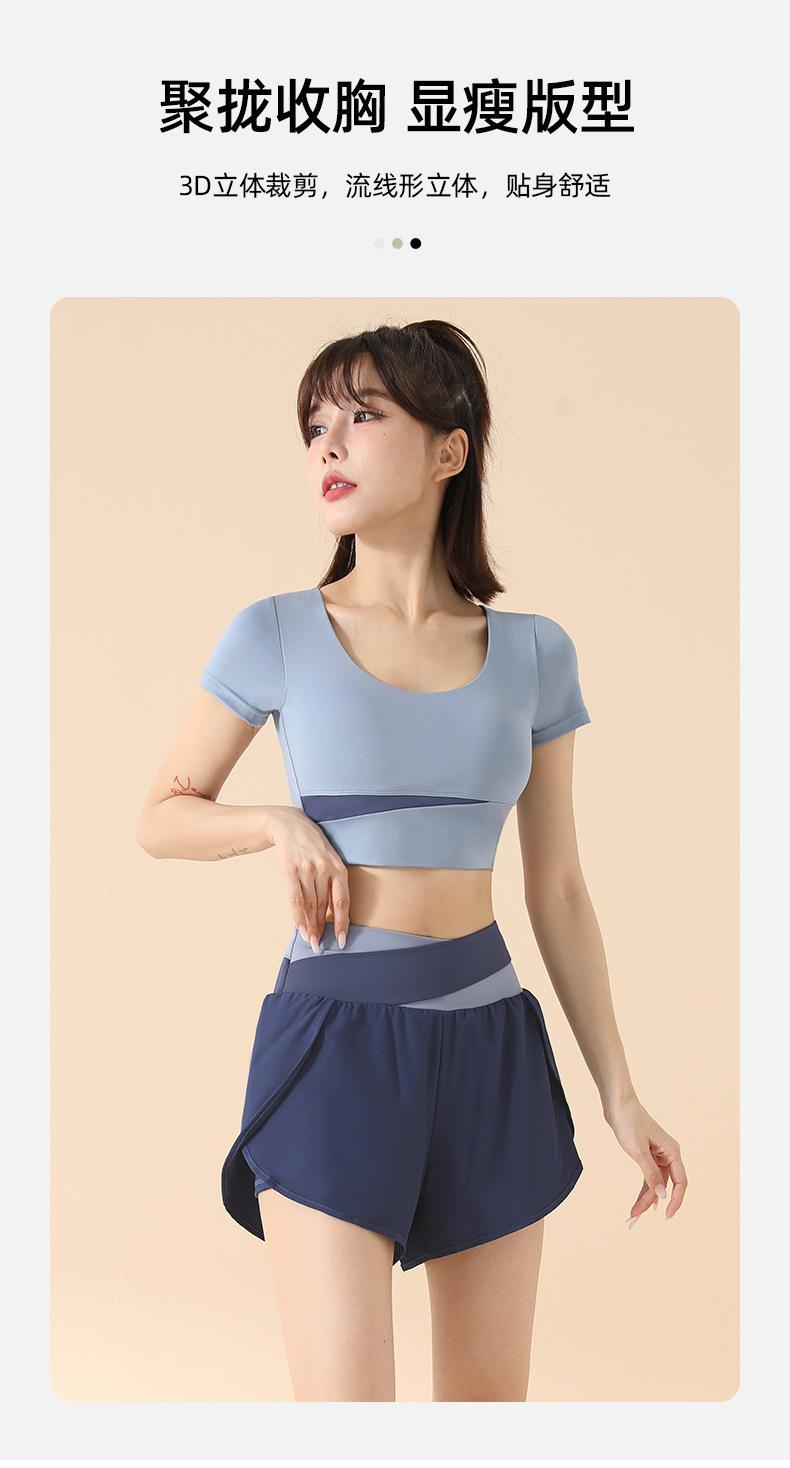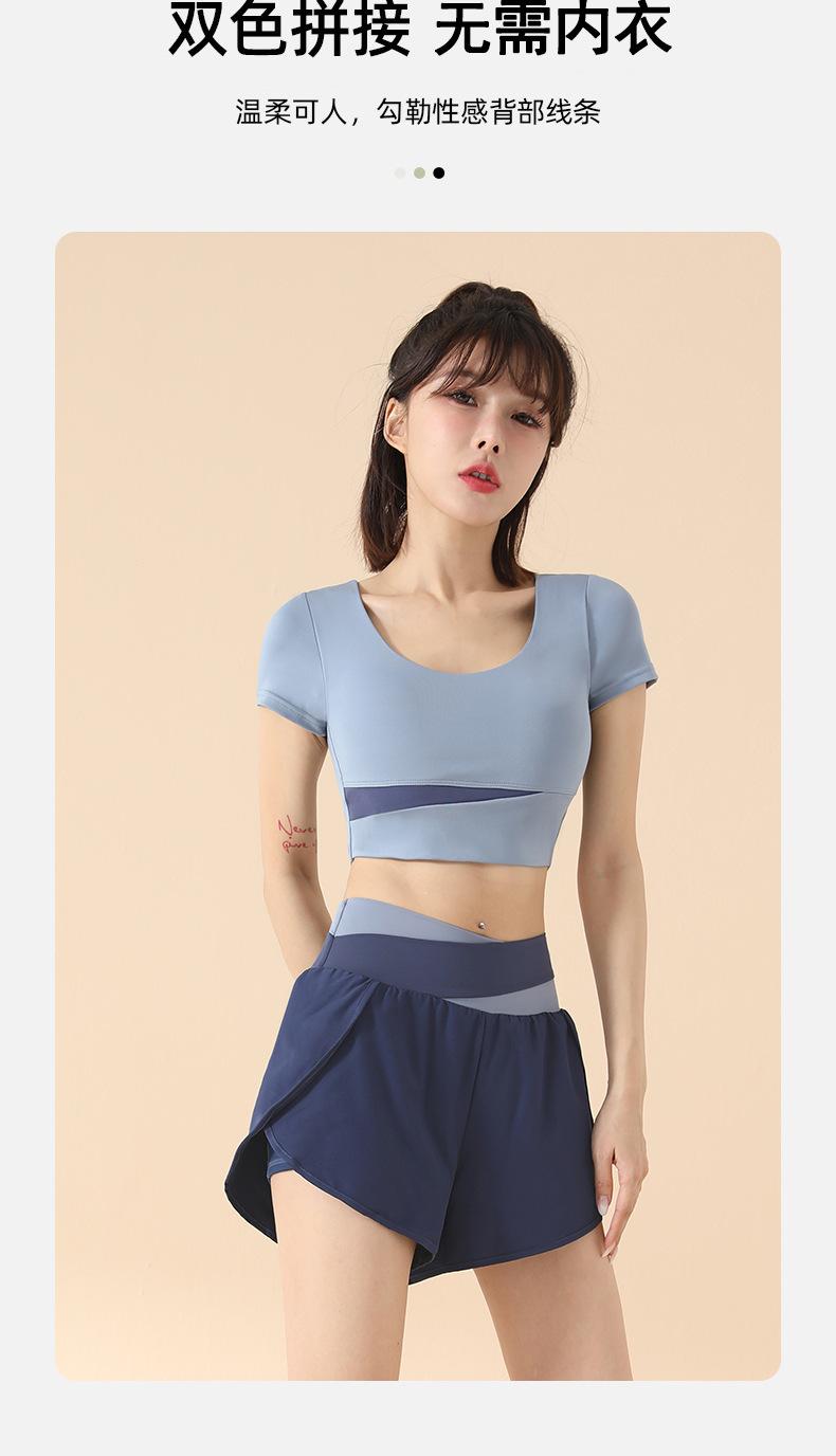Traje de yoga (2025) para mujer, entrenamiento de pilates con almohadilla para el pecho, ropa deportiva para correr, fitness y yoga, camiseta de manga corta.