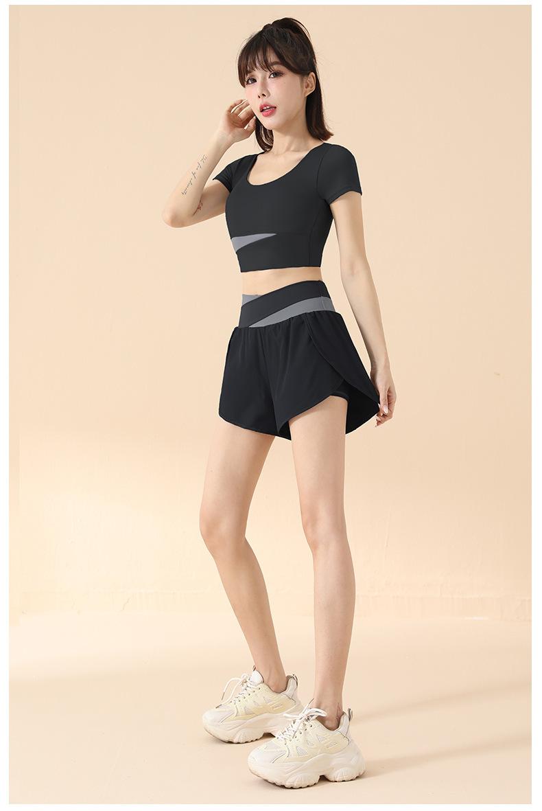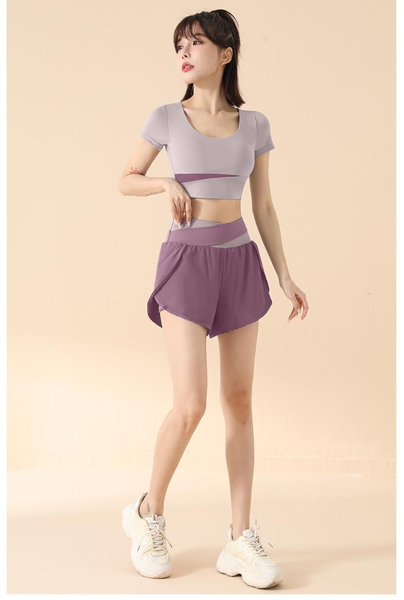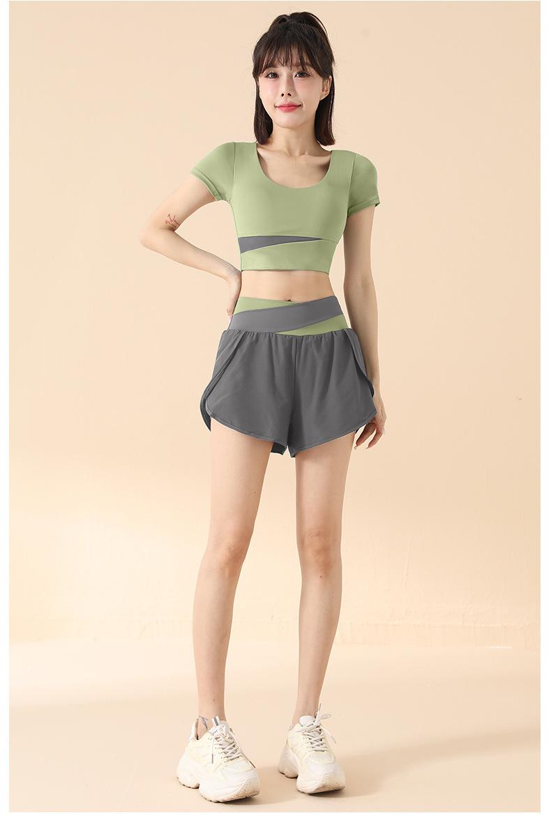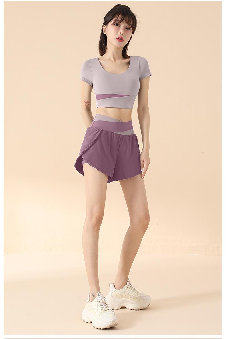 Traje de yoga (2025) para mujer, entrenamiento de pilates con almohadilla para el pecho, ropa deportiva para correr, fitness y yoga, camiseta de manga corta.