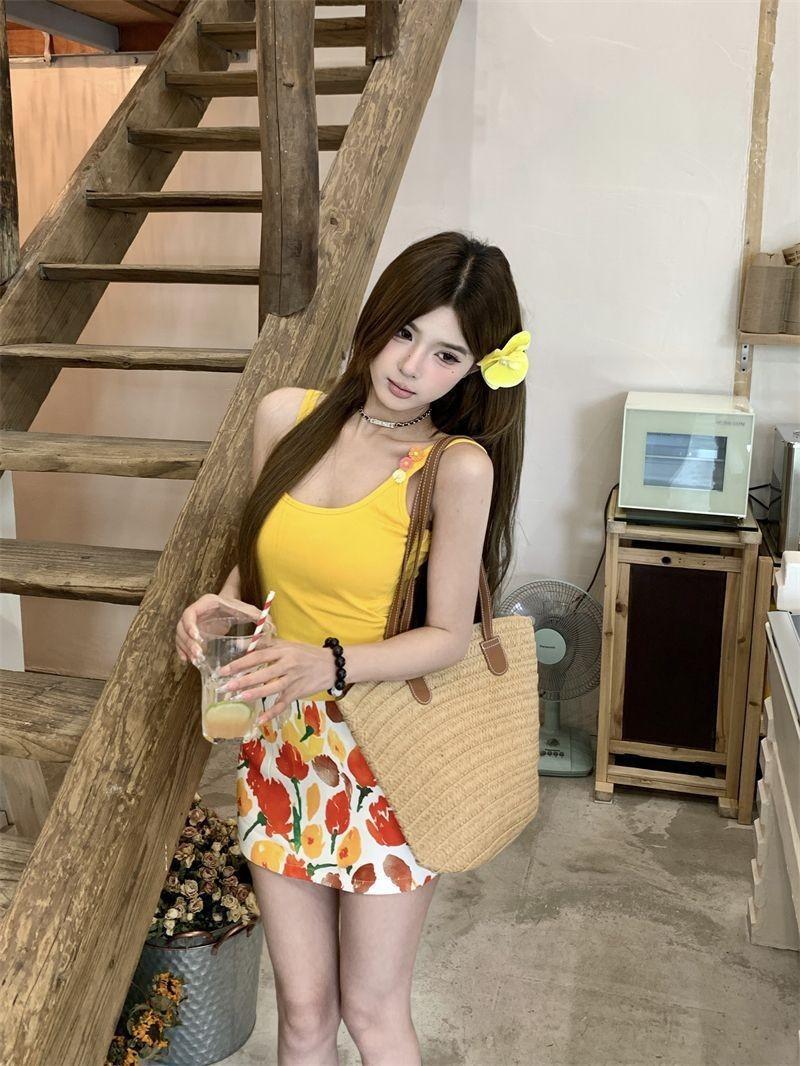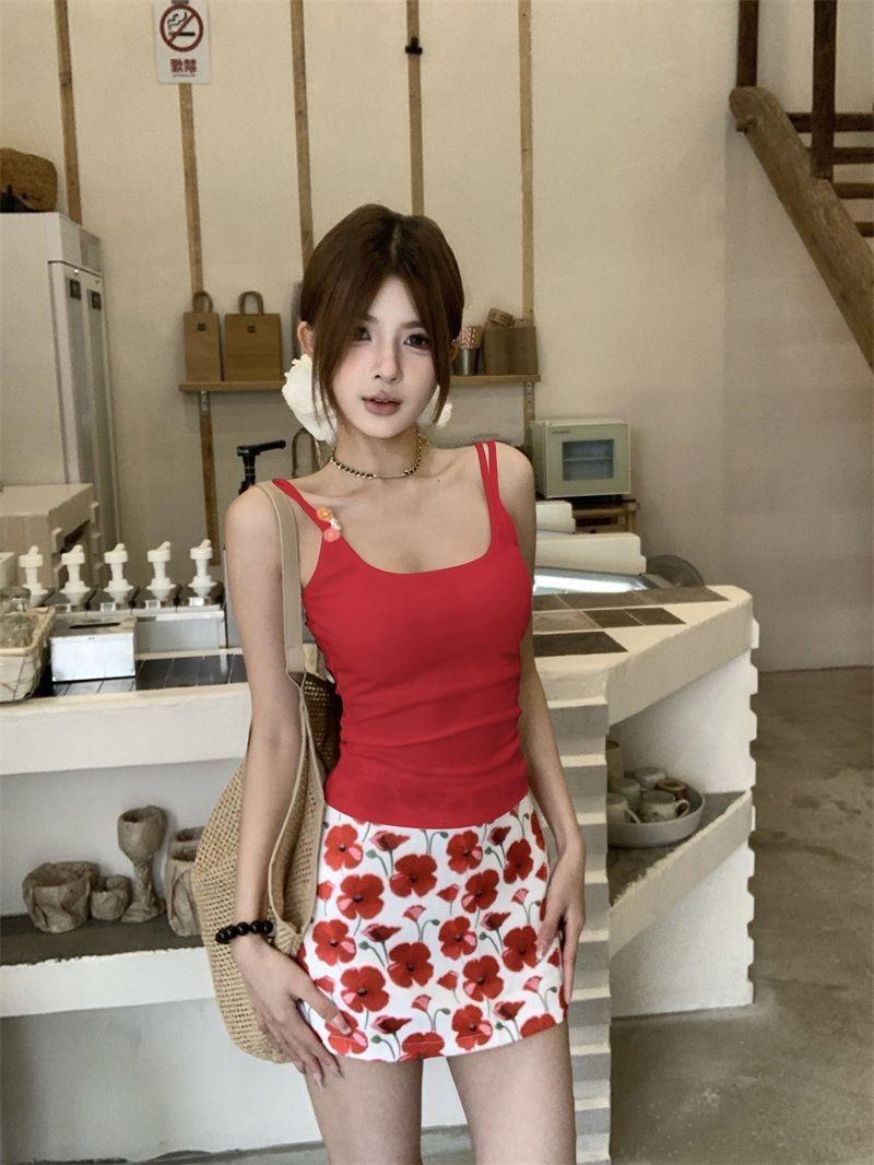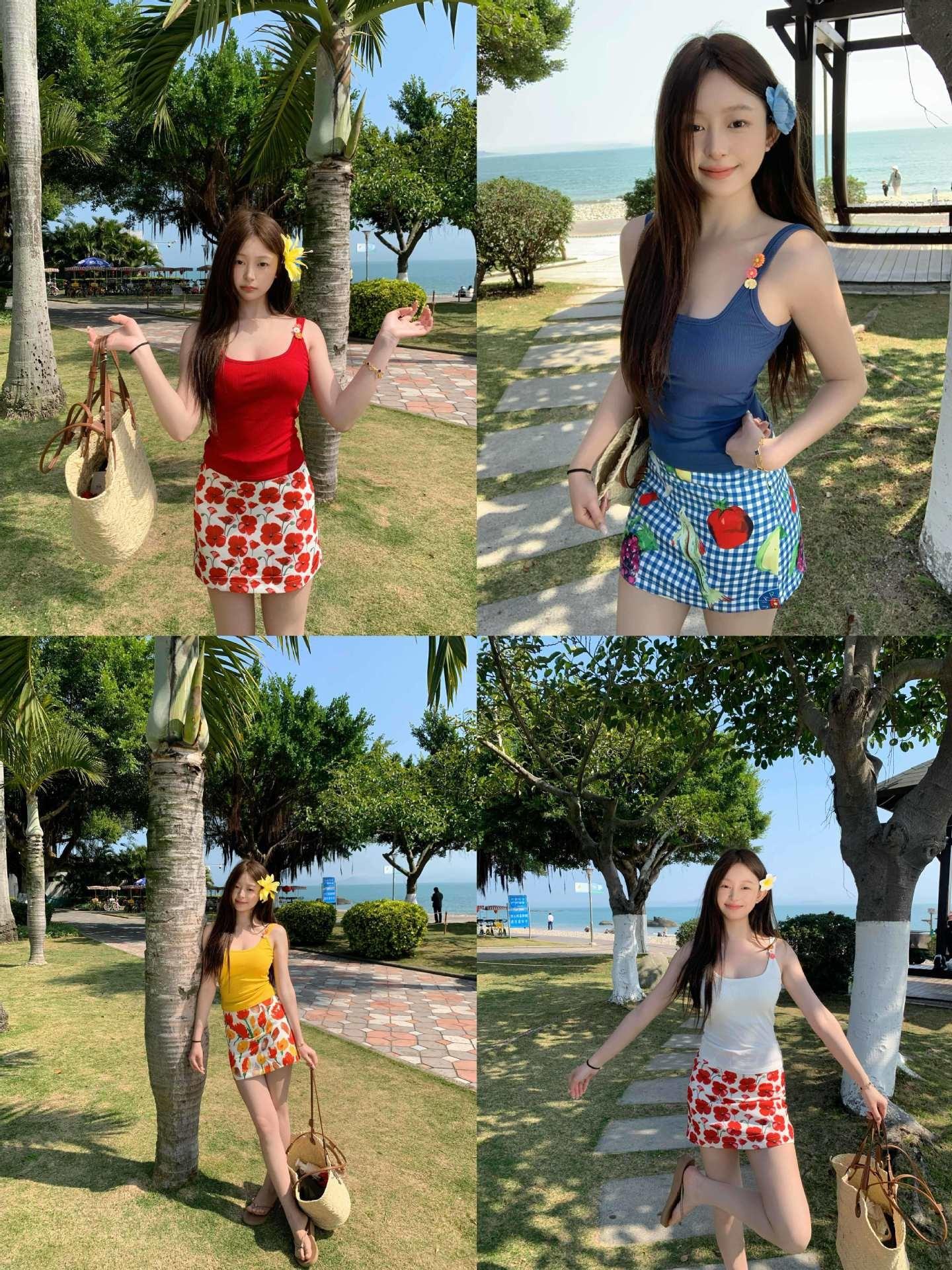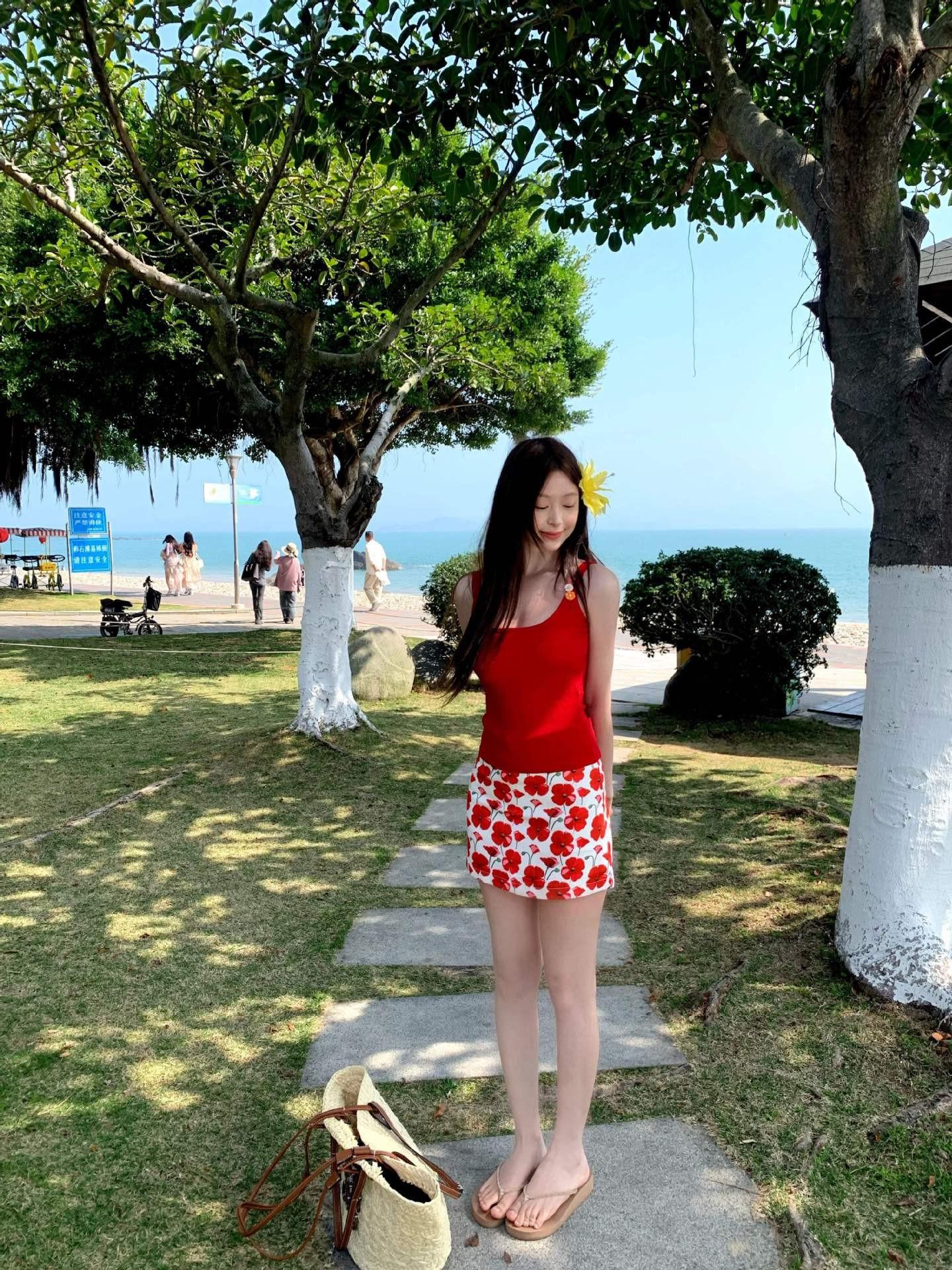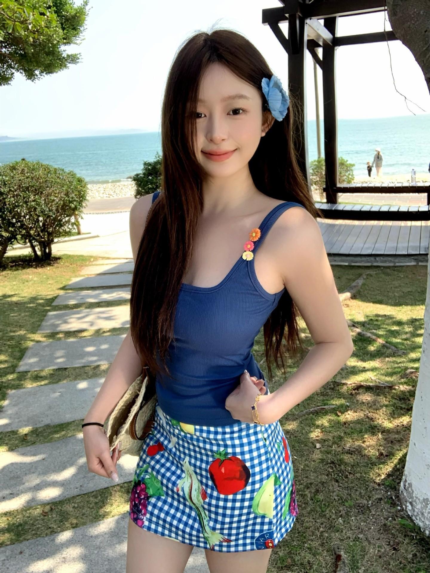 [3 Colores] Traje de Baño Dividido para Chica Pura y Lujuriosa para Mujer Conservador Estilo Falda Floral Casual Vacaciones Traje de Baño Dulce y Lindo