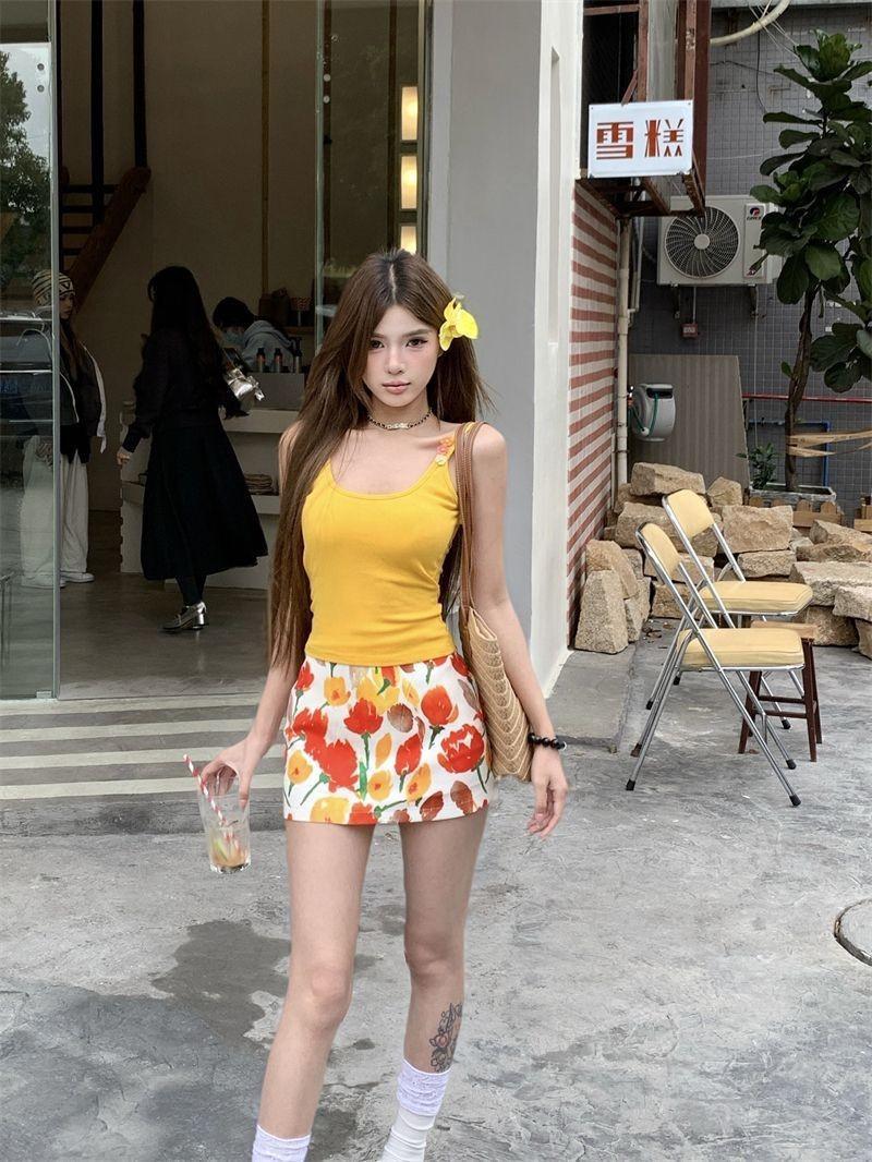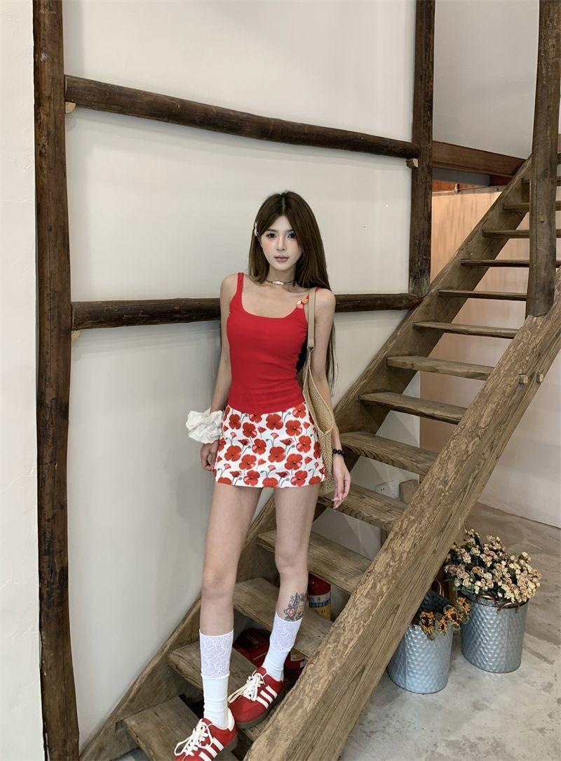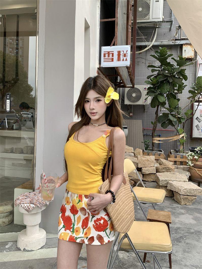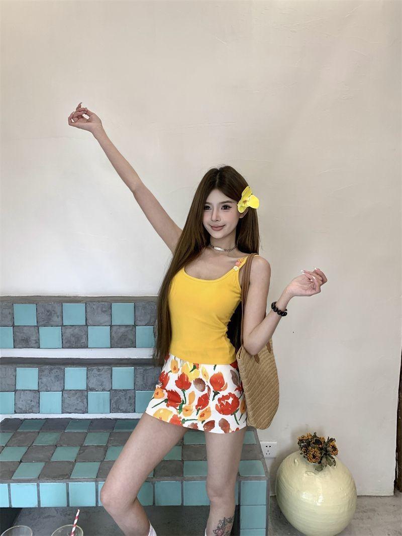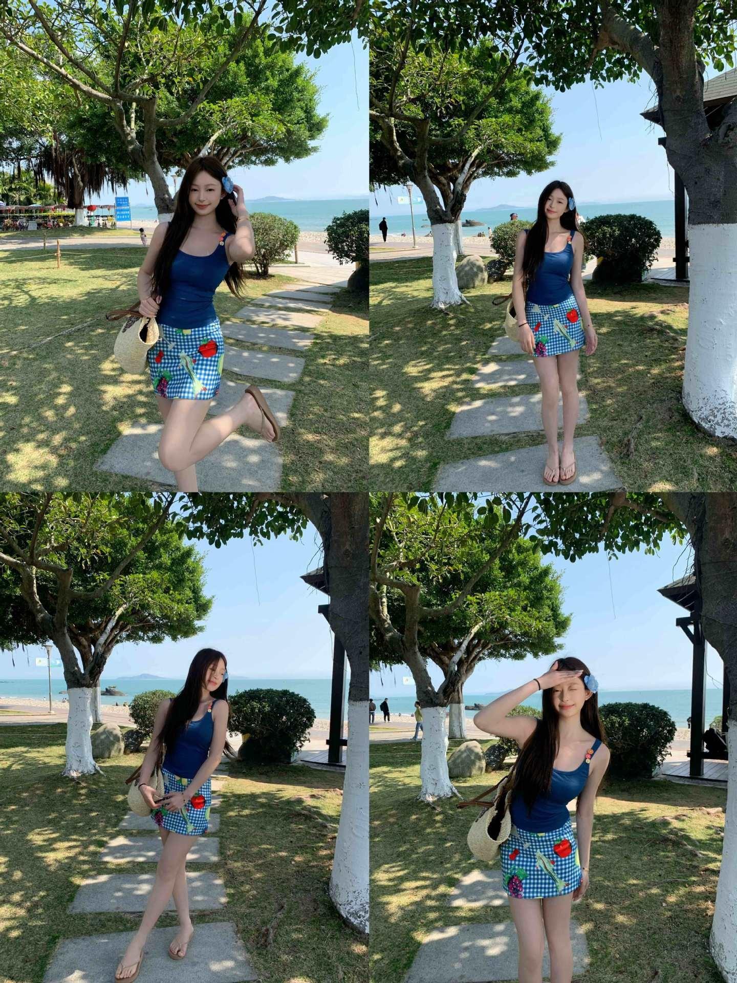 [3 Colores] Traje de Baño Dividido para Chica Pura y Lujuriosa para Mujer Conservador Estilo Falda Floral Casual Vacaciones Traje de Baño Dulce y Lindo