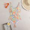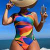Traje de baño de una pieza europeo y americano transfronterizo Amazon 2025 Sexy estampado multicolor traje de baño para mujer sin espalda ajustado