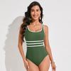 En stock 2025 Nuevo traje de baño clásico a rayas conservador traje de baño de una pieza moda sin espalda traje de baño europeo y americano