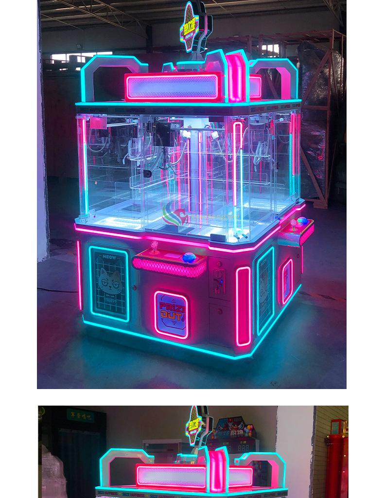 Nueva Máquina de Garra con Escaneo de Código Totalmente Transparente, Máquina de Tijeras, Mini Máquina de Muñecos Boutique Comercial para Niños para Cuatro Personas, Operada con Monedas