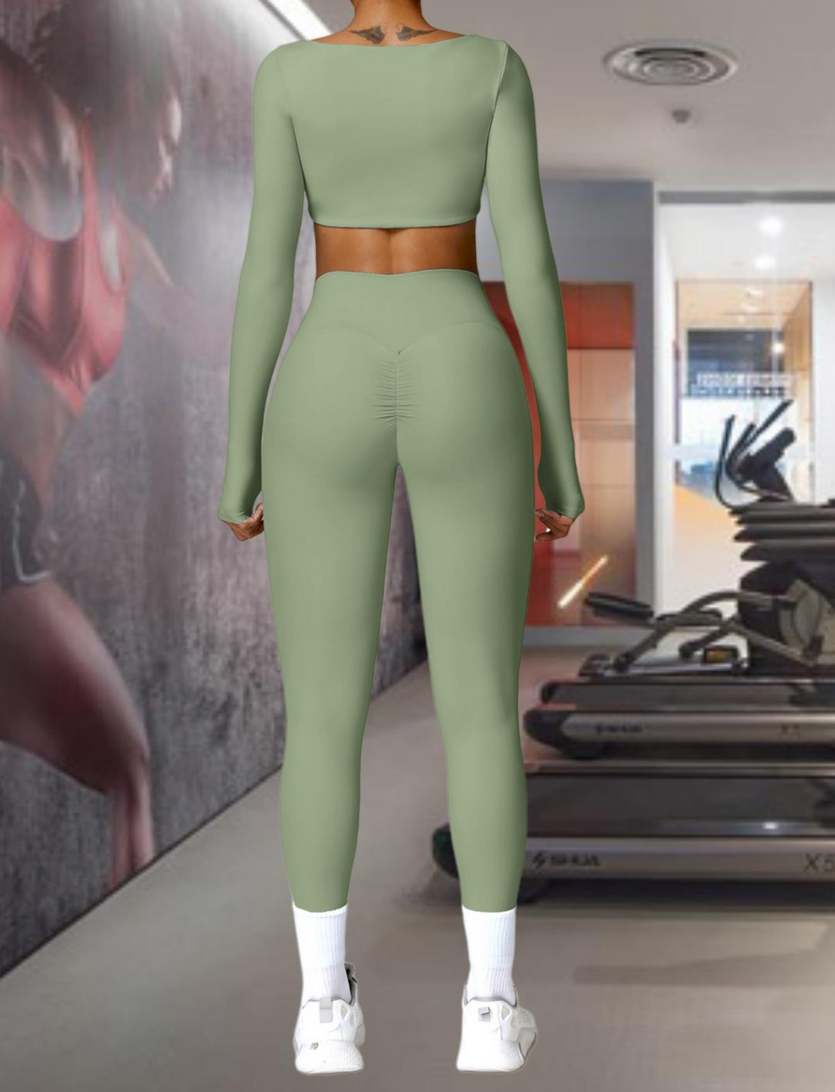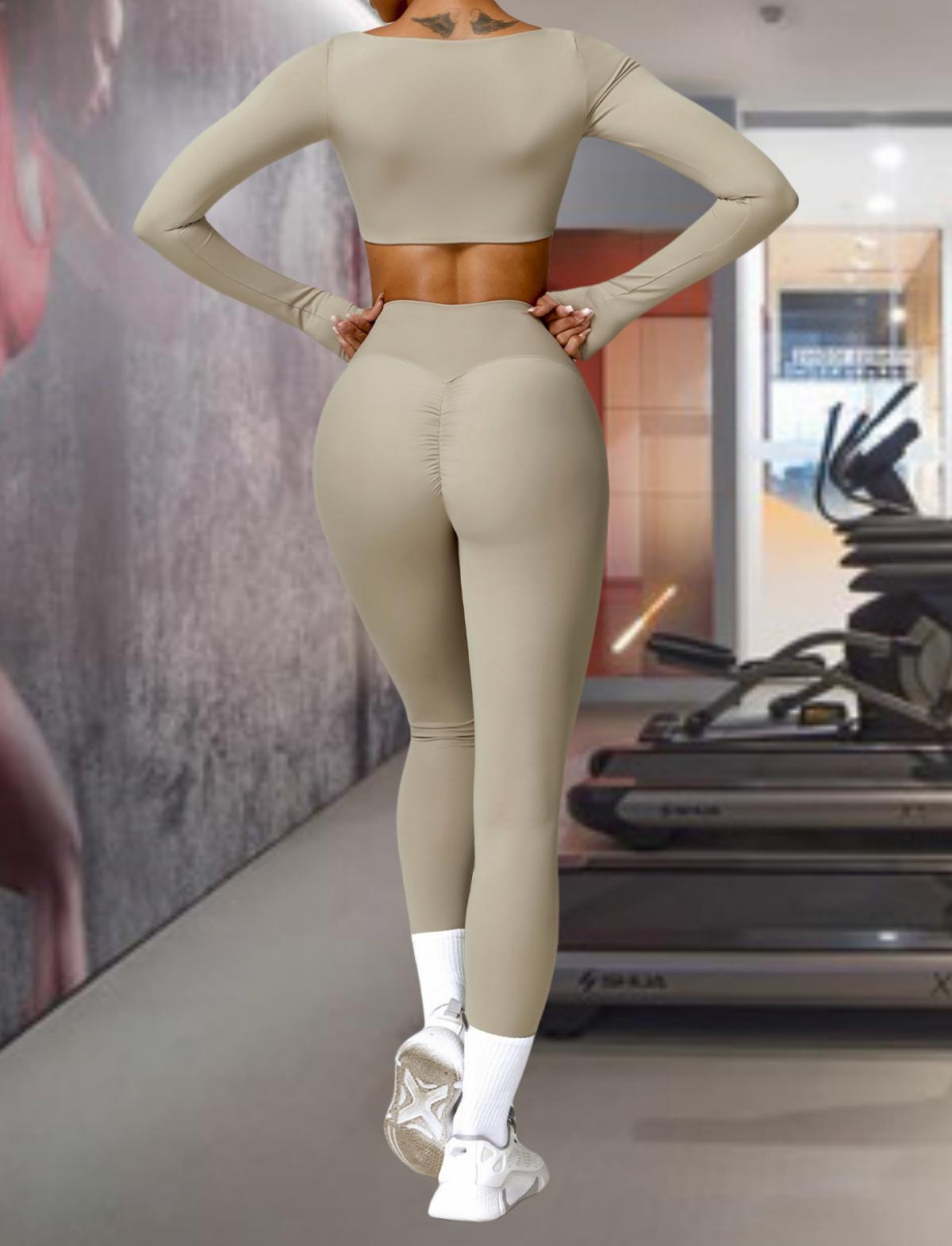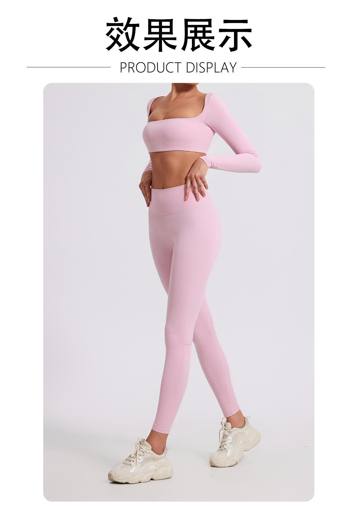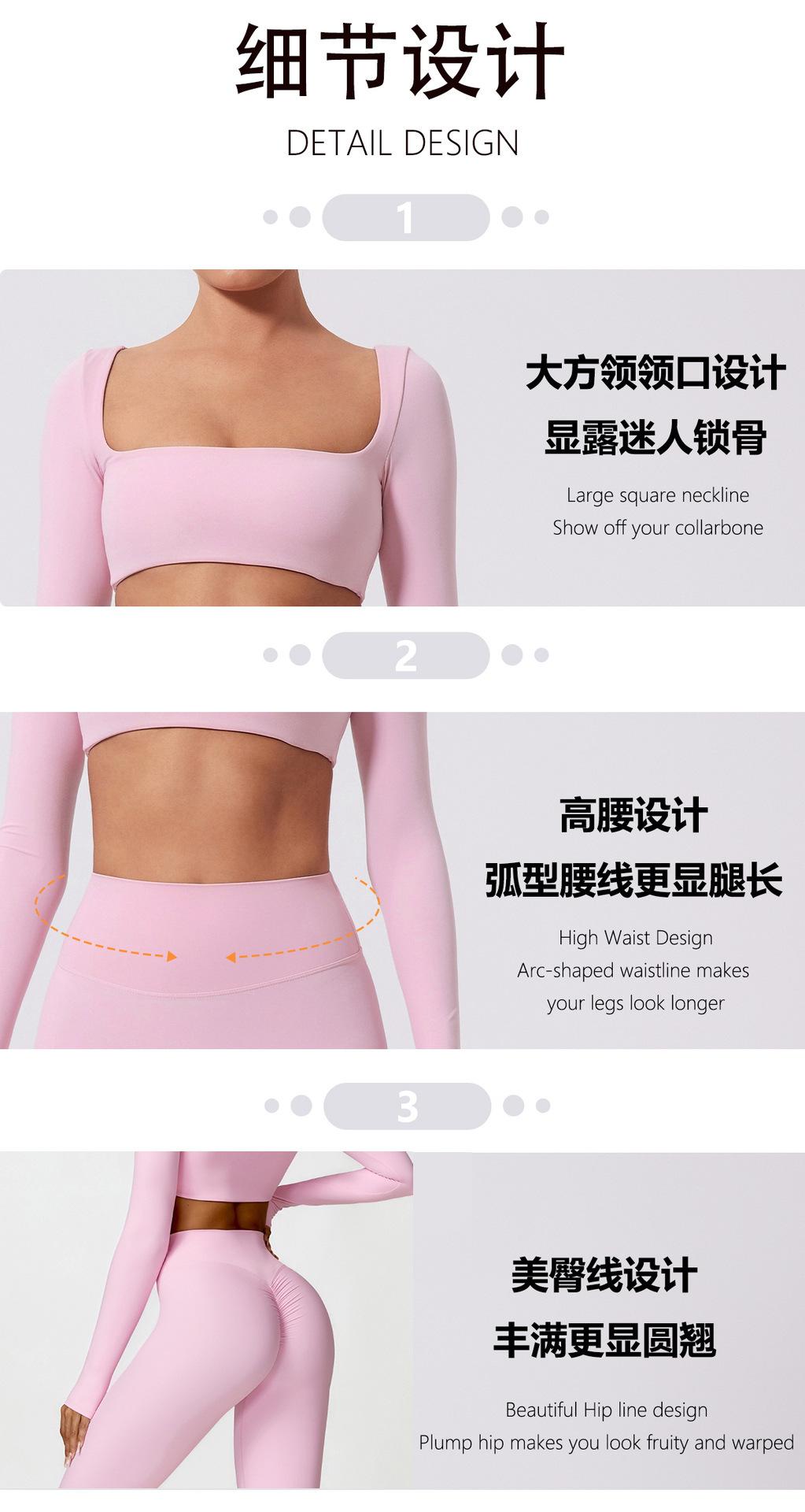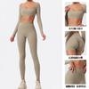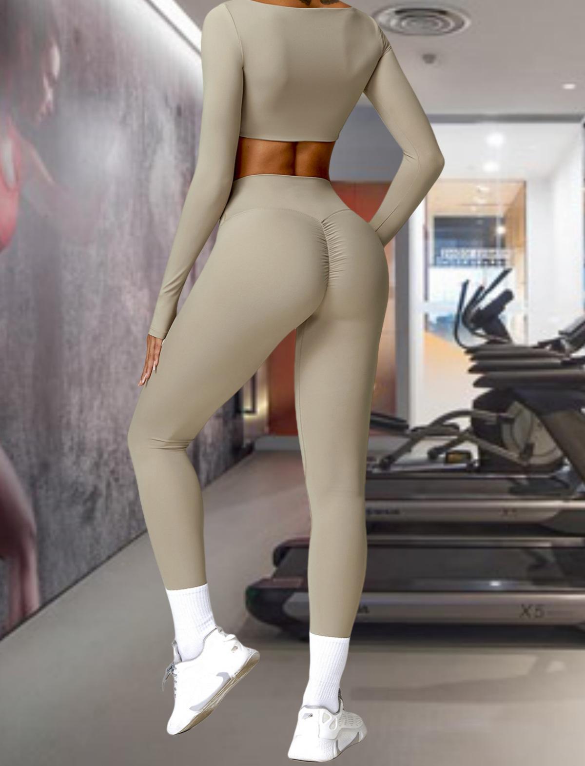 Ropa de Yoga Ajustada para Mujer Transfronteriza Corta de Manga Larga de Cintura Alta de Secado Rápido Deportiva de Alta Elasticidad con Almohadilla en el Pecho Traje de Pantalón Melocotón para Cadera