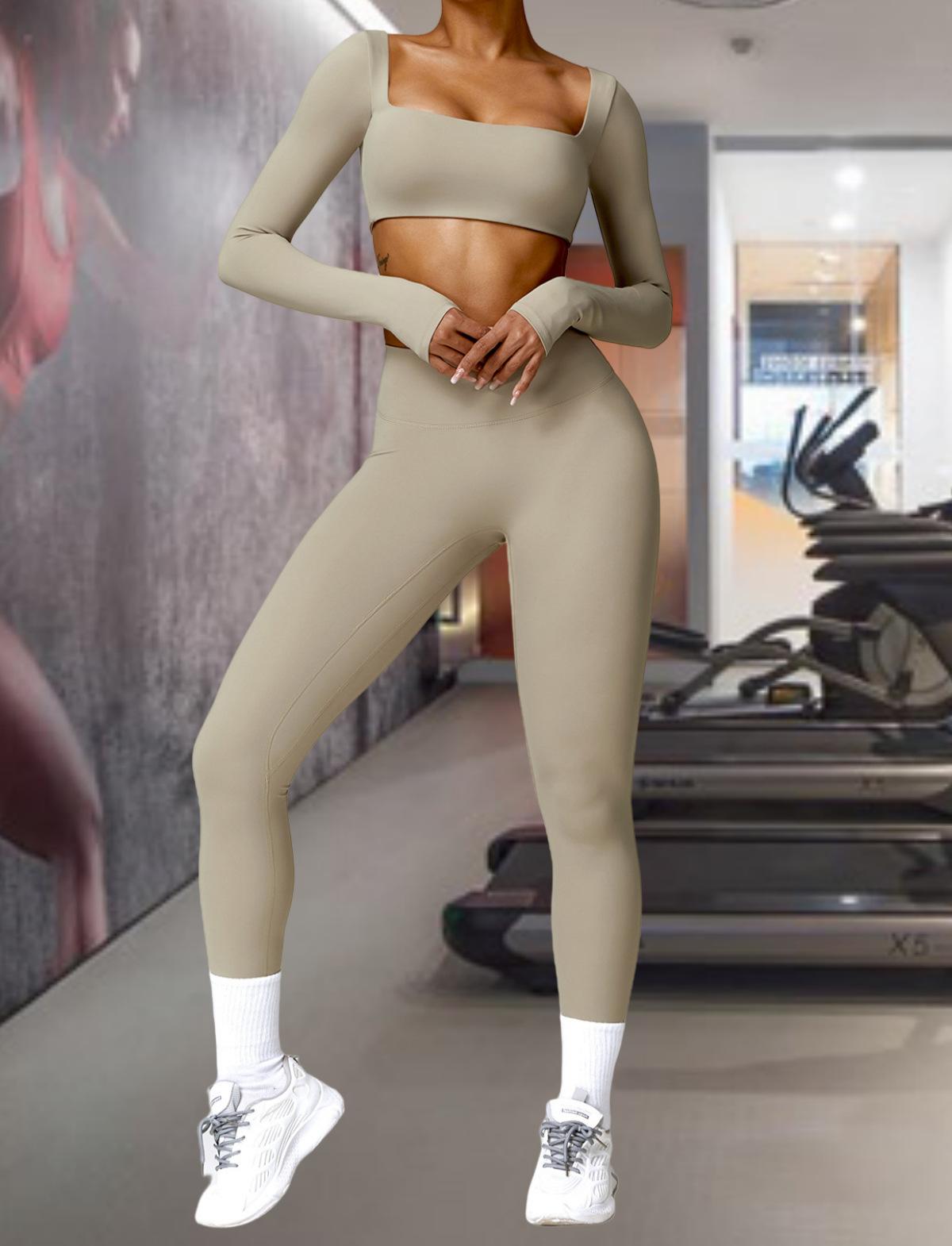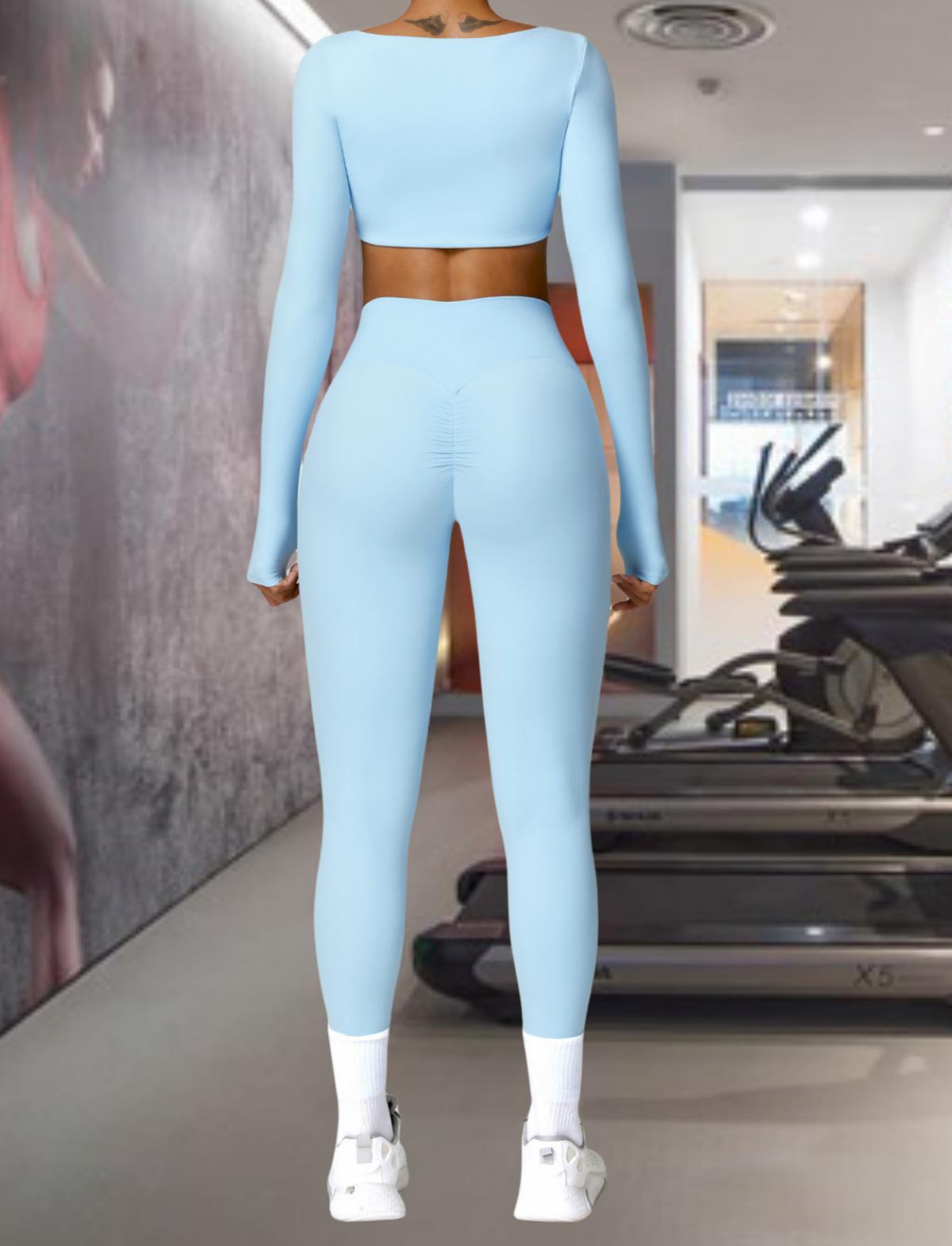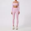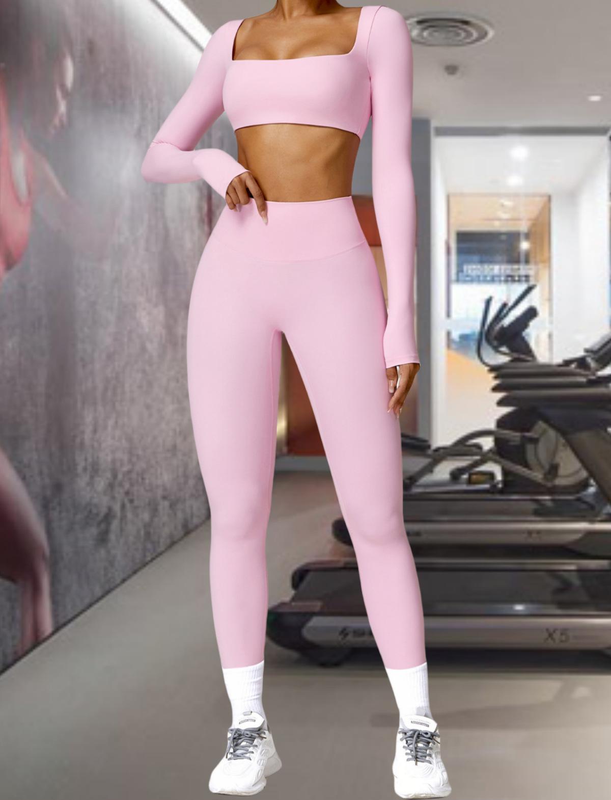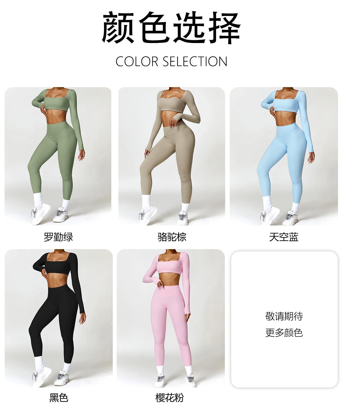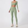 Ropa de Yoga Ajustada para Mujer Transfronteriza Corta de Manga Larga de Cintura Alta de Secado Rápido Deportiva de Alta Elasticidad con Almohadilla en el Pecho Traje de Pantalón Melocotón para Cadera