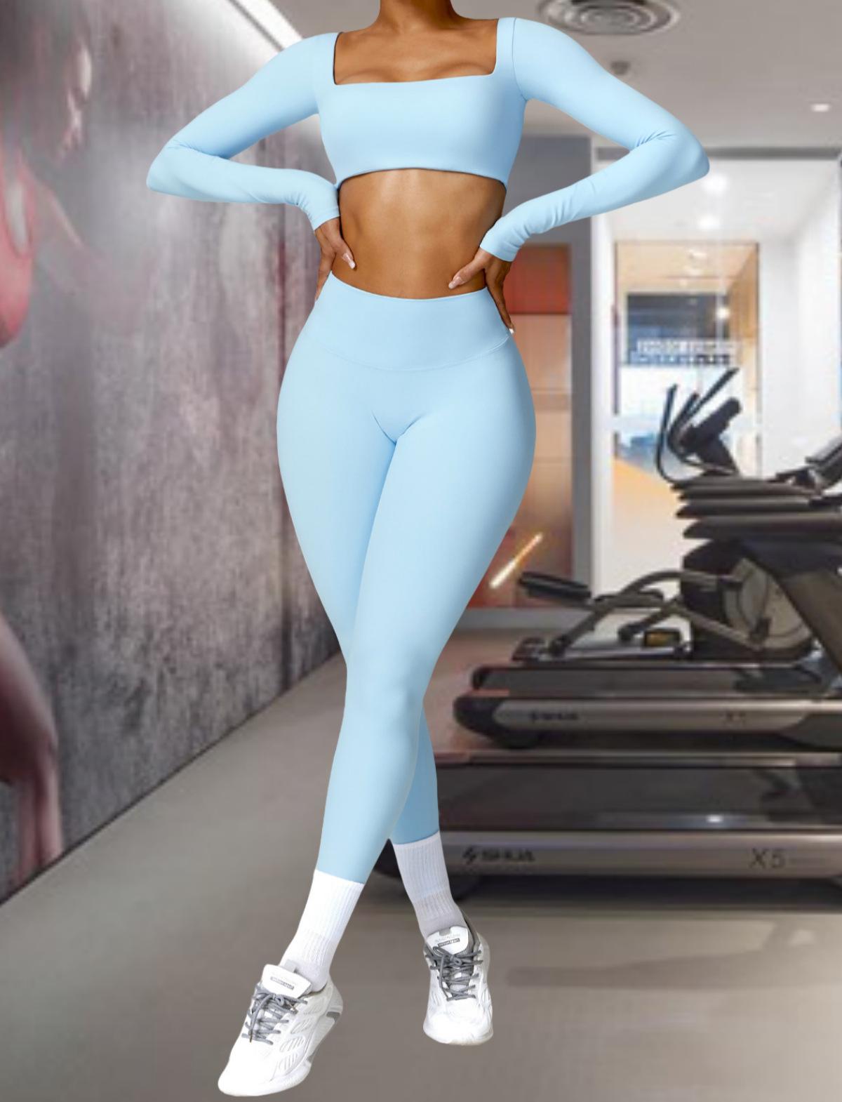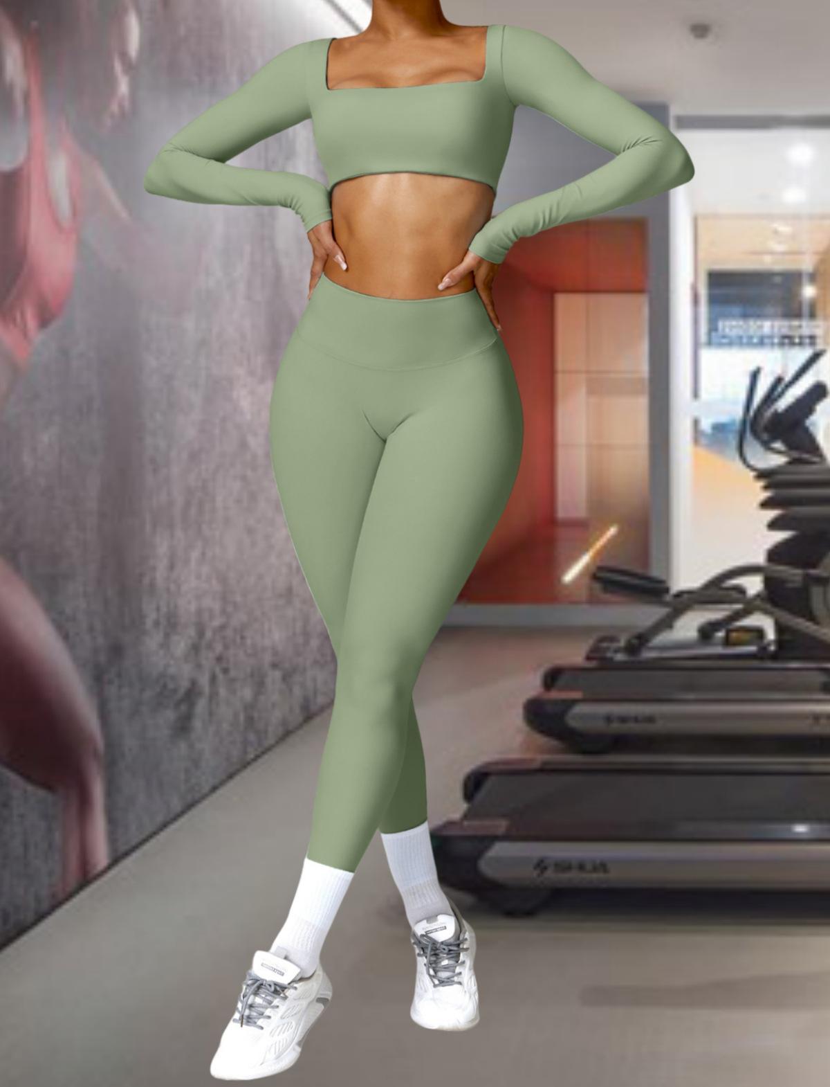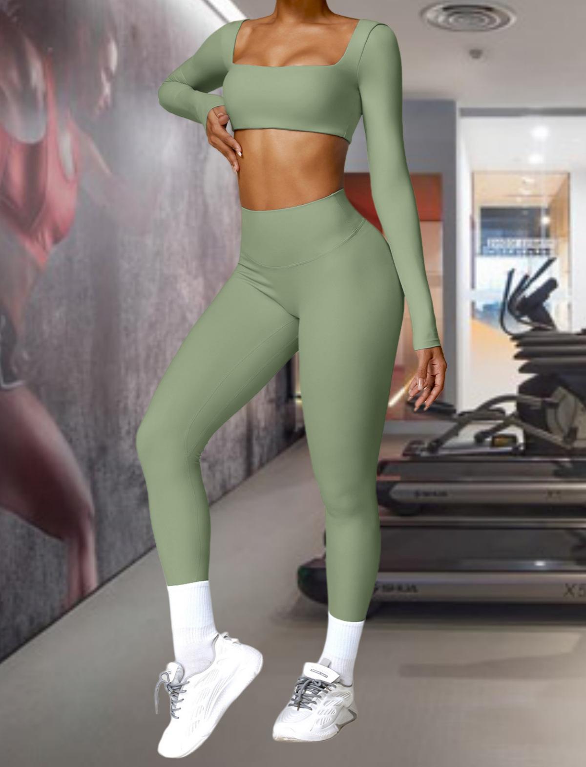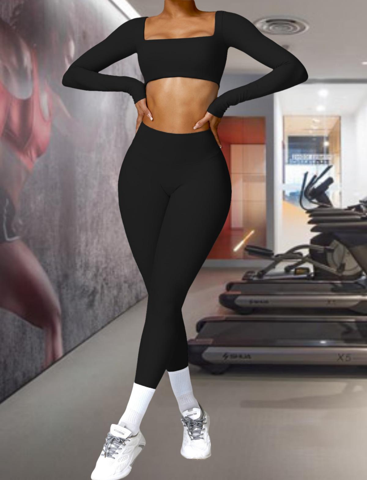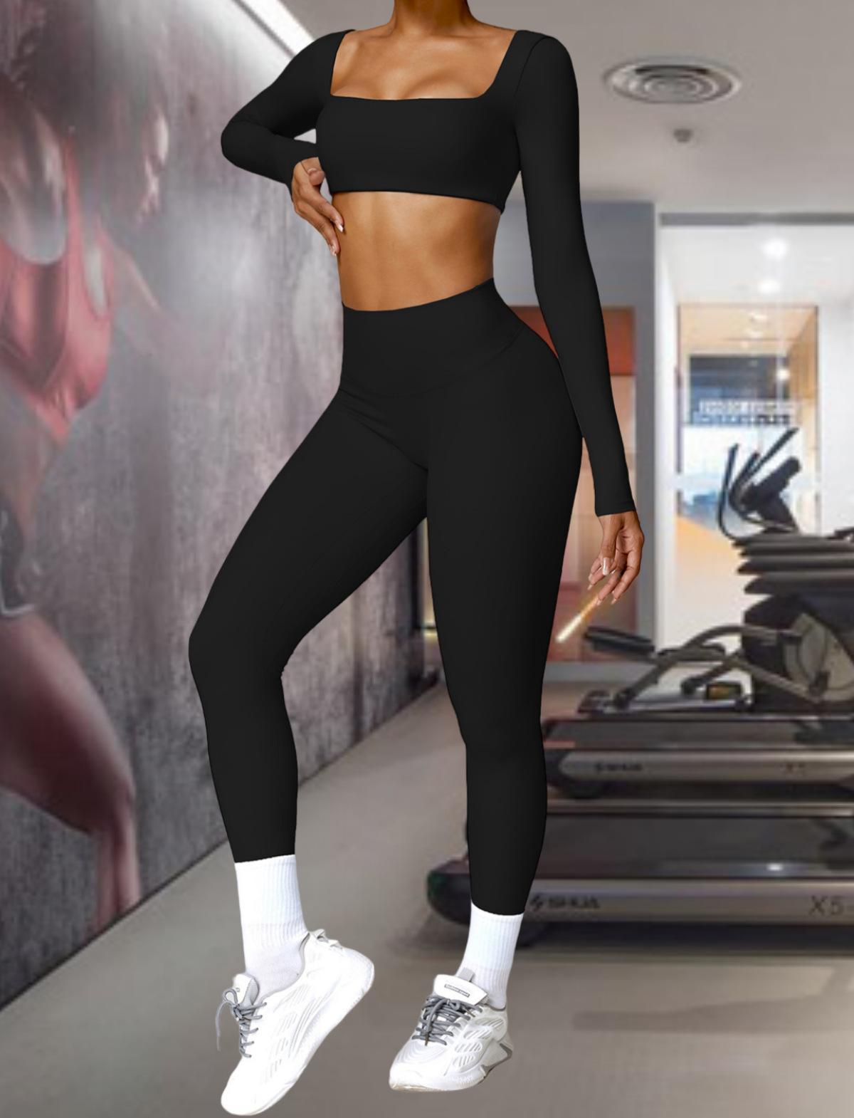 Ropa de Yoga Ajustada para Mujer Transfronteriza Corta de Manga Larga de Cintura Alta de Secado Rápido Deportiva de Alta Elasticidad con Almohadilla en el Pecho Traje de Pantalón Melocotón para Cadera