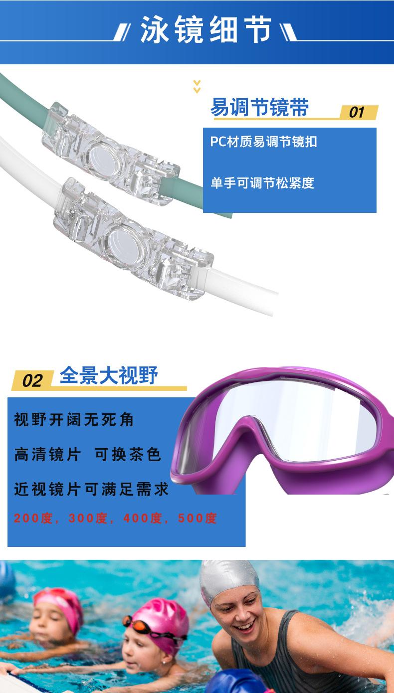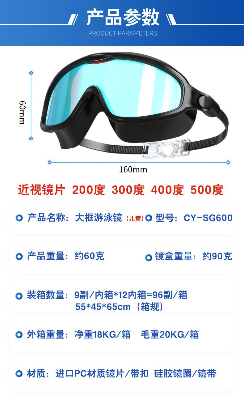 Gafas de Natación para Niños de Lente Única y Montura Grande para Miopía, Impermeables, Anti-Vaho, de Alta Definición, Gafas de Natación No Elásticas con Graduación
