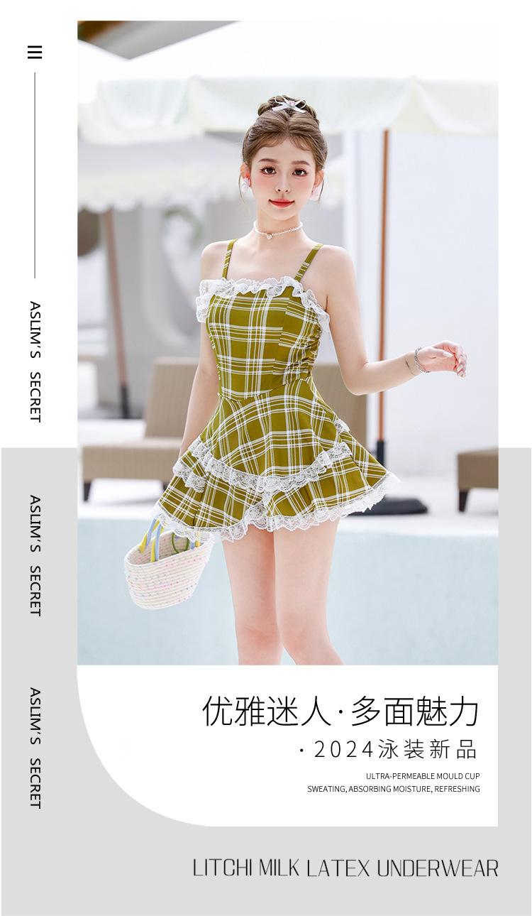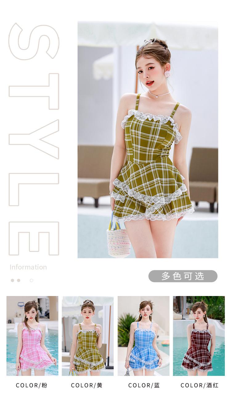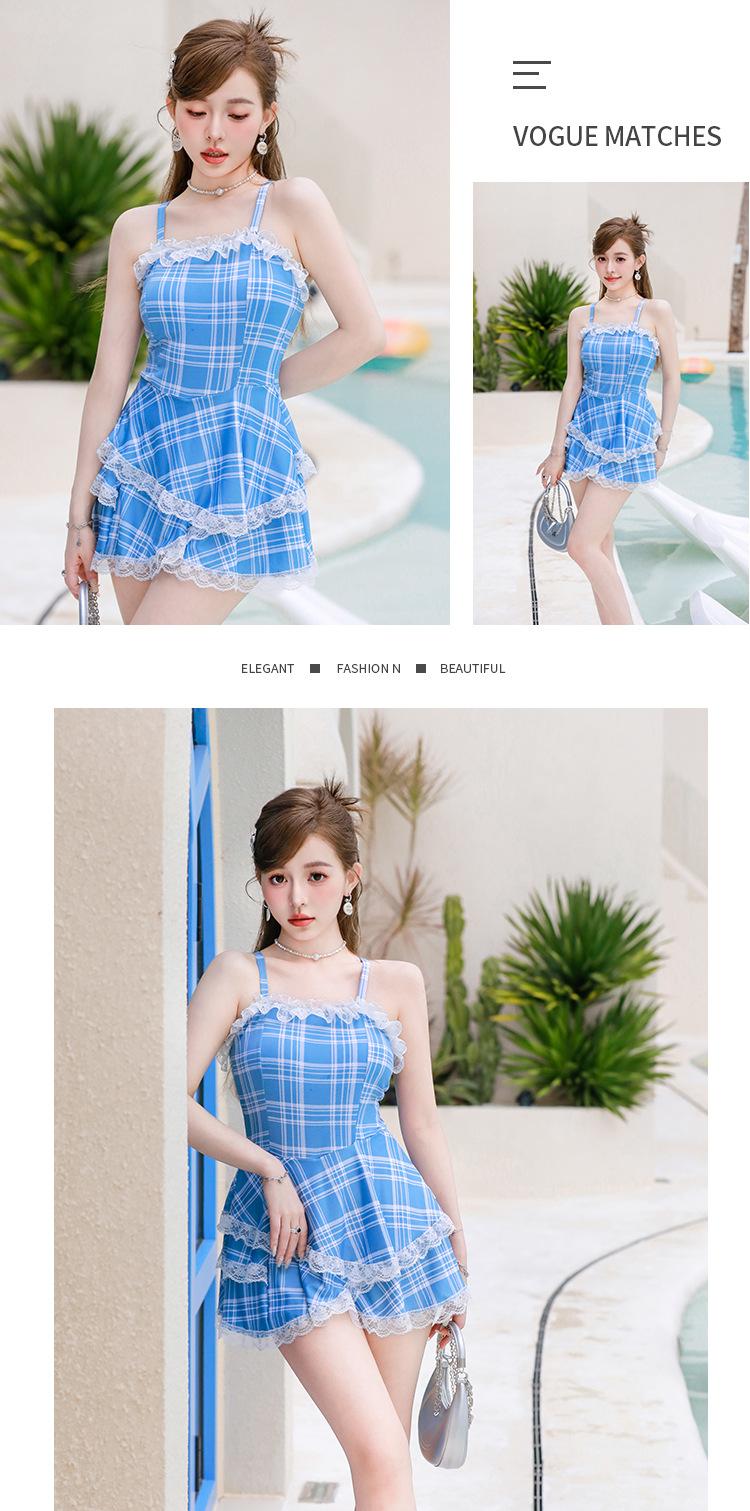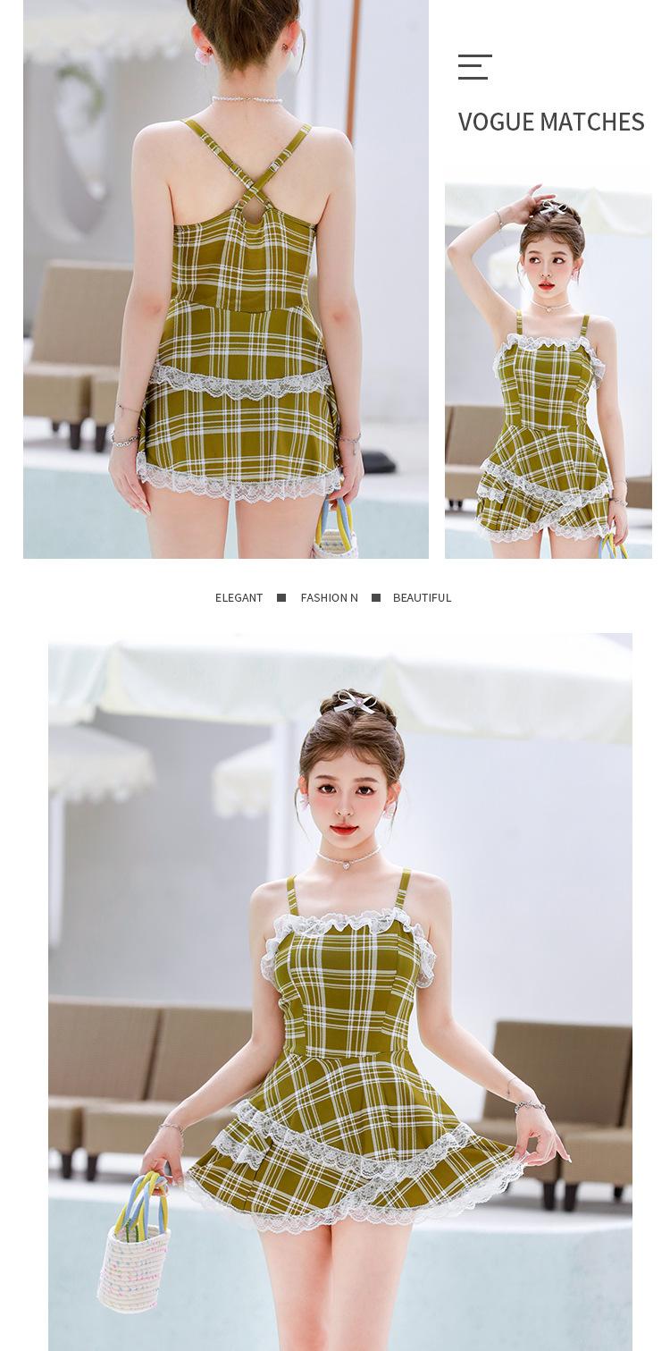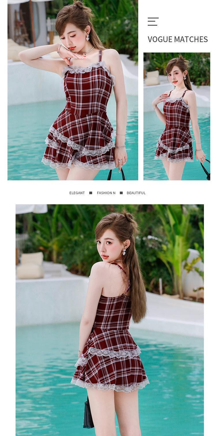 Nuevo Arribo para Mujer Cuadros Tirantes Elegante Cubre Carnosidades Adelgazante Cintura Ajustada Falda Abullonada Vacaciones Traje de Baño