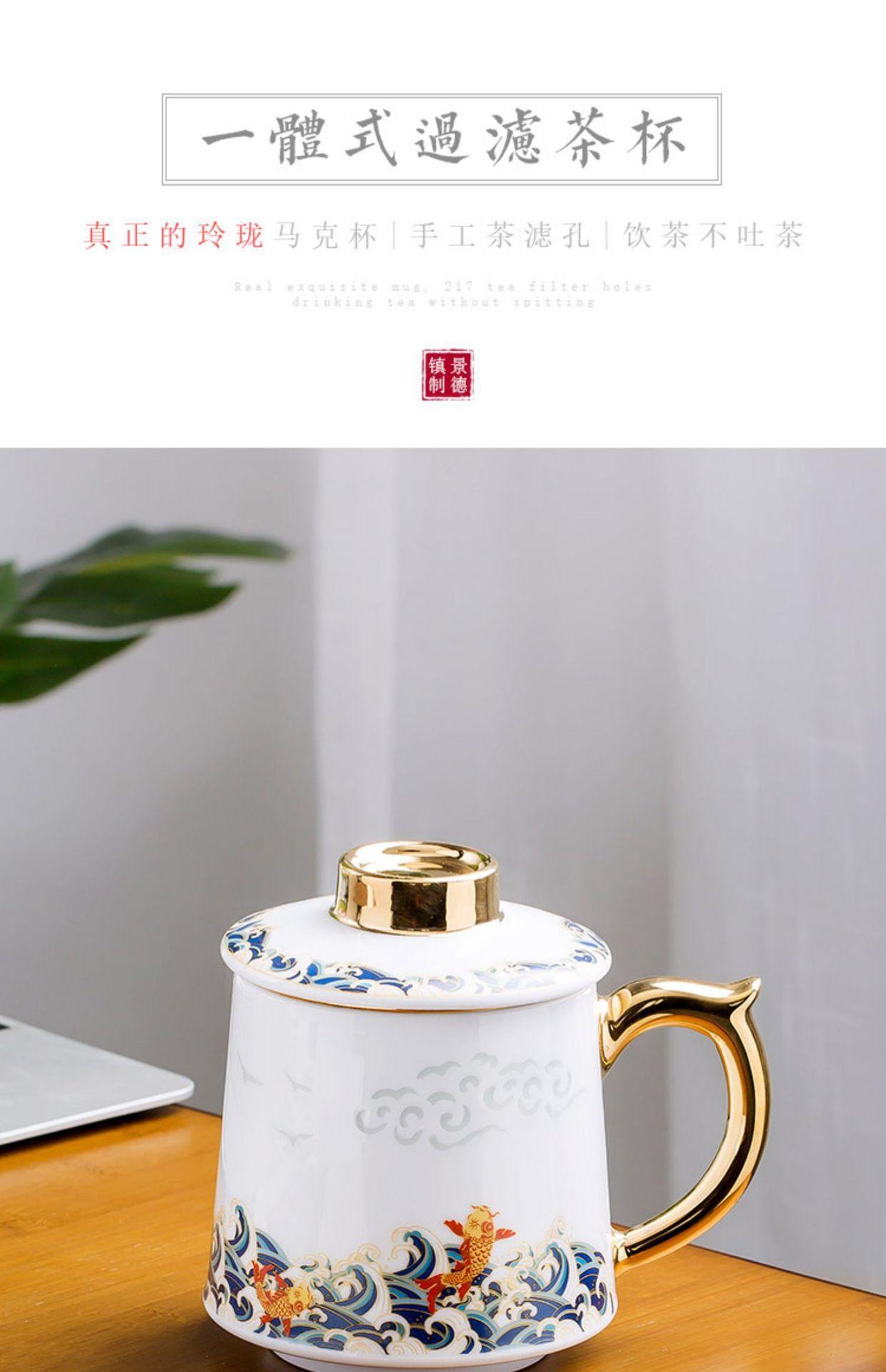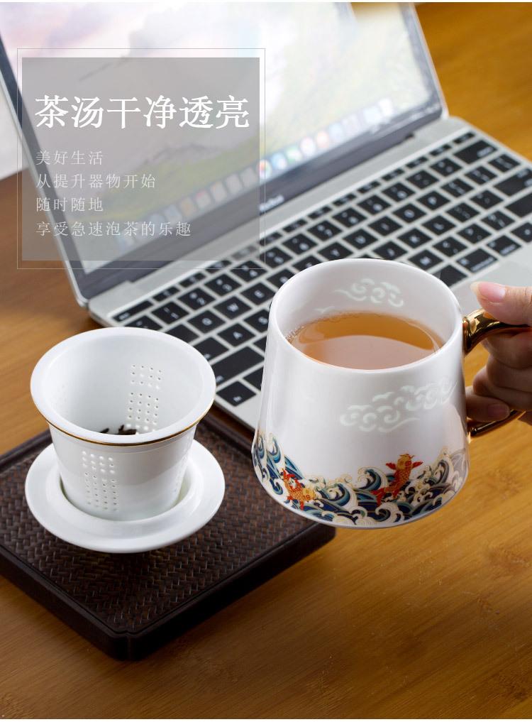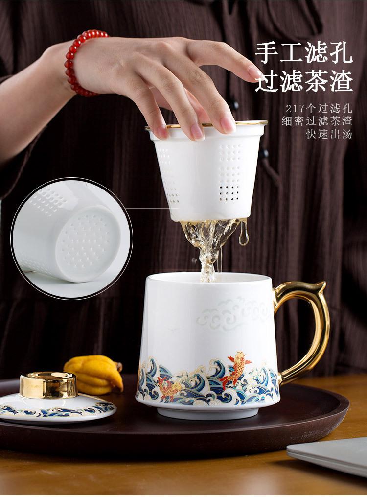 Taza de Té Exquisita de Jingdezhen Cerámica Hogar Pintada a Mano Oro Taza para Agua Filtrada Separación de Agua y Té Reunión de Oficina Taza de Té