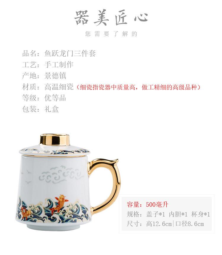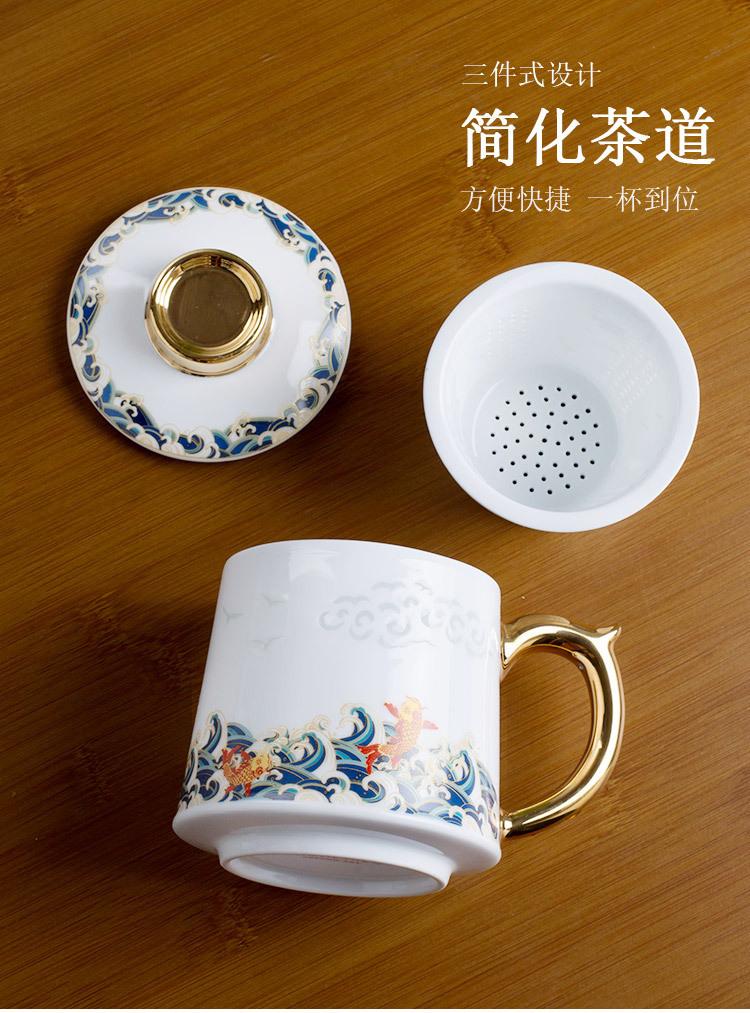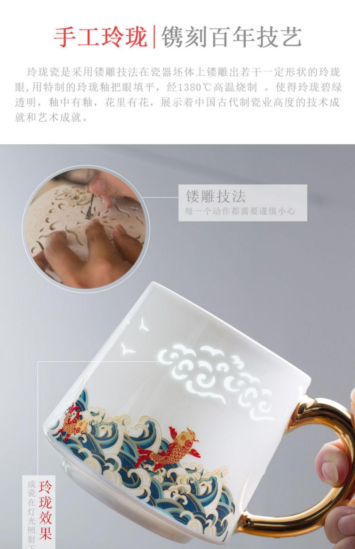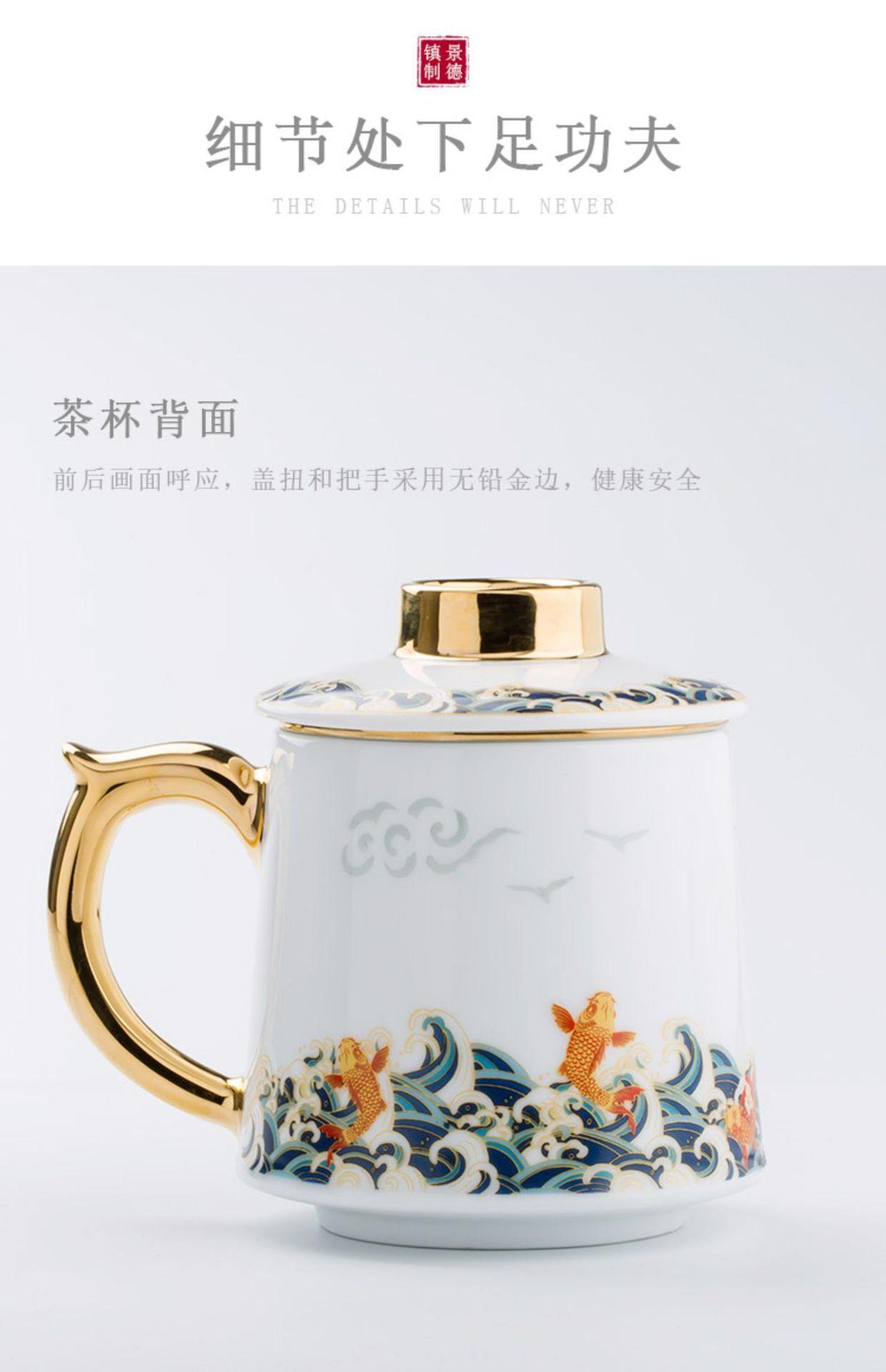 Taza de Té Exquisita de Jingdezhen Cerámica Hogar Pintada a Mano Oro Taza para Agua Filtrada Separación de Agua y Té Reunión de Oficina Taza de Té