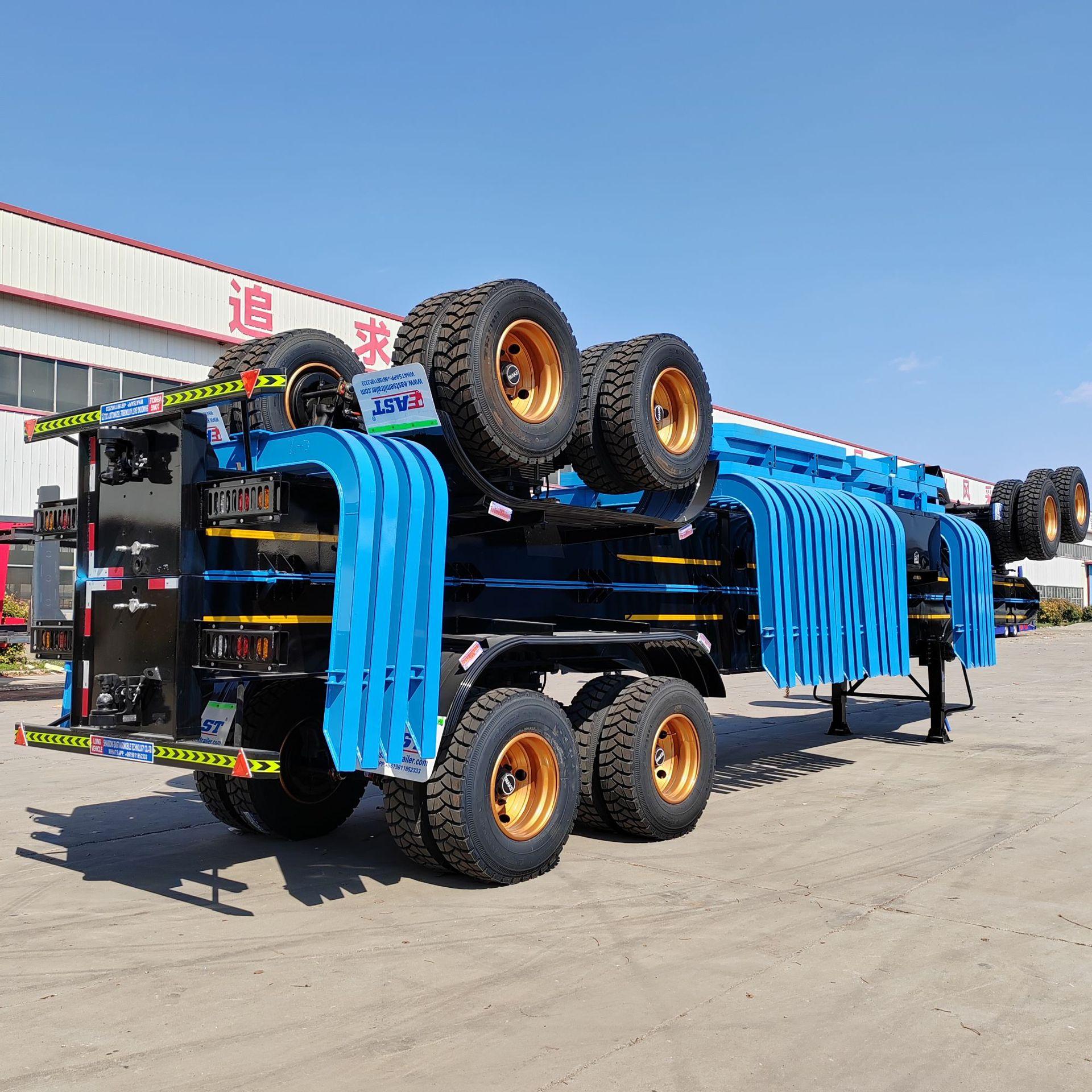Fabricantes de Semirremolques Venden Exportación Semirremolque de 2 Ejes de 40 Pies para Transporte de Madera 70 Toneladas Semirremolque de Plataforma