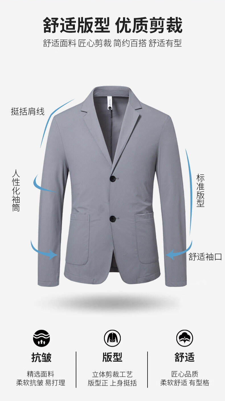 Traje Casual Nuevo para Hombre 2025 Estilo Business Ropa Casual Protección Solar Verano Ligero Traje Individual Top de Seda de Hielo
