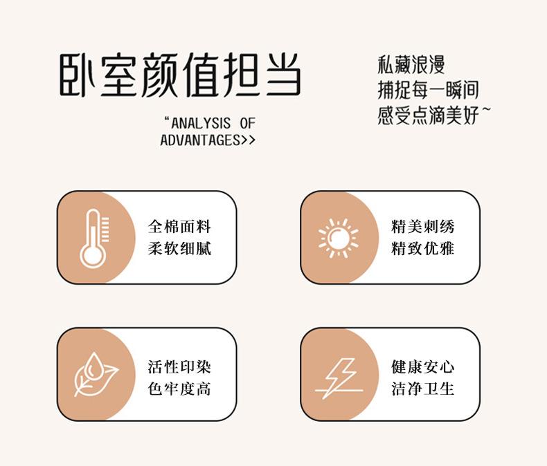 | | | Juego de cama de cuatro piezas de algodón 100% estilo pastoral Clase A, algodón de fibra larga Xinjiang de 60 hilos, funda de edredón estampada de algodón puro, juego de sábanas | ¥185.00 |