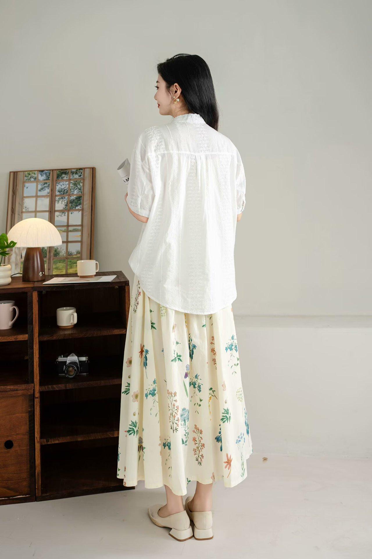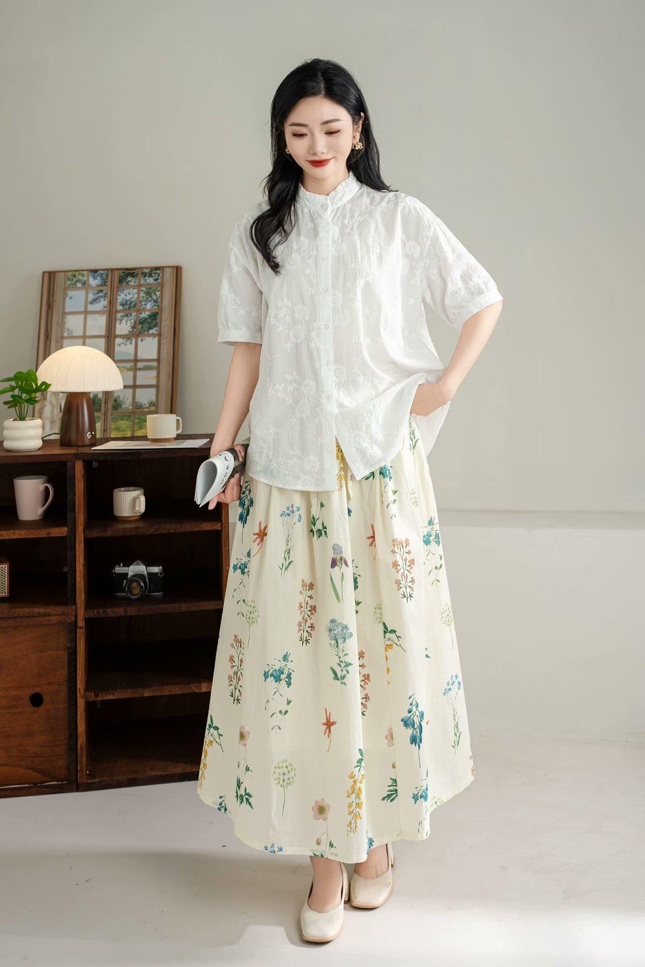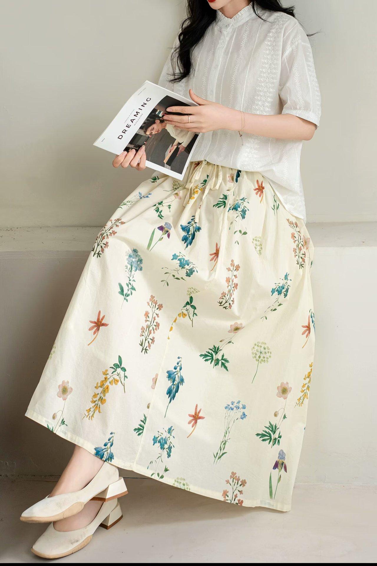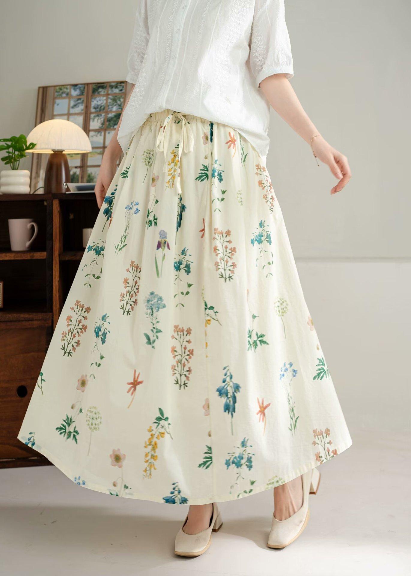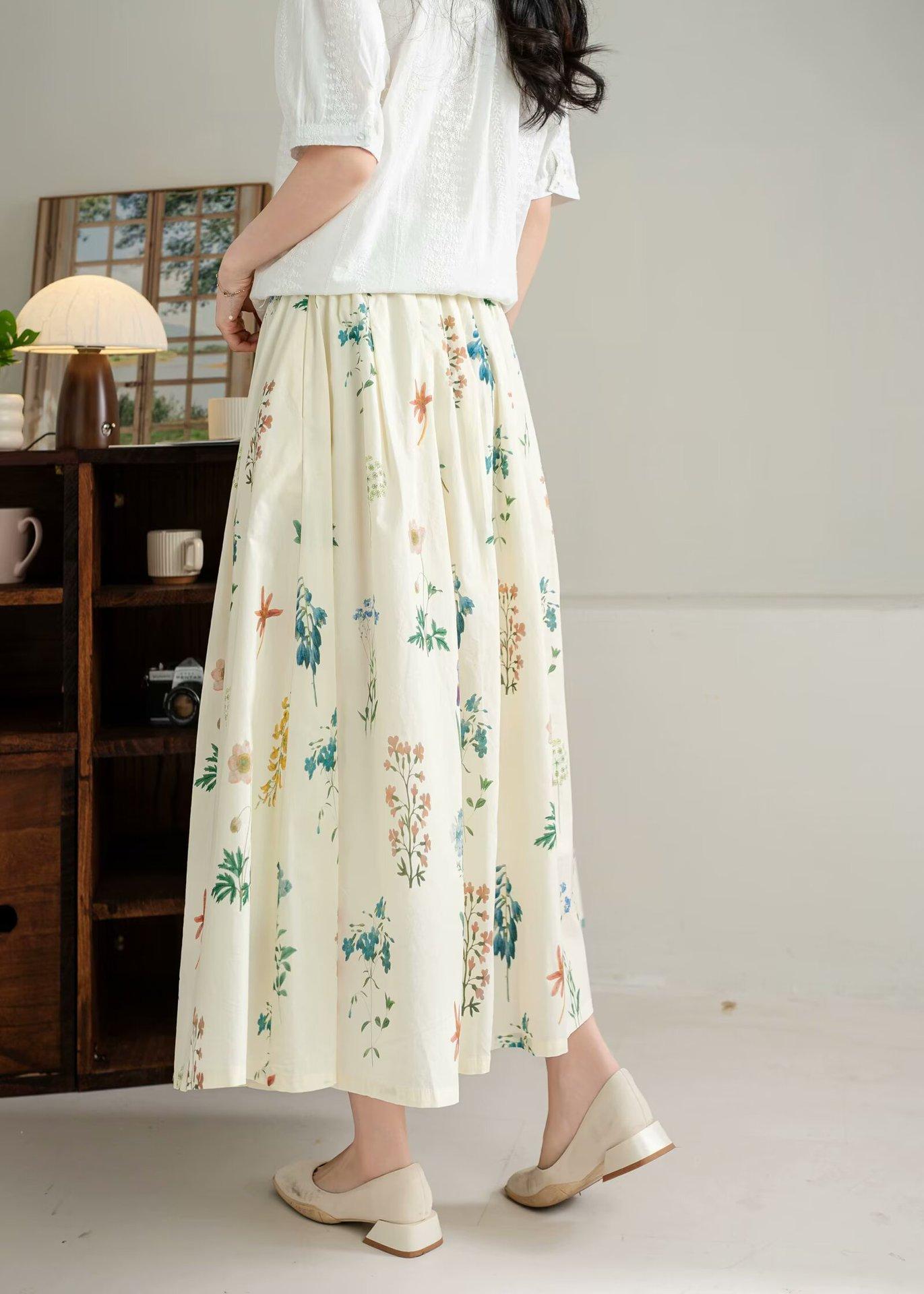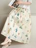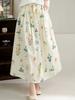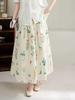 Falda de Algodón y Lino Estampada Digitalmente Verano 2025 Falda para Mujer Talla Grande Holgada Literaria Casual Línea A Falda Larga