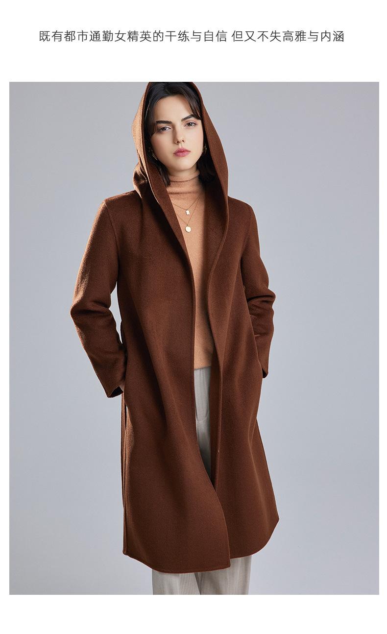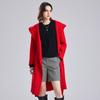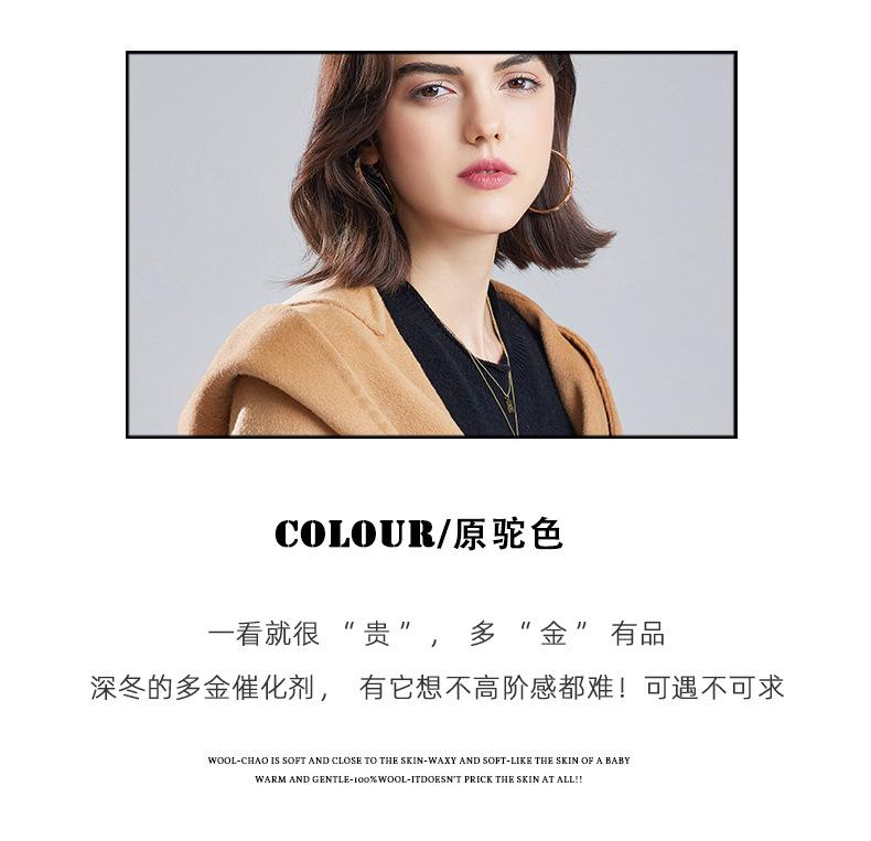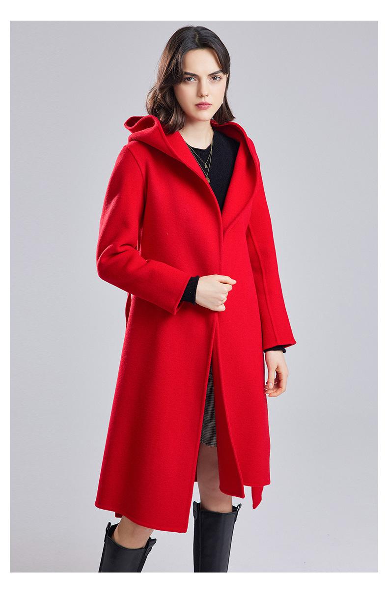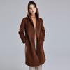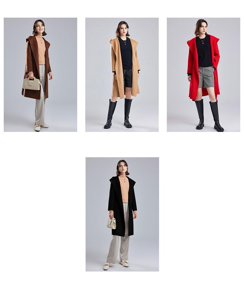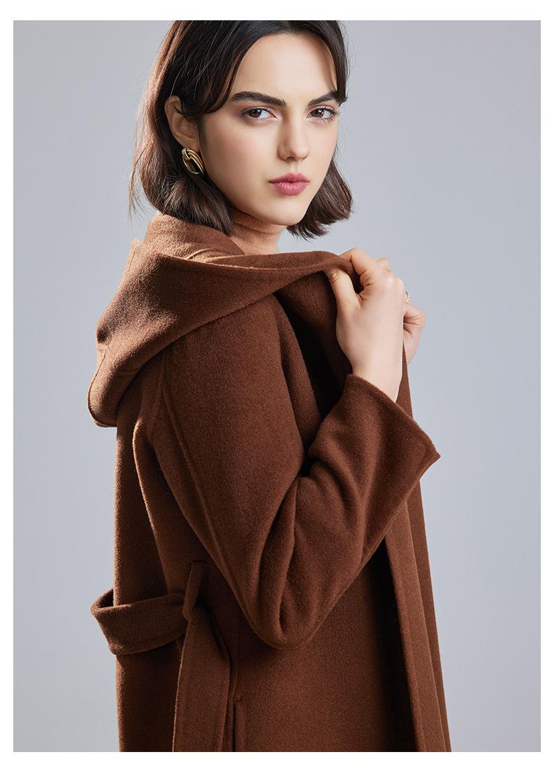 Otoño e Invierno nuevo abrigo de lana de doble cara para mujer estilo coreano color sólido con cordones gabardina con capucha largo medio abrigo de lana sin cachemira