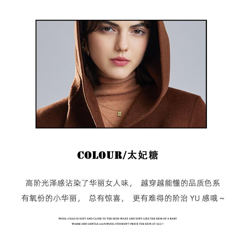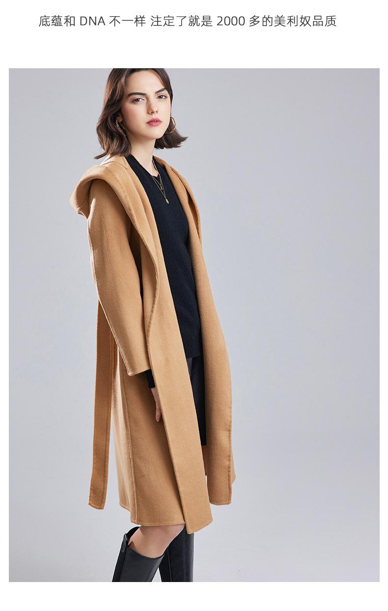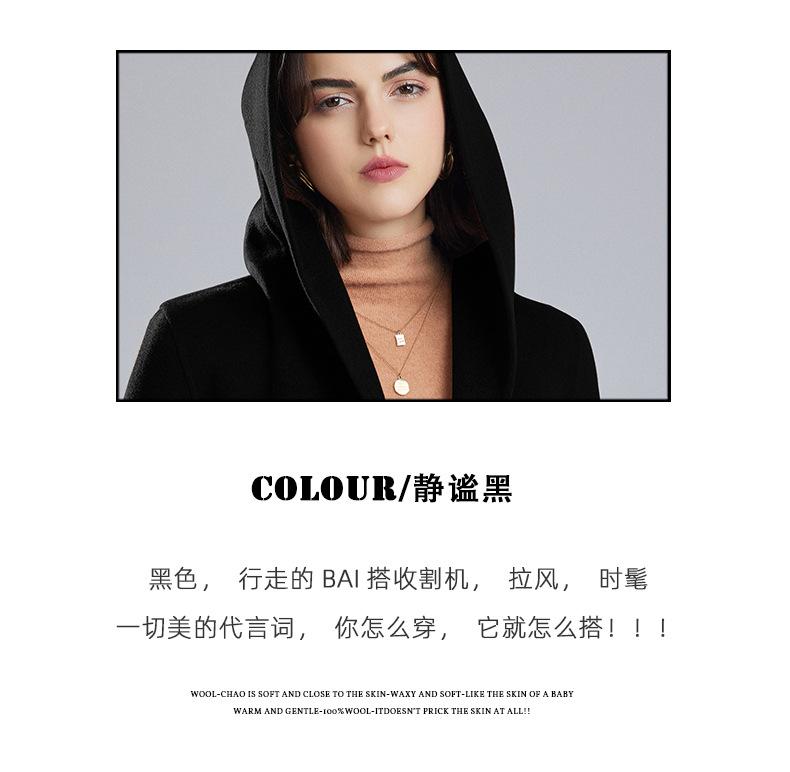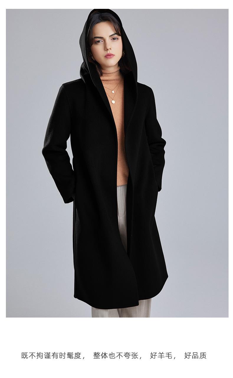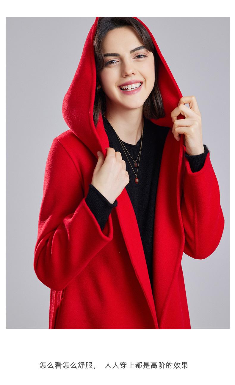 Otoño e Invierno nuevo abrigo de lana de doble cara para mujer estilo coreano color sólido con cordones gabardina con capucha largo medio abrigo de lana sin cachemira