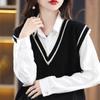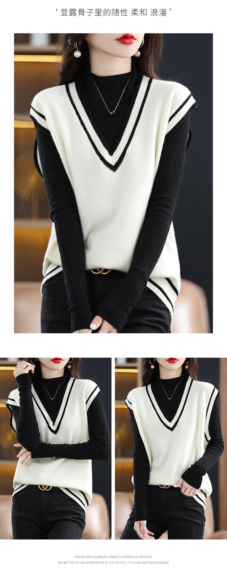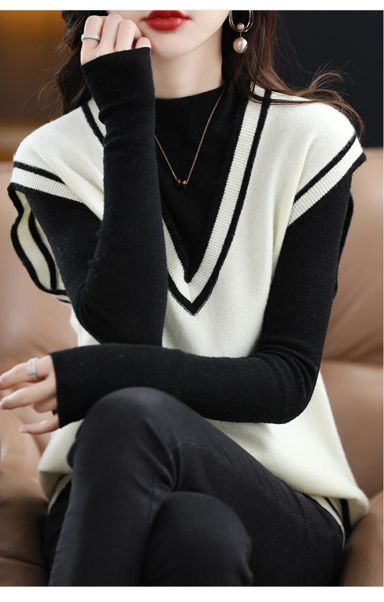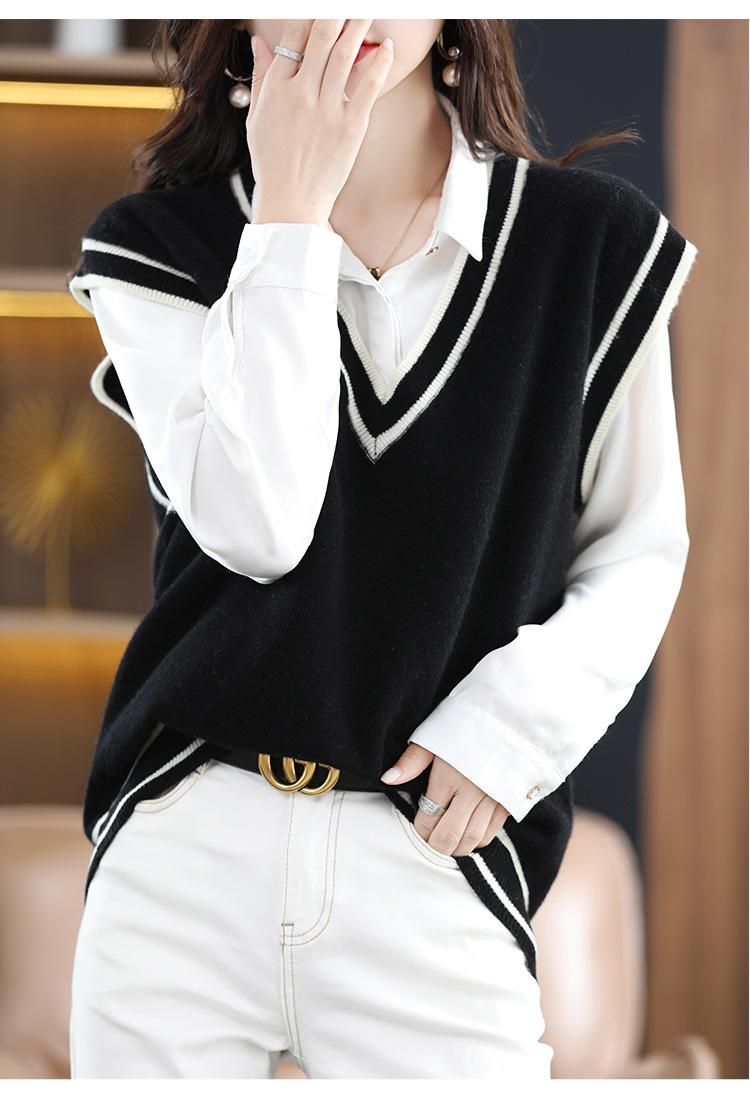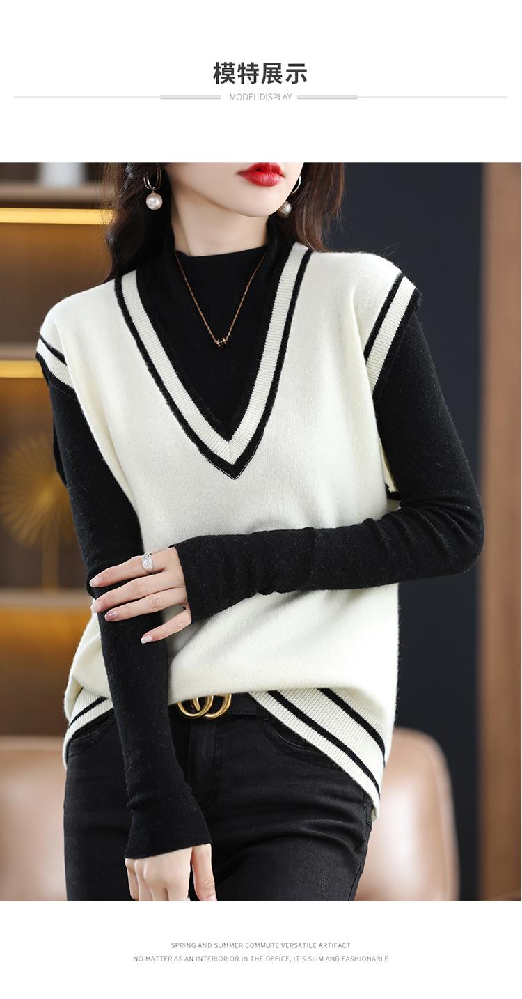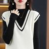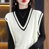 Otoño e Invierno nuevo chaleco de punto con cuello en V a juego de colores suelto casual para ir al trabajo sin mangas apilado lana completa para mujer