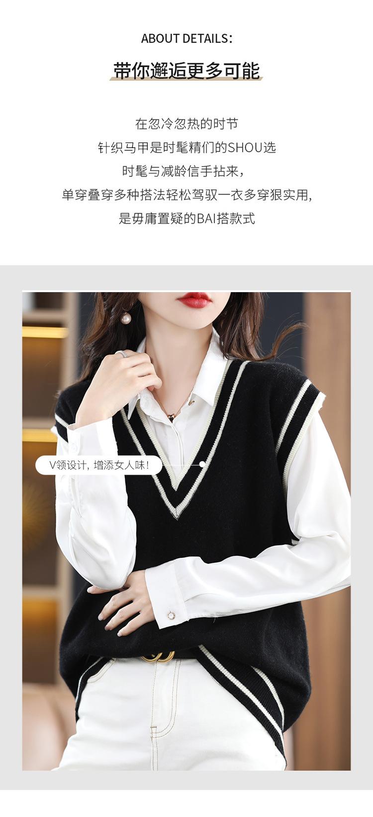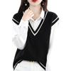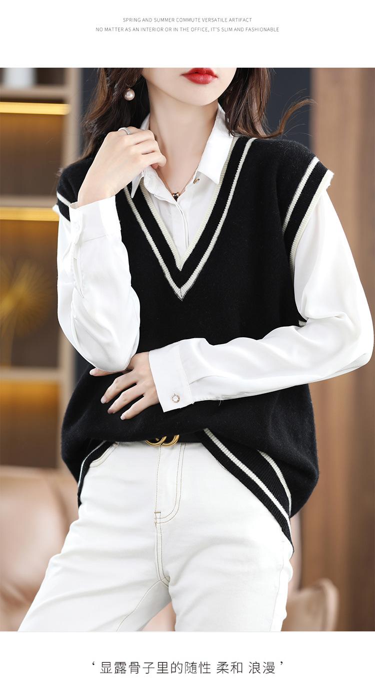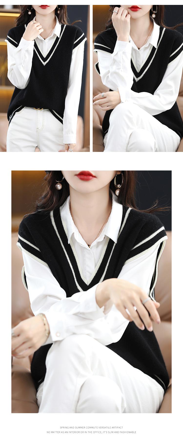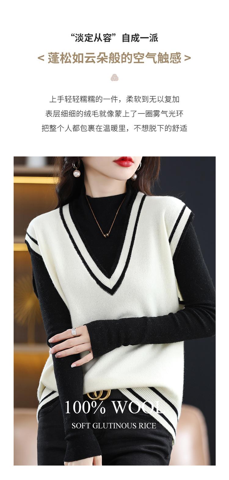 Otoño e Invierno nuevo chaleco de punto con cuello en V a juego de colores suelto casual para ir al trabajo sin mangas apilado lana completa para mujer