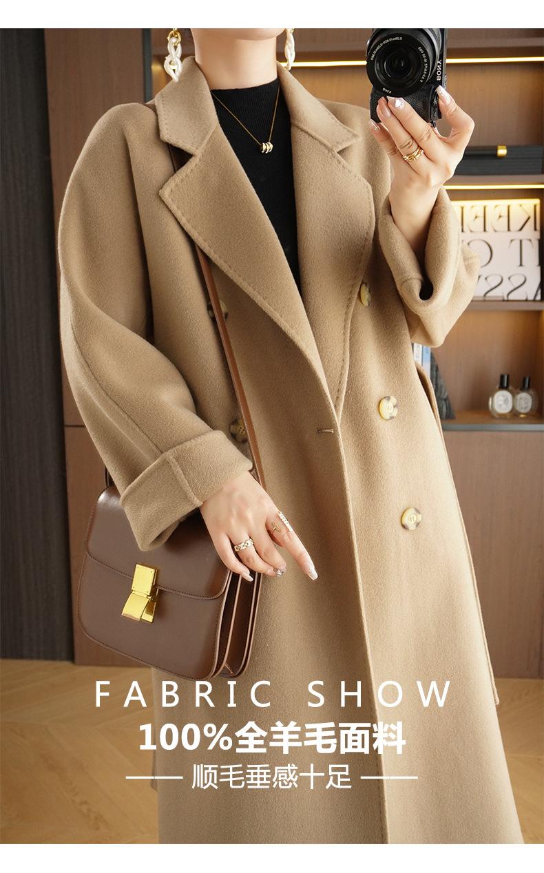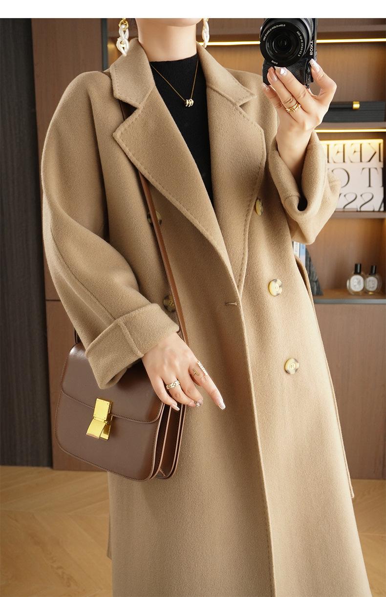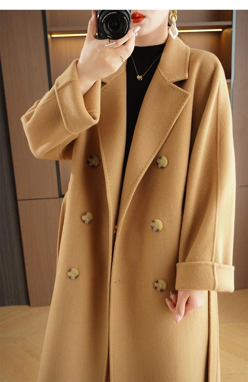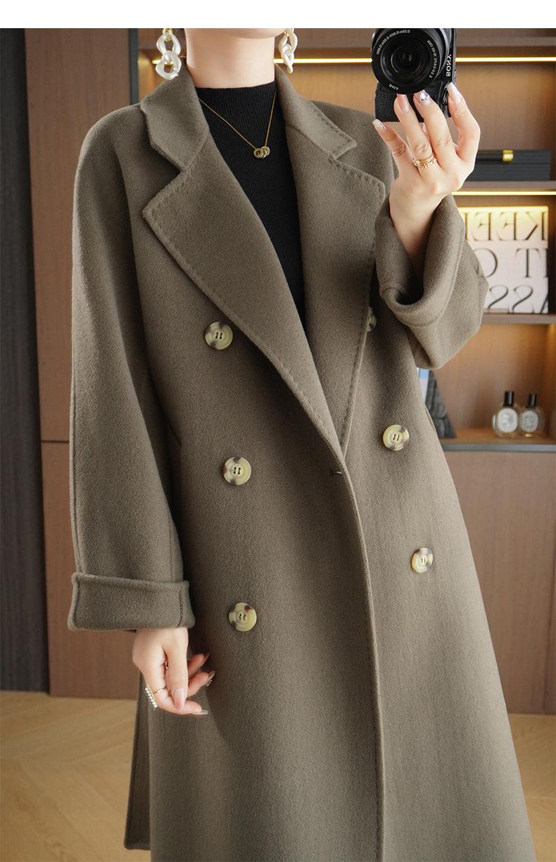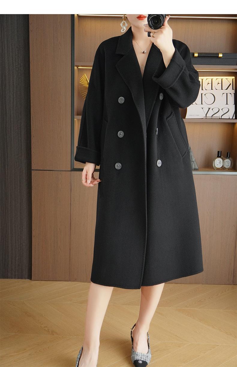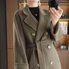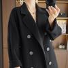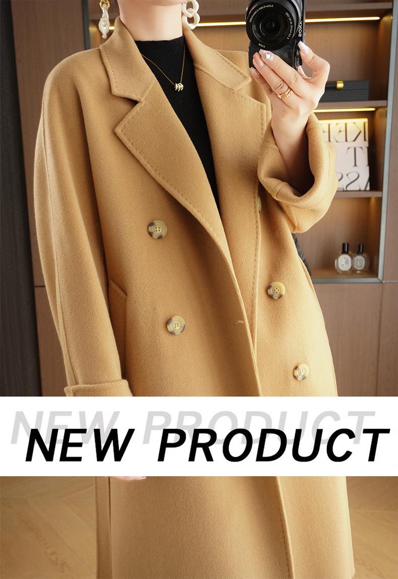 Abrigo nuevo de lana de doble cara para otoño e invierno 2023 para mujer, abrigo de lana casual suelto de largo medio con cuello tipo traje