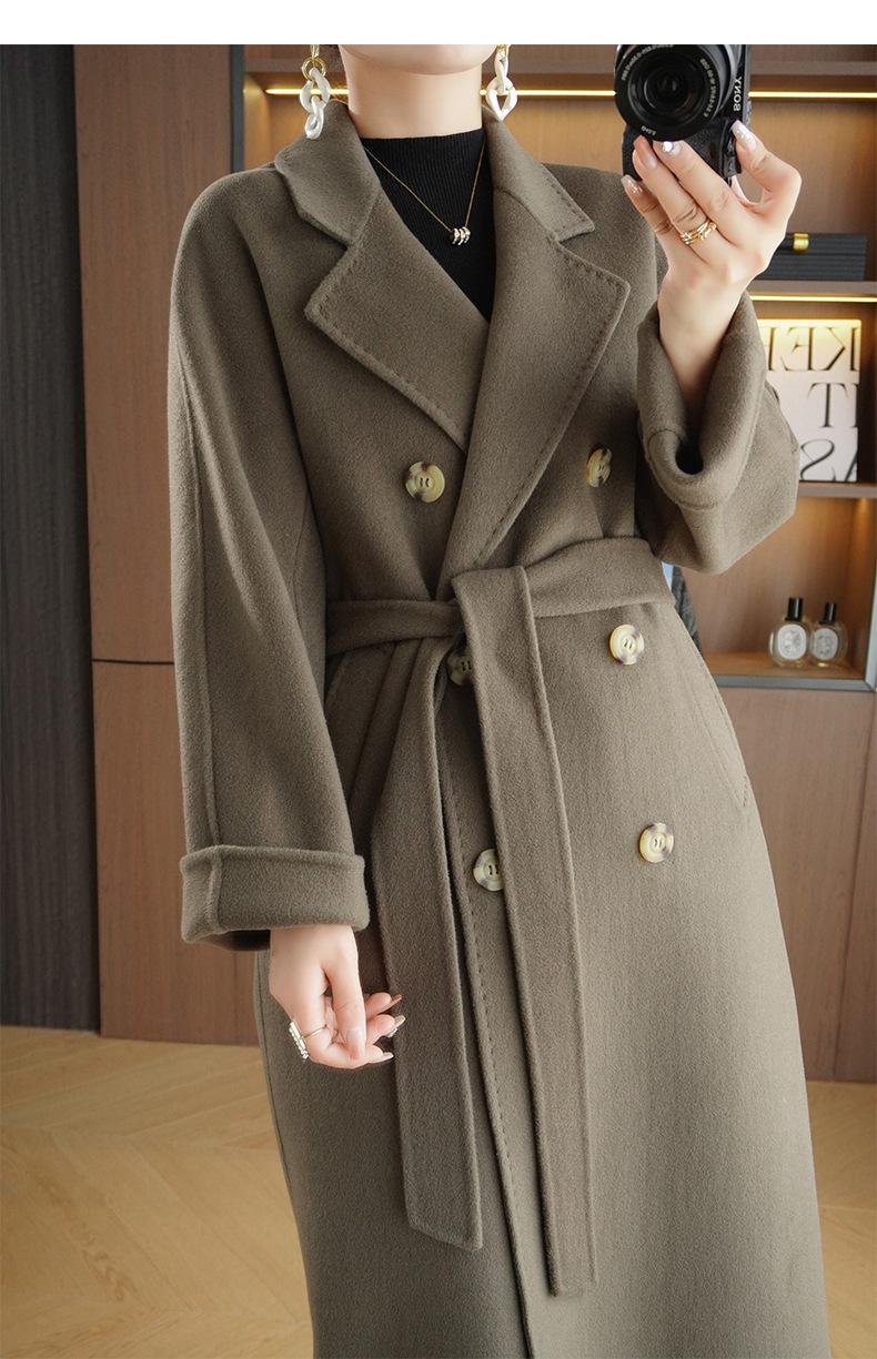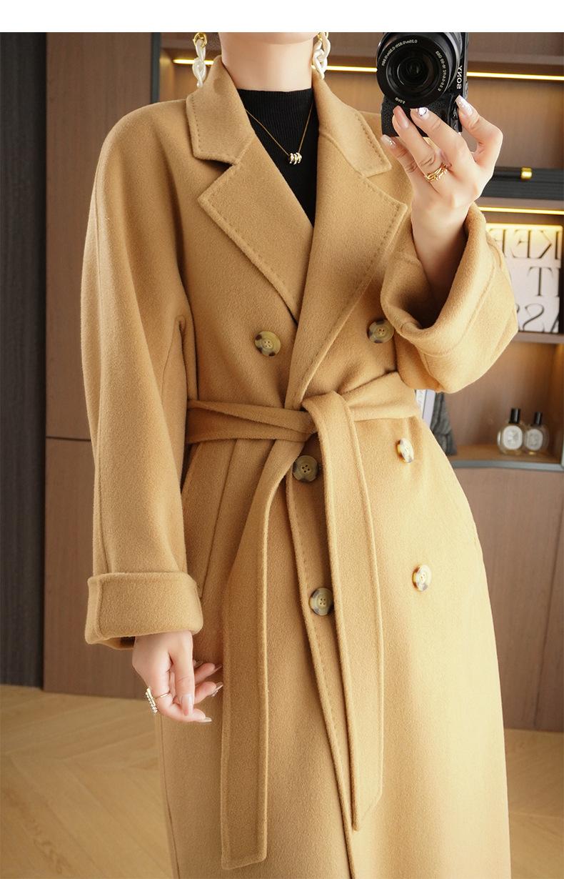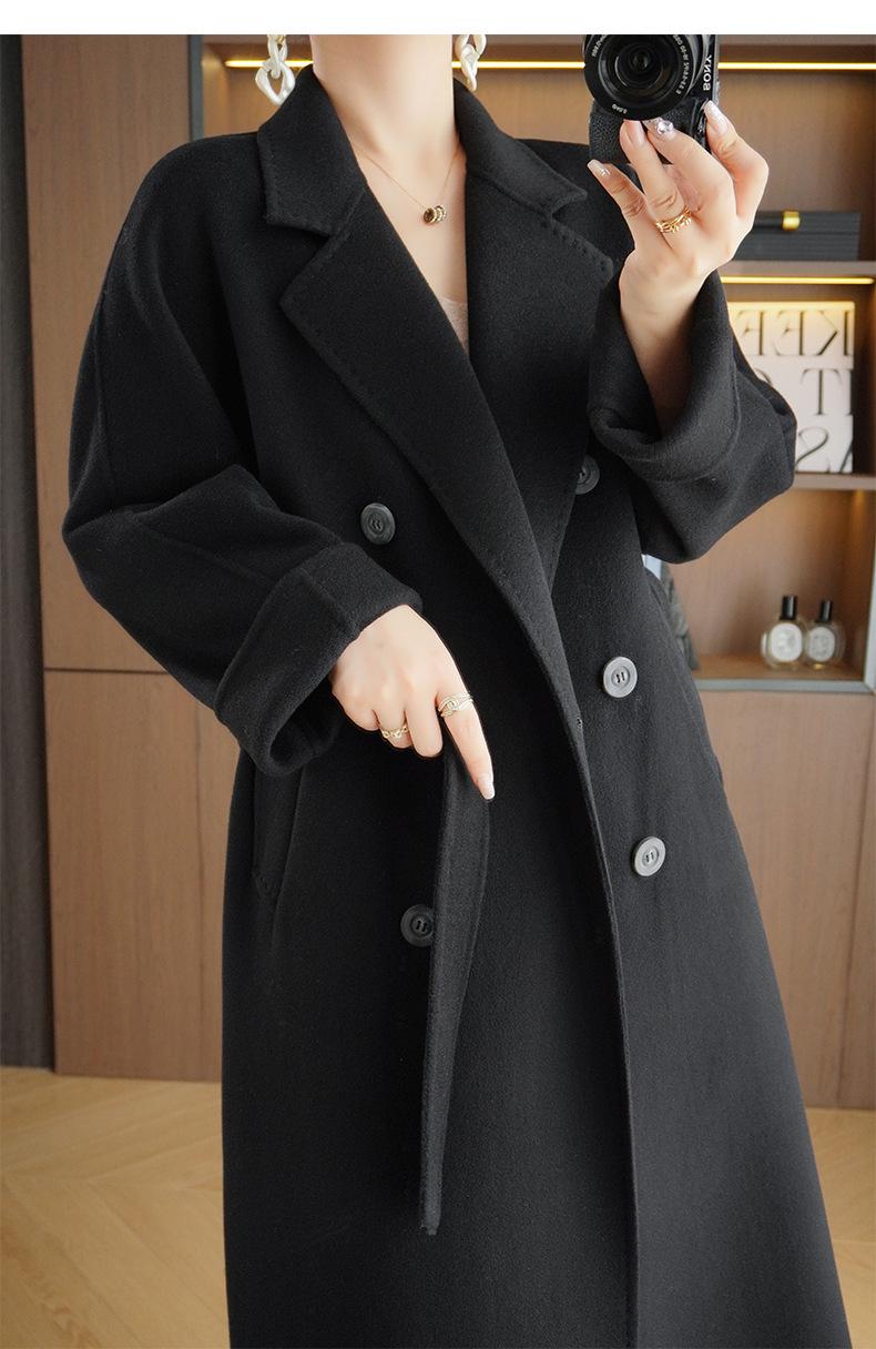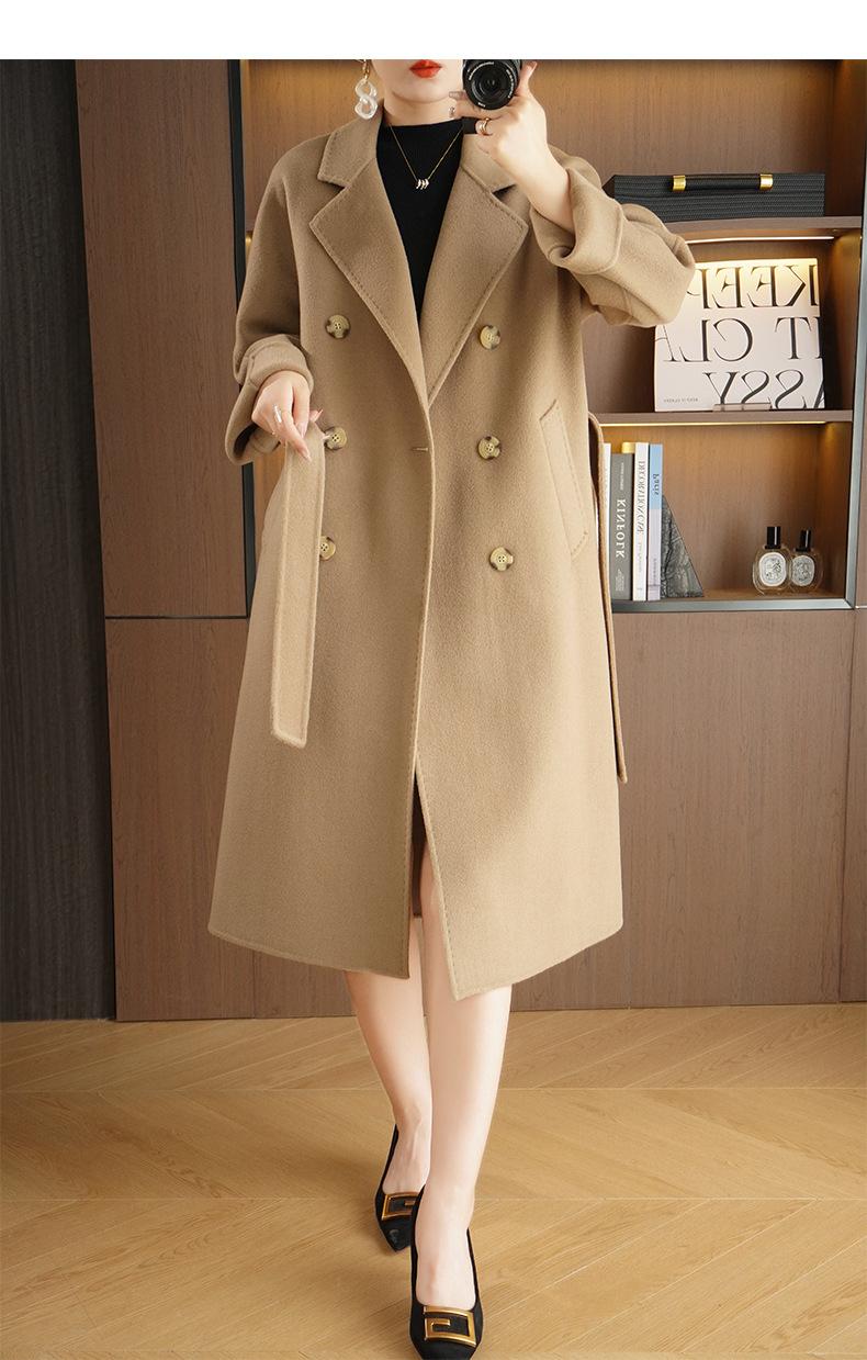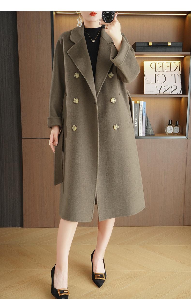 Abrigo nuevo de lana de doble cara para otoño e invierno 2023 para mujer, abrigo de lana casual suelto de largo medio con cuello tipo traje
