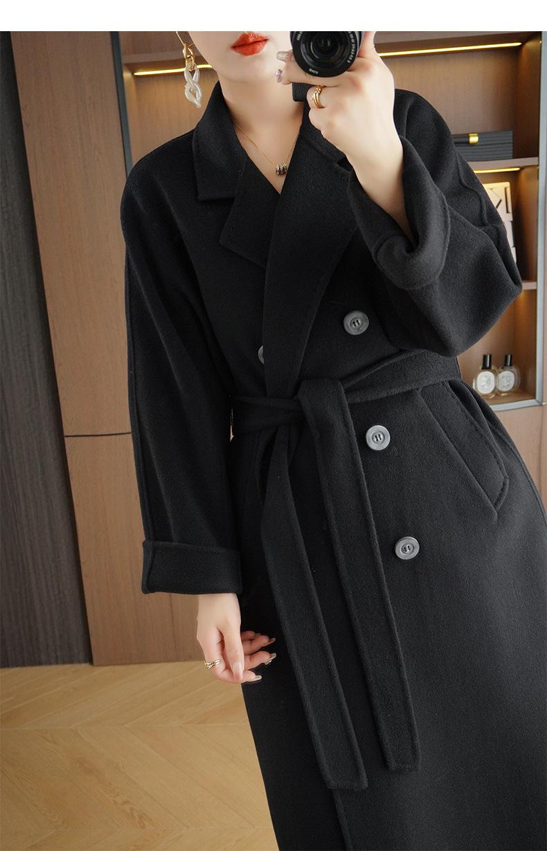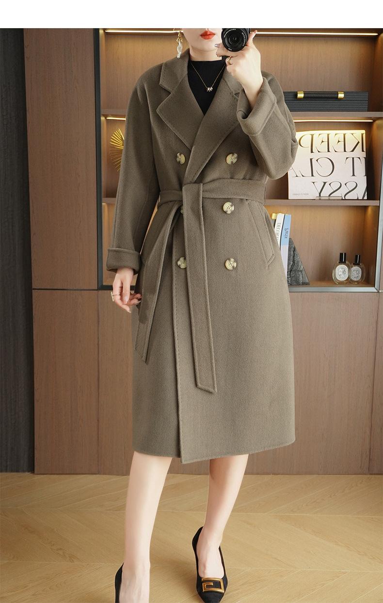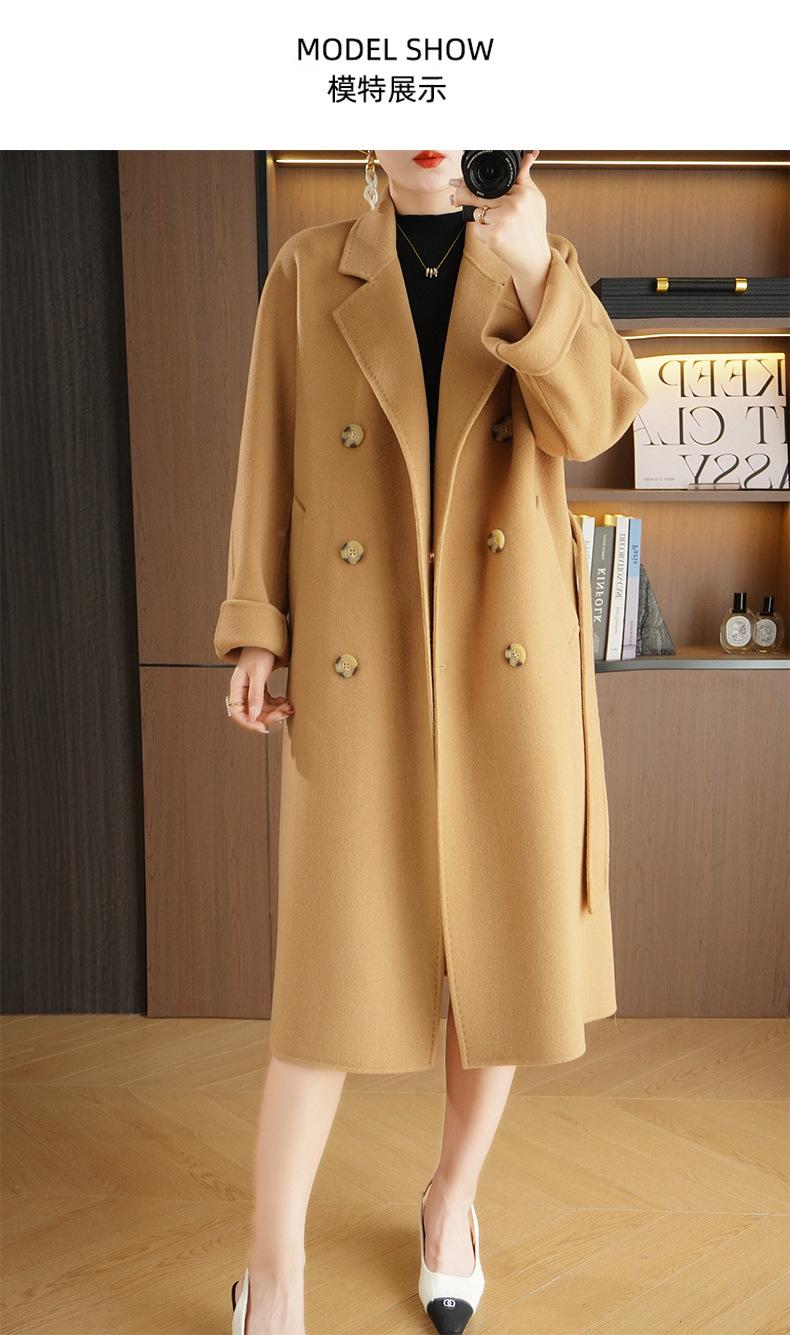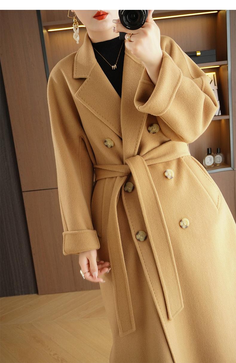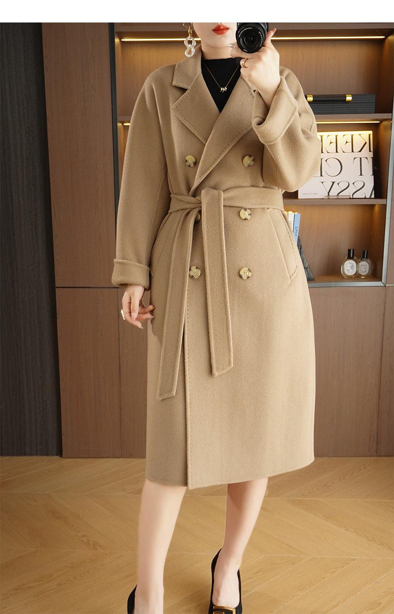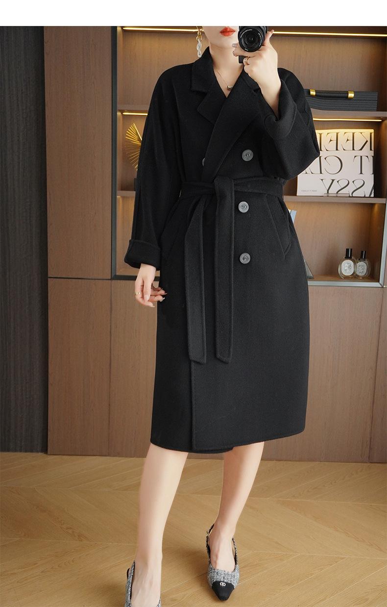 Abrigo nuevo de lana de doble cara para otoño e invierno 2023 para mujer, abrigo de lana casual suelto de largo medio con cuello tipo traje