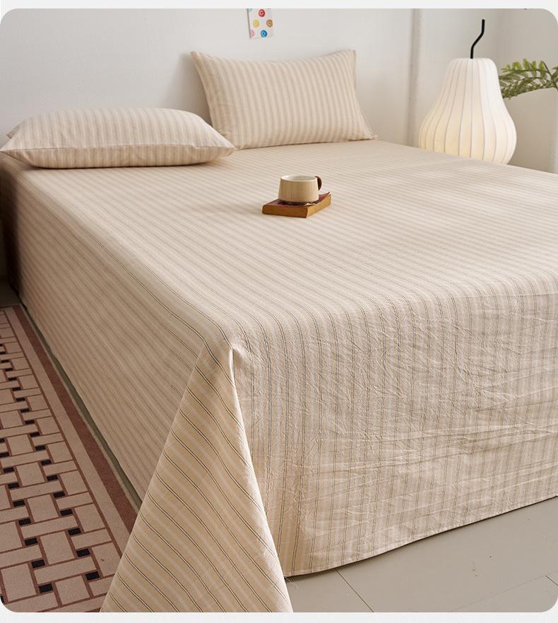Algodón Puro Algodón Lavado Sábanas de Cama de Algodón Espesado de una Pieza 100 Dormitorio Sábanas de Cama Individual Funda de Almohada Juego de Tres Piezas Estilo Nuevo 2025
