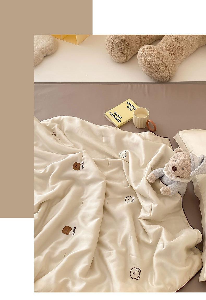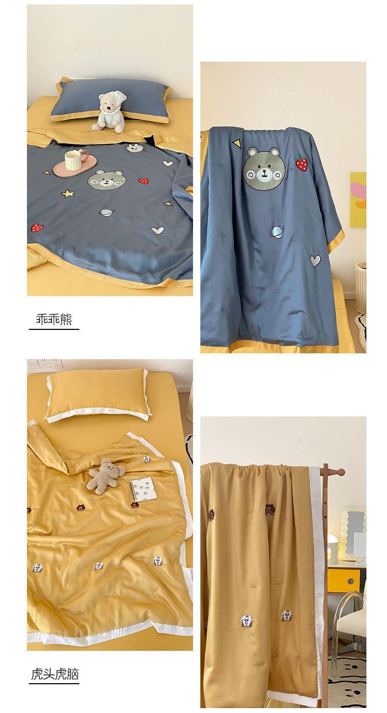Juego de cuatro piezas de edredón de verano para niños 100S Lenzing Tencel Edredón de verano bordado de seda de hielo de dibujos animados Edredón para aire acondicionado Edredón de verano Edredón individual