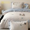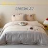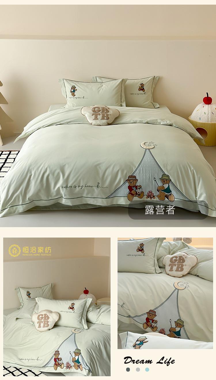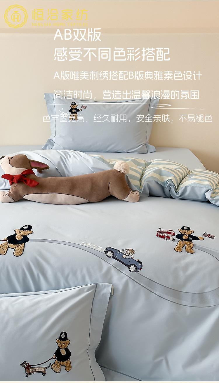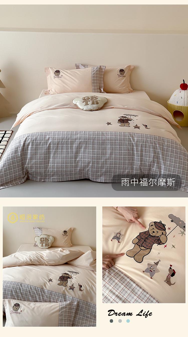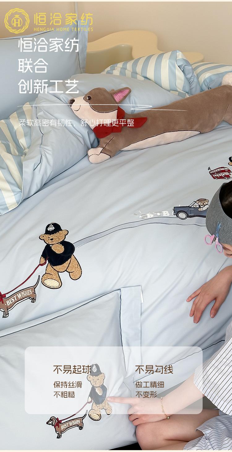 Estilo Caricatura Algodón Súper Suave Algodón Lavado Juego de Cuatro Piezas Parche de Oso Lindo Bordado Algodón Puro 1.2m Funda de Edredón Ropa de Cama Azul