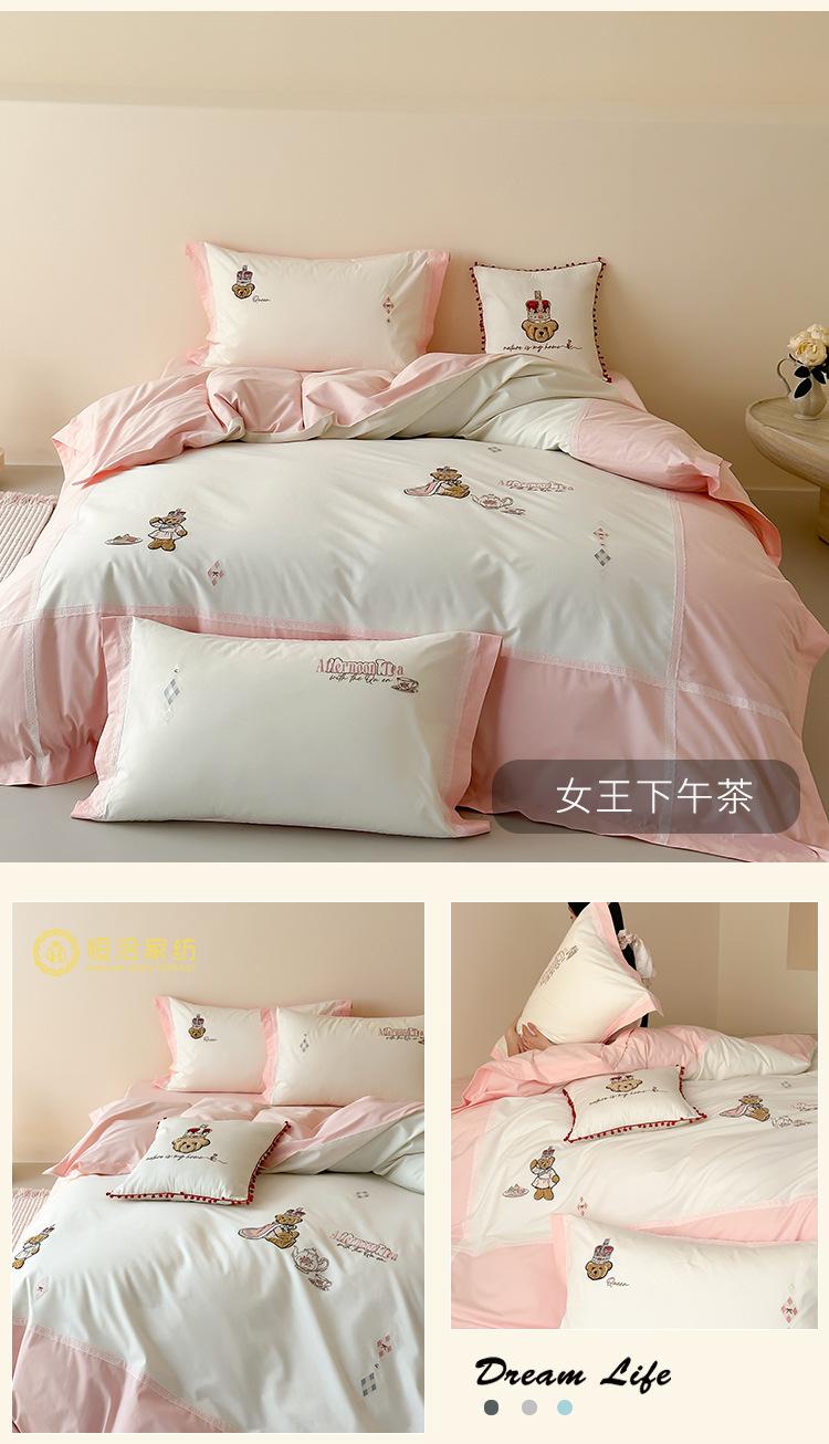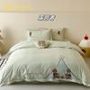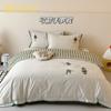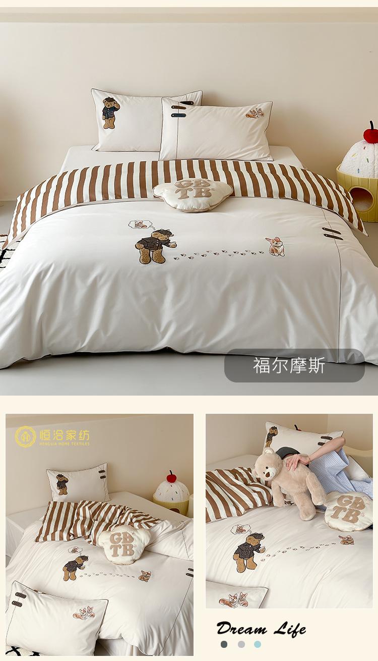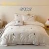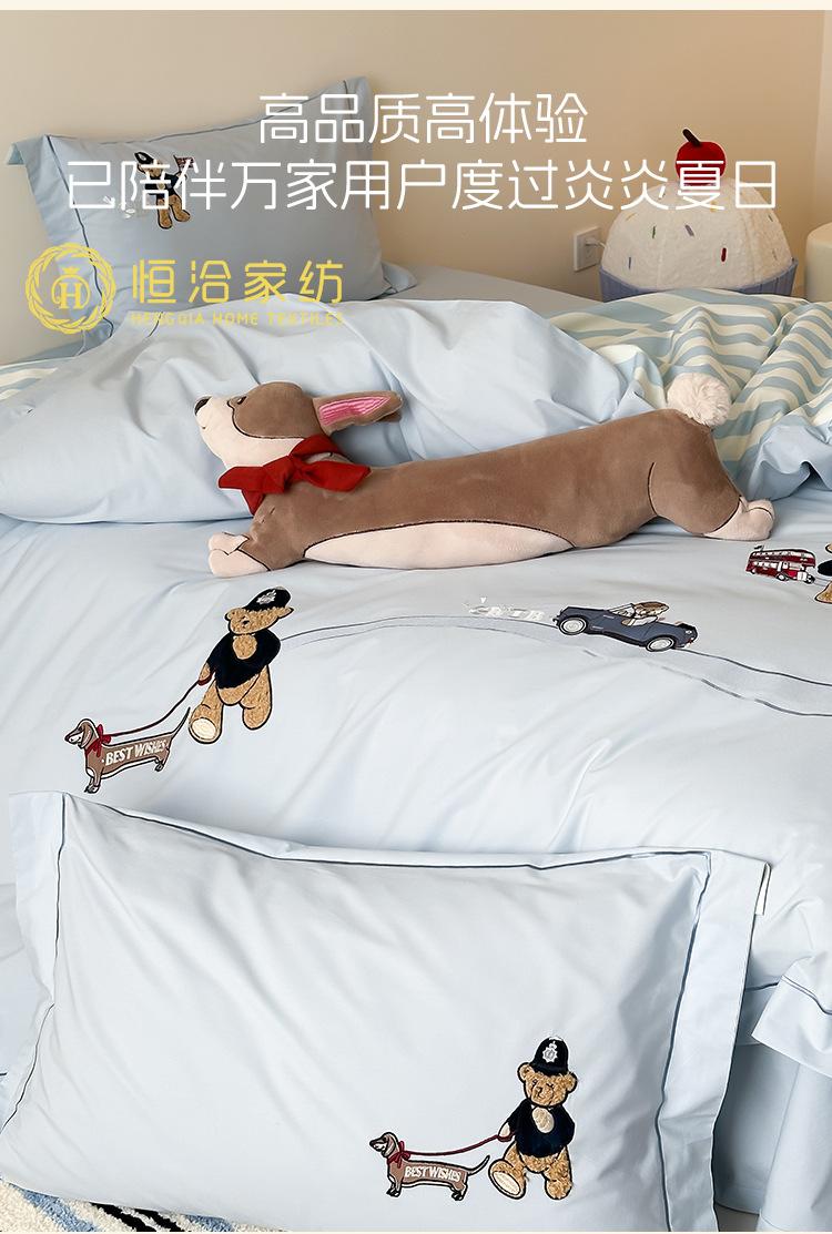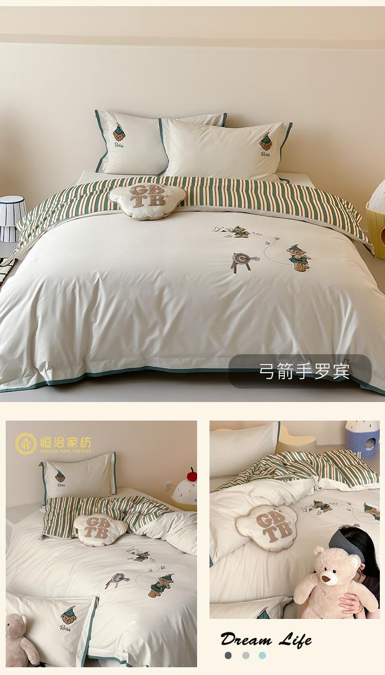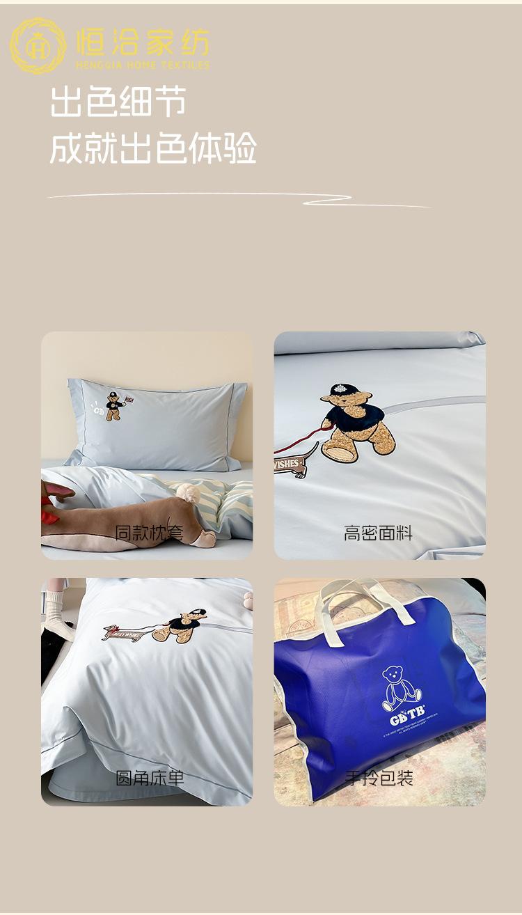 Estilo Caricatura Algodón Súper Suave Algodón Lavado Juego de Cuatro Piezas Parche de Oso Lindo Bordado Algodón Puro 1.2m Funda de Edredón Ropa de Cama Azul