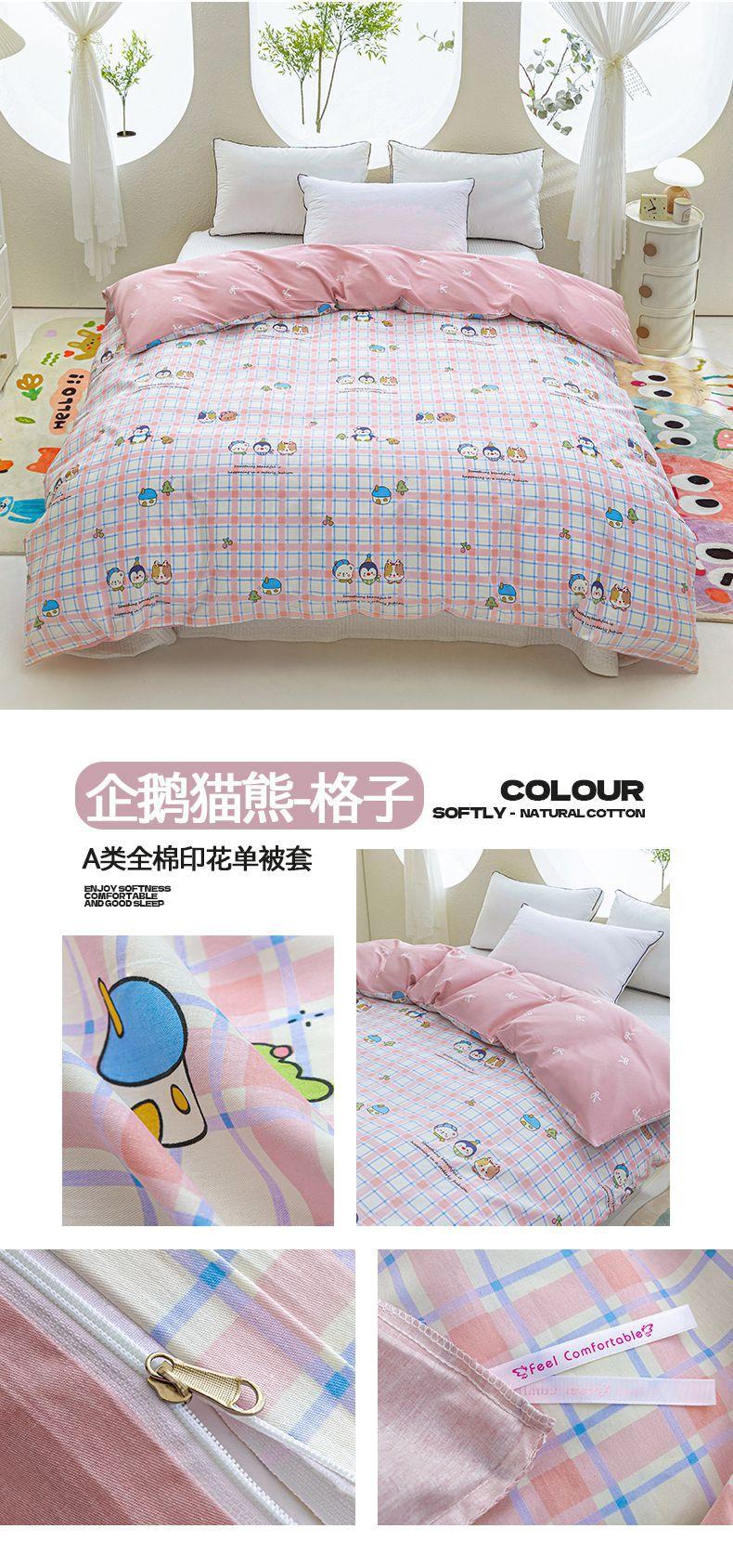 Clase A pequeño fresco jet algodón algodón estampado de dibujos animados serie estudiante de dormitorio funda de edredón individual