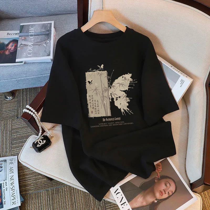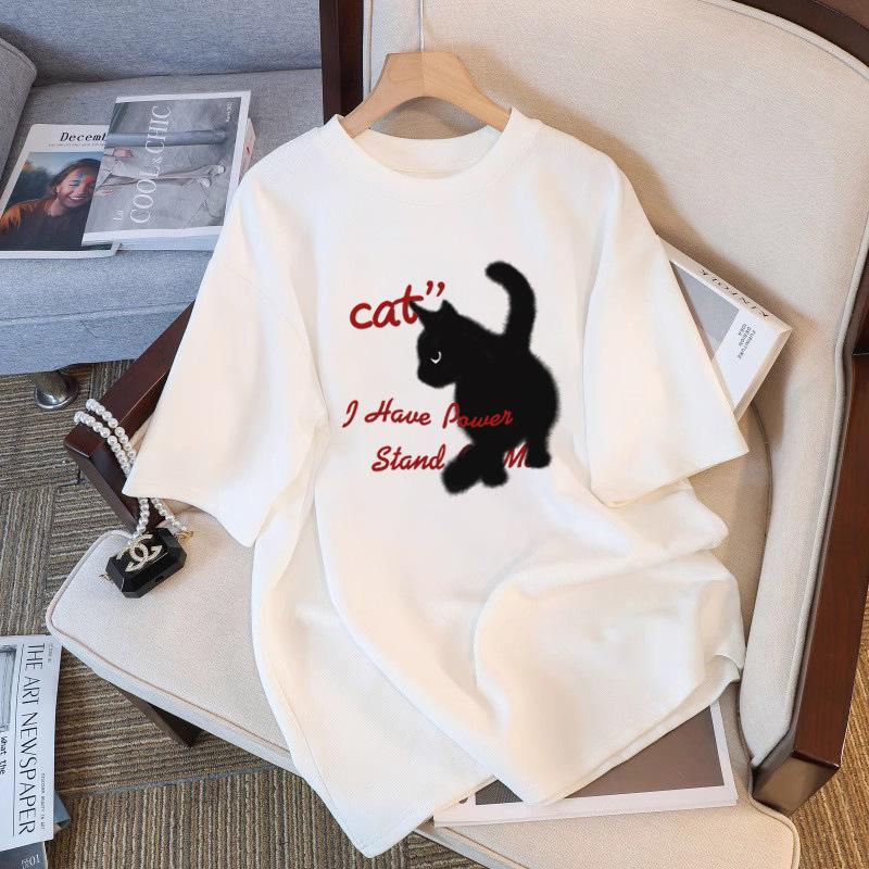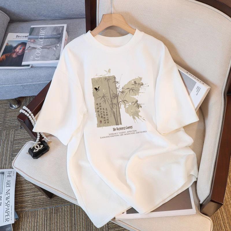 Camiseta Blanca de Algodón Puro de Manga Corta Versión Europea Grande para Mujer 2025 Verano Nueva Moda Camiseta Versátil Top de Largo Medio