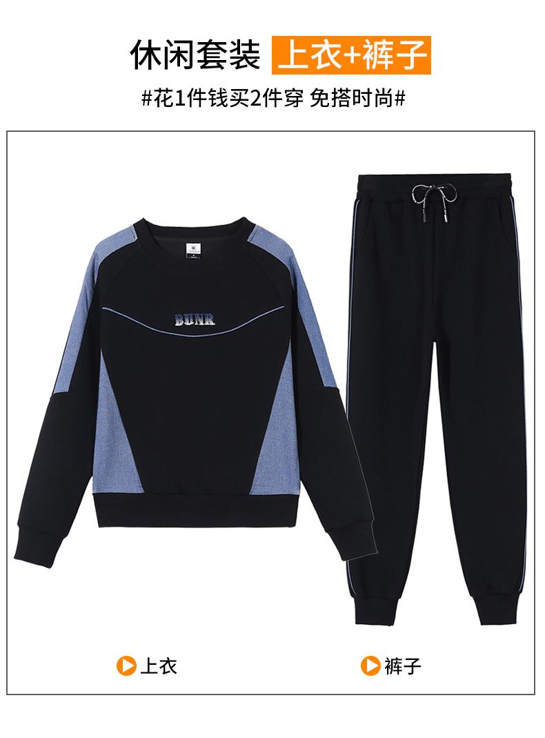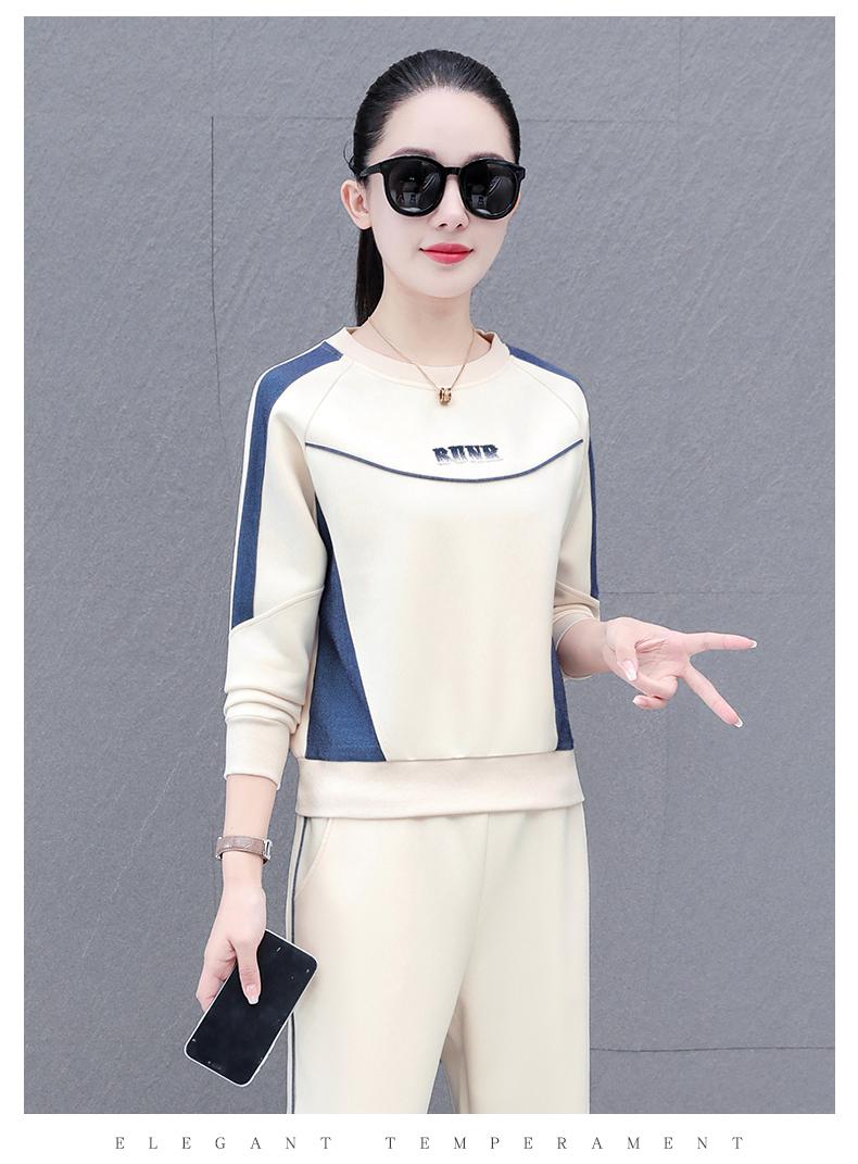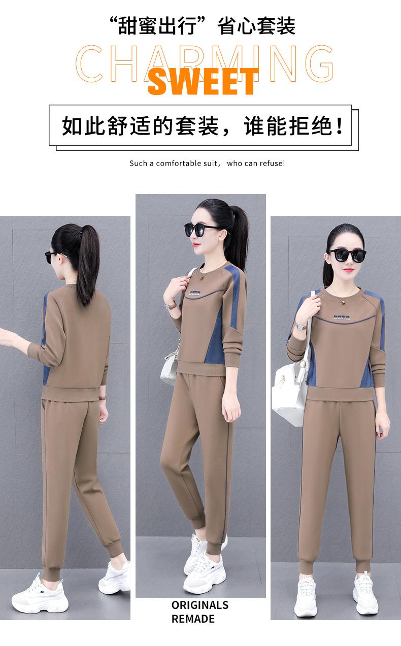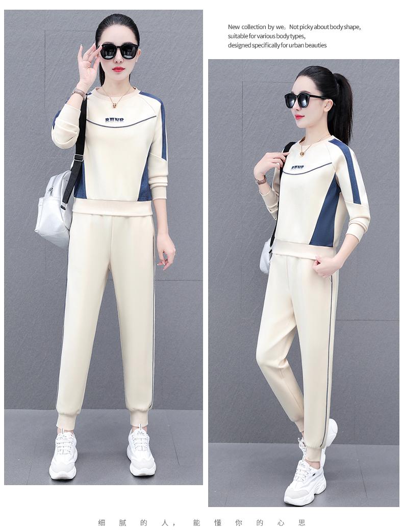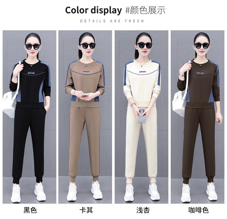 Traje deportivo de ocio Primavera y Otoño Estilo occidental Reductor de edad Suelto Perezoso Cuello redondo Sudadera Traje de running de alta gama Conjunto de dos piezas