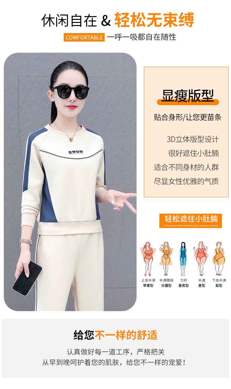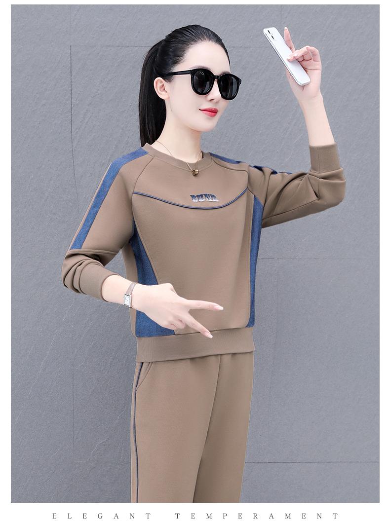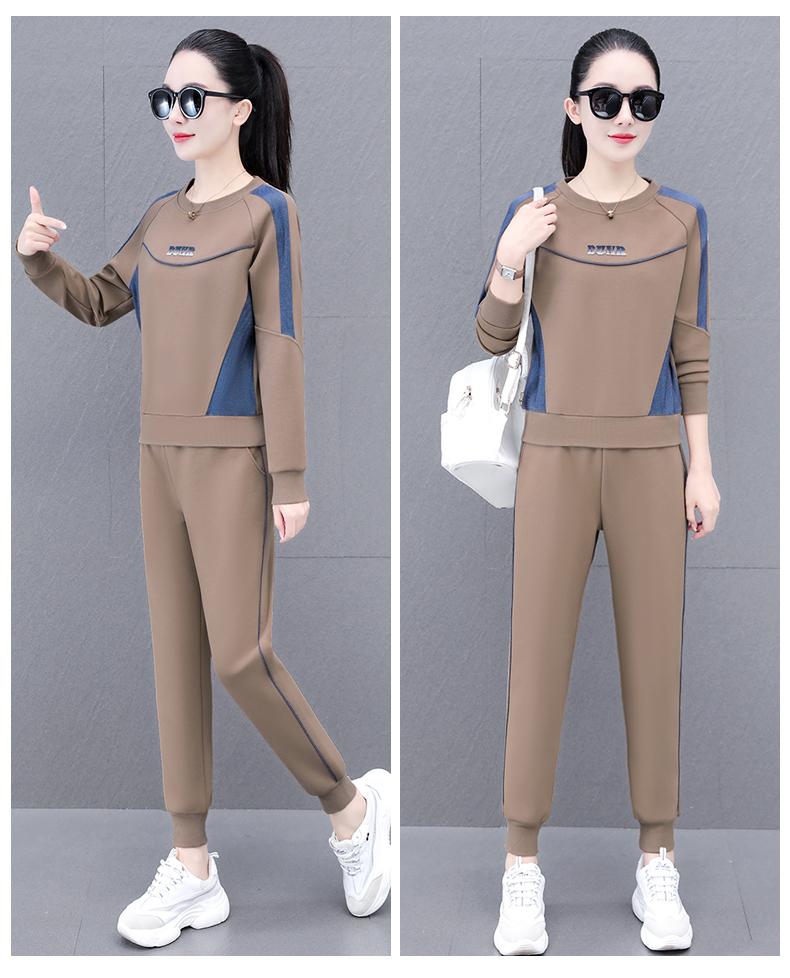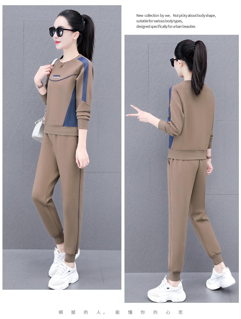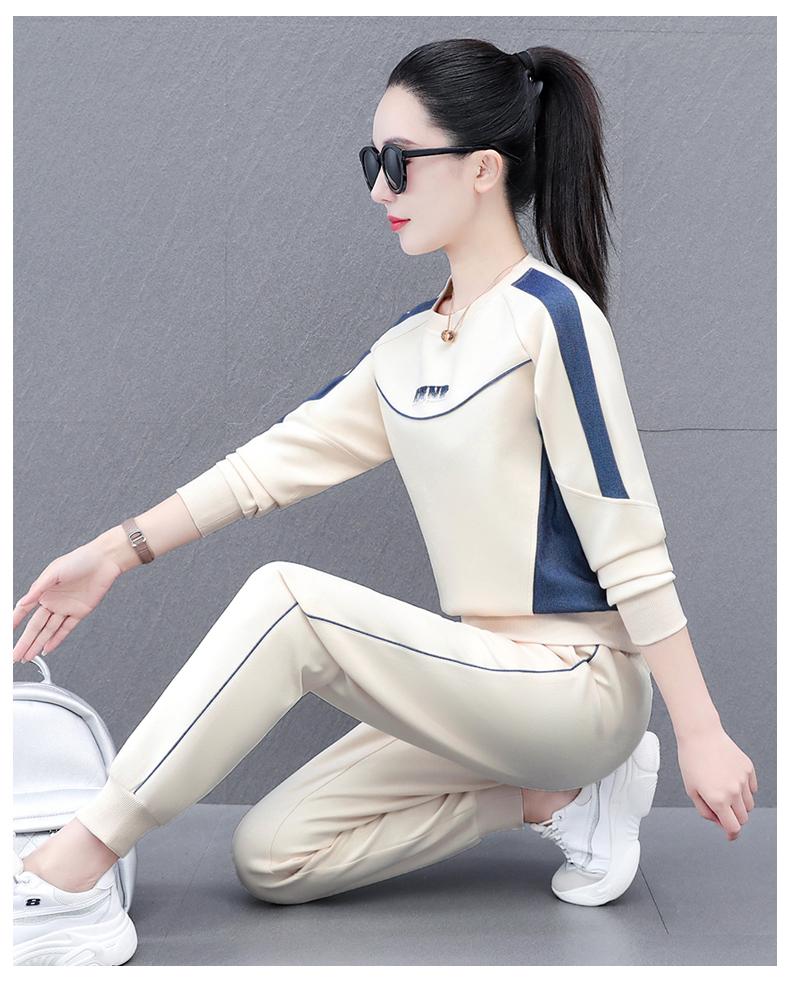 Traje deportivo de ocio Primavera y Otoño Estilo occidental Reductor de edad Suelto Perezoso Cuello redondo Sudadera Traje de running de alta gama Conjunto de dos piezas